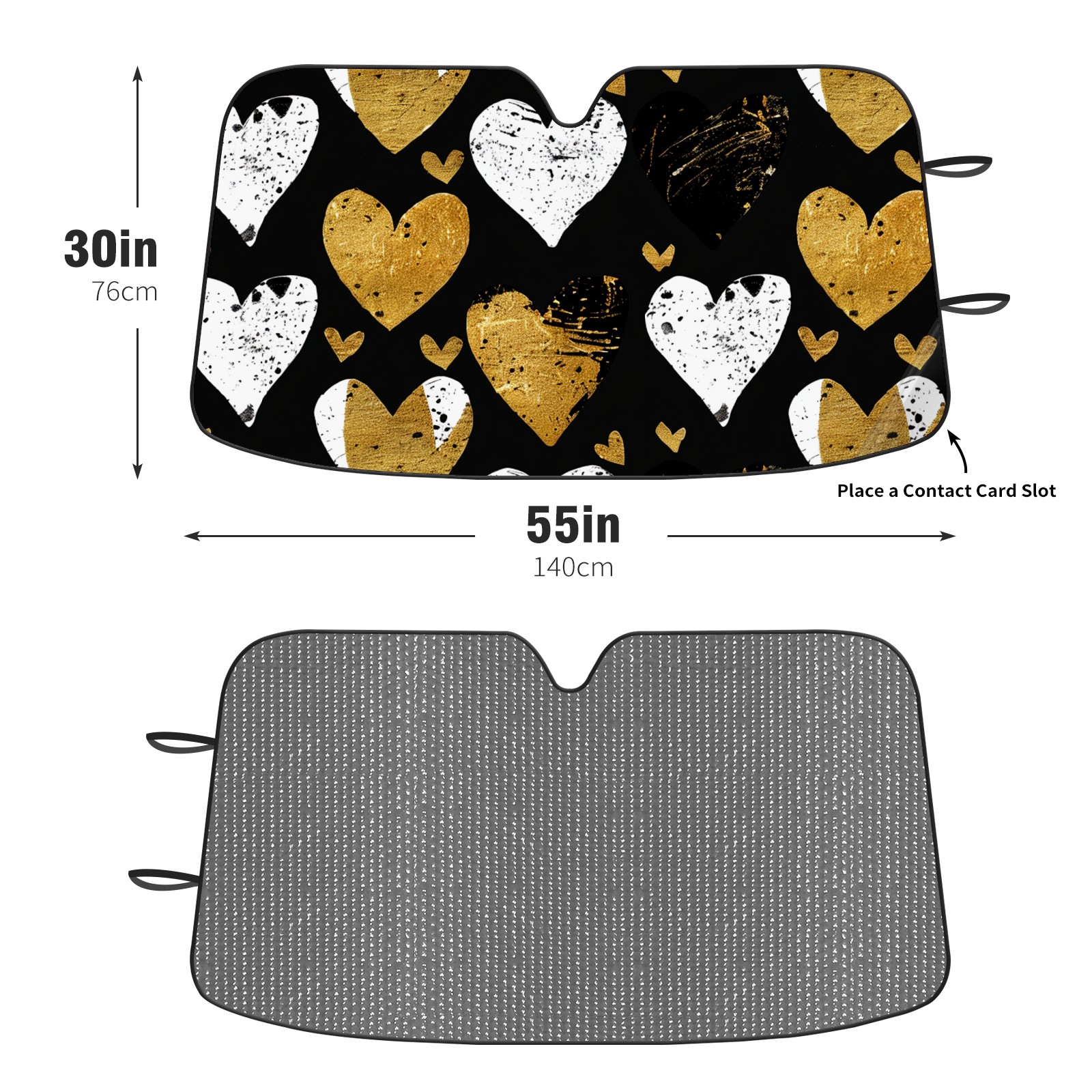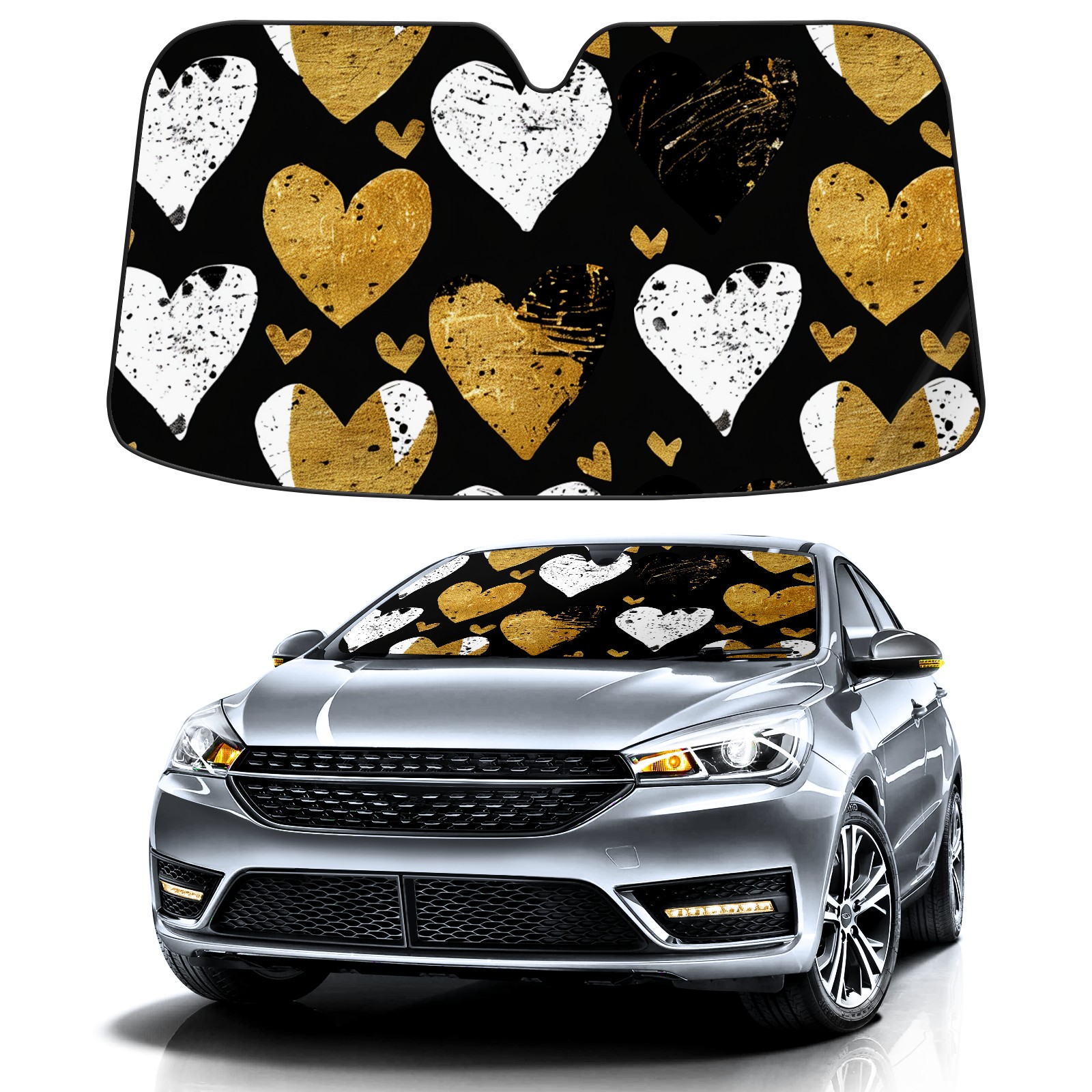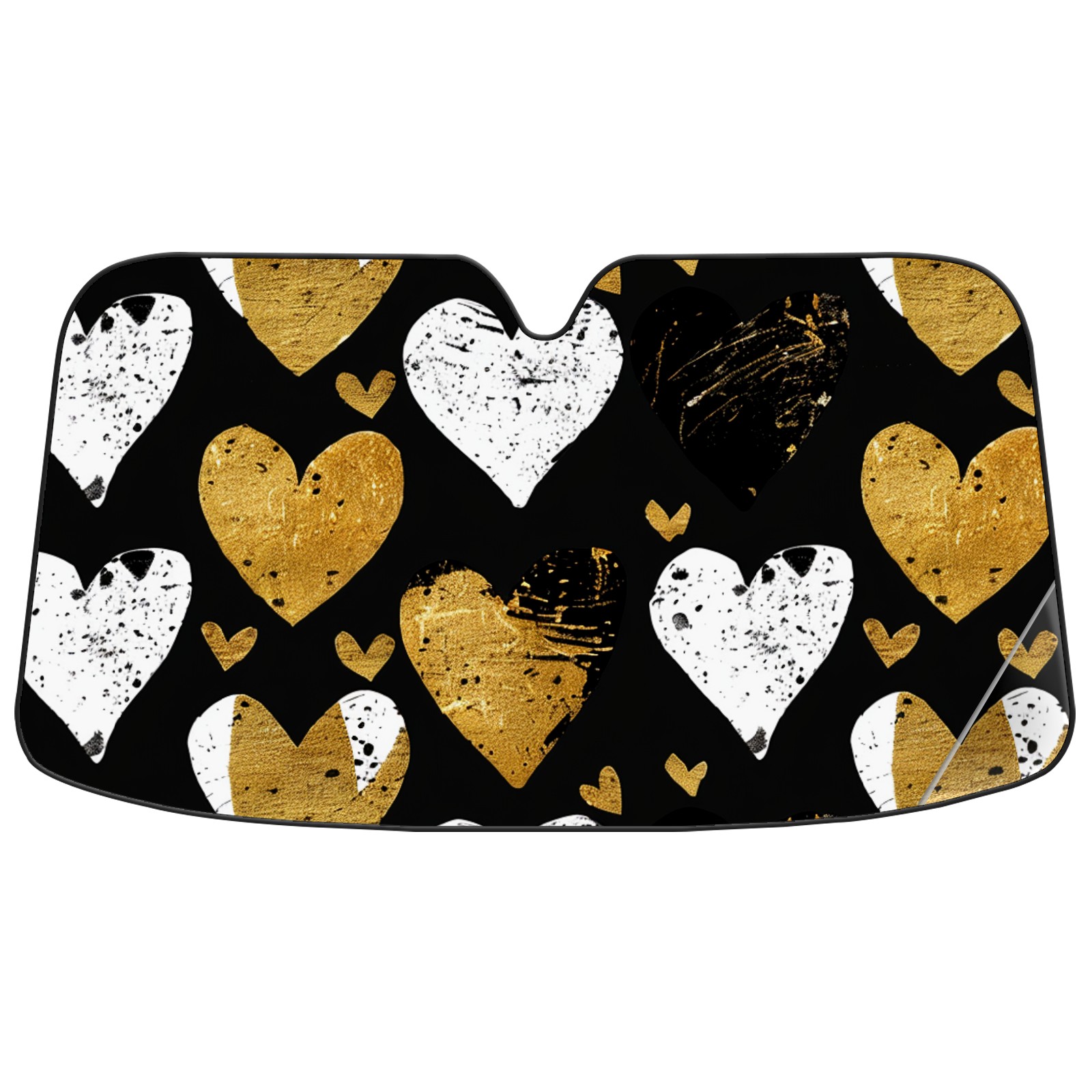 Car Windshield Sun Shade For Front Window White Gold Hearts (1) Foldable Vehicle Windshield Car Sun Visor Covers Automotive Window Protector Car Camping Privacy Sun Blocker