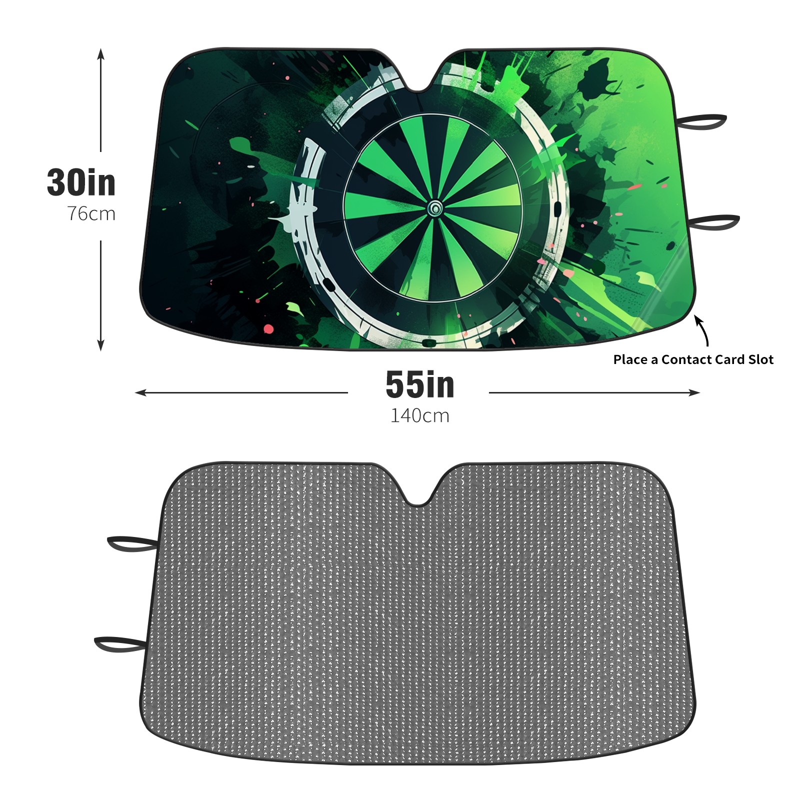 Diameter /Size 63"L x 33.5"W Made from excellent materials which makes it sturdy and protects the car from the sun. Easy to use and pack. Makes the interior of the car cooler.You can easily stash the sunshade in the storage bag or store long term.It open and closes easy. Also the leather storage bag is durable and easy to put the umbrella back into.This windshield sunshade provides complete coverage and keeps your car interior cool under direct sun. It is easy to open and position under the windshield and around the rear-view mirror. Makes Your Car Easy To Identify, Perfect For Finding Your Car In Crowded Parking Lots And Garages.Great Choice: It Is A Great Gift For Dad, Boyfriend, Brother, Brother And Uncle, Friends, Classmates, Family And So On. Notice: Due To Difference Computer Monitors, The Color Maybe Slightly Different From Picture. As Different Measurement Methods, Measurement Data Will Float Within 2%.I Hope You Understand. If You Have Any Question About The Item Please Do Not Hesitate To Contact Us Immediately And We Will Give You A Satisfactory Reply Within 24 Hours.
