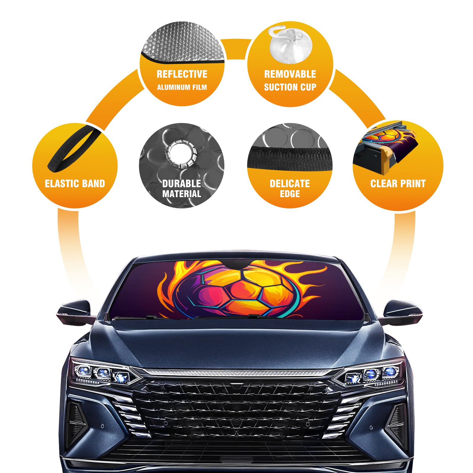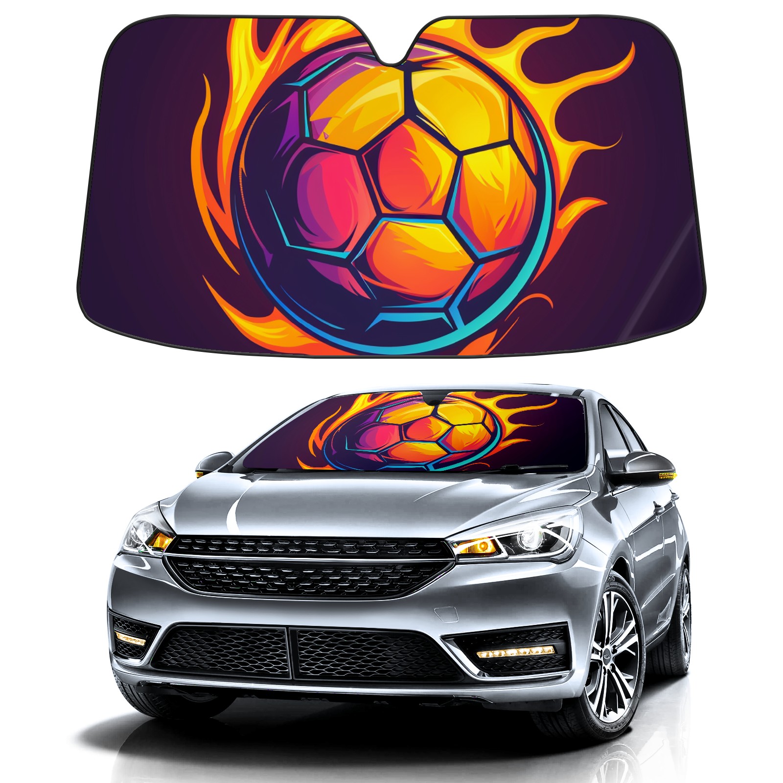 Car Windshield Sun Shade For Front Window Glowing Soccer Ball (5) Foldable Vehicle Windshield Car Sun Visor Covers Automotive Window Protector Car Camping Privacy Sun Blocker