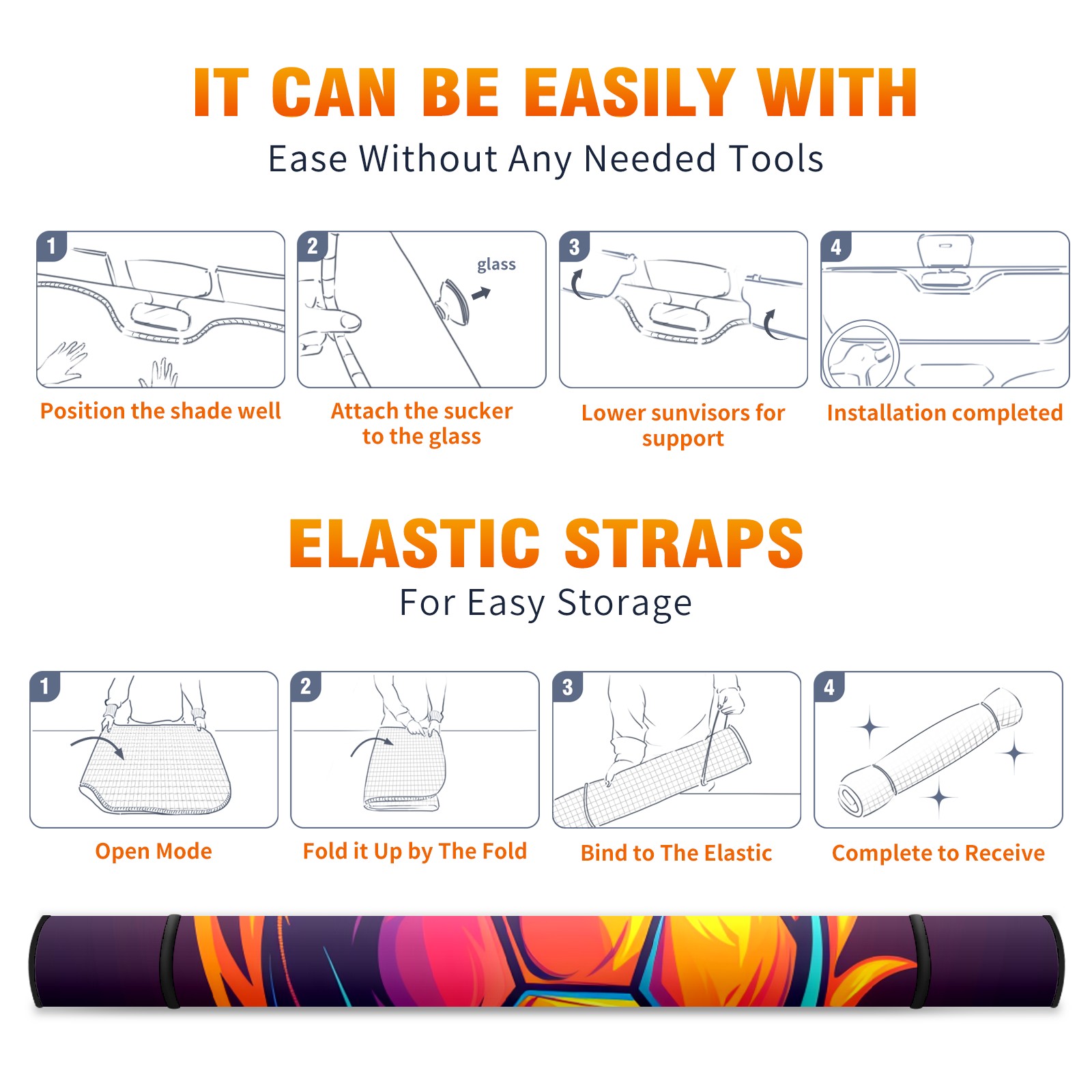 • Diameter /Size 63"L x 33.5"W Made from excellent materials which makes it sturdy and protects the car from the sun. Easy to use and pack. Makes the interior of the car cooler.You can easily stash the sunshade in the storage bag or store long term.It open and closes easy. Also the leather storage bag is durable and easy to put the umbrella back into.This windshield sunshade provides complete coverage and keeps your car interior cool under direct sun. It is easy to open and position under the windshield and around the rear-view mirror. Makes Your Car Easy To Identify, Perfect For Finding Your Car In Crowded Parking Lots And Garages.Great Choice: It Is A Great Gift For Dad, Boyfriend, Brother, Brother And Uncle, Friends, Classmates, Family And So On. Notice: Due To Difference Computer Monitors, The Color Maybe Slightly Different From Picture. As Different Measurement Methods, Measurement Data Will Float Within 2%.I Hope You Understand. If You Have Any Question About The Item Please Do Not Hesitate To Contact Us Immediately And We Will Give You A Satisfactory Reply Within 24 Hours.