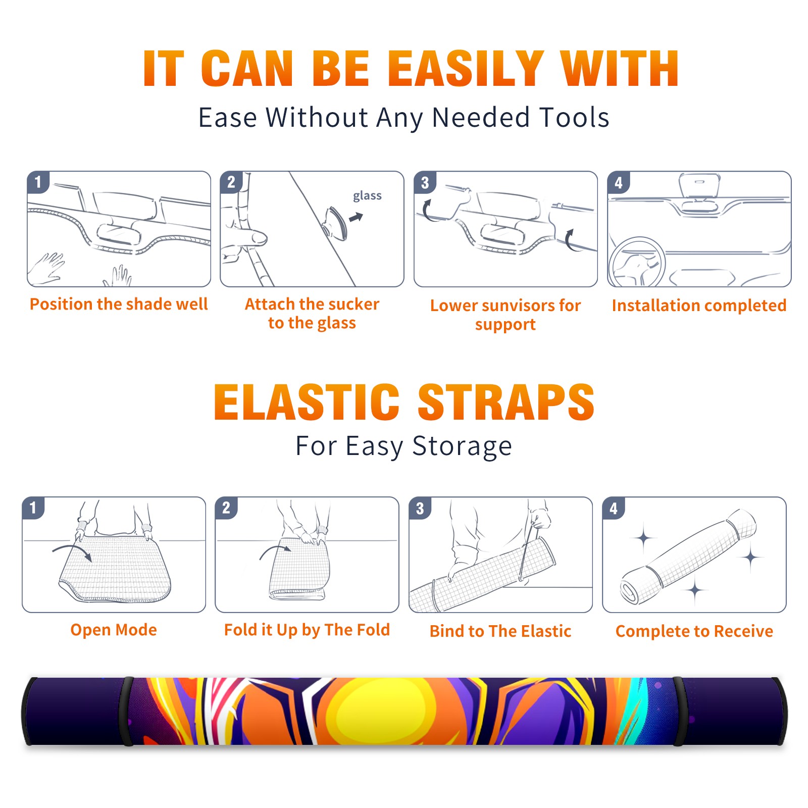 • Diameter /Size 63"L x 33.5"W Made from excellent materials which makes it sturdy and protects the car from the sun. Easy to use and pack. Makes the interior of the car cooler.You can easily stash the sunshade in the storage bag or store long term.It open and closes easy. Also the leather storage bag is durable and easy to put the umbrella back into.This windshield sunshade provides complete coverage and keeps your car interior cool under direct sun. It is easy to open and position under the windshield and around the rear-view mirror. Makes Your Car Easy To Identify, Perfect For Finding Your Car In Crowded Parking Lots And Garages.Great Choice: It Is A Great Gift For Dad, Boyfriend, Brother, Brother And Uncle, Friends, Classmates, Family And So On. Notice: Due To Difference Computer Monitors, The Color Maybe Slightly Different From Picture. As Different Measurement Methods, Measurement Data Will Float Within 2%.I Hope You Understand. If You Have Any Question About The Item Please Do Not Hesitate To Contact Us Immediately And We Will Give You A Satisfactory Reply Within 24 Hours.