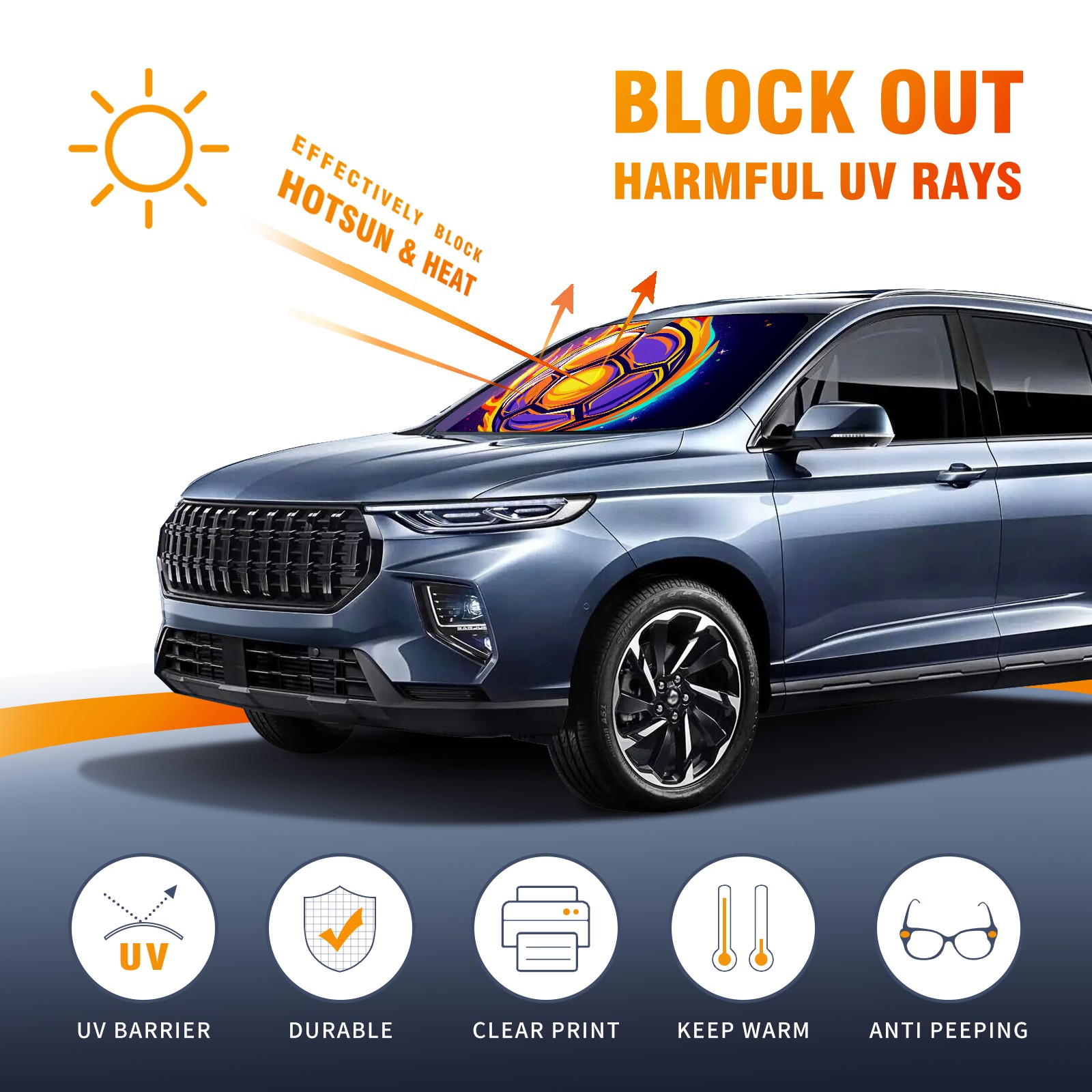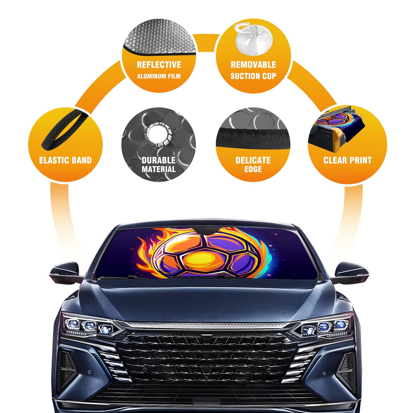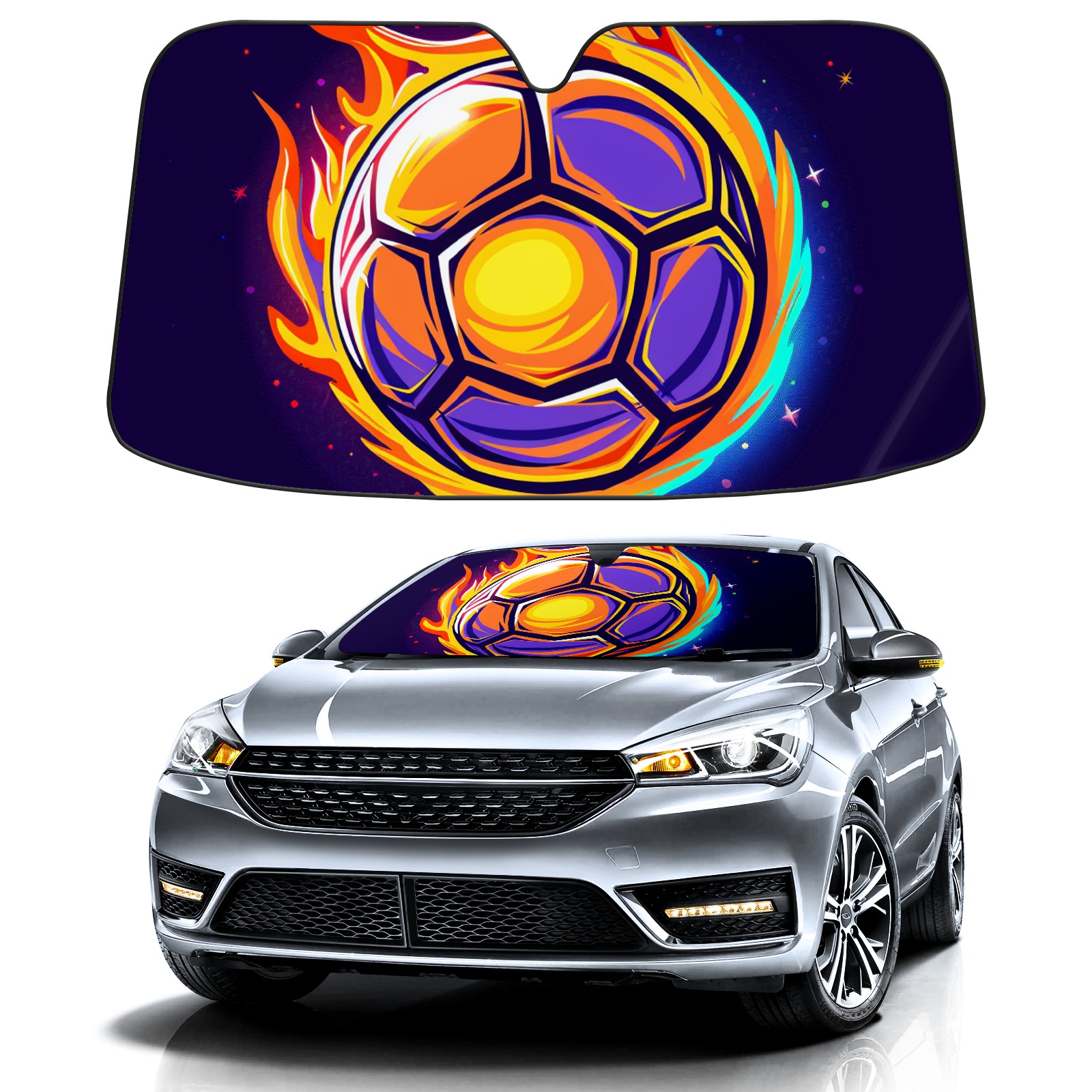 Car Windshield Sun Shade For Front Window Glowing Soccer Ball (6) Foldable Vehicle Windshield Car Sun Visor Covers Automotive Window Protector Car Camping Privacy Sun Blocker