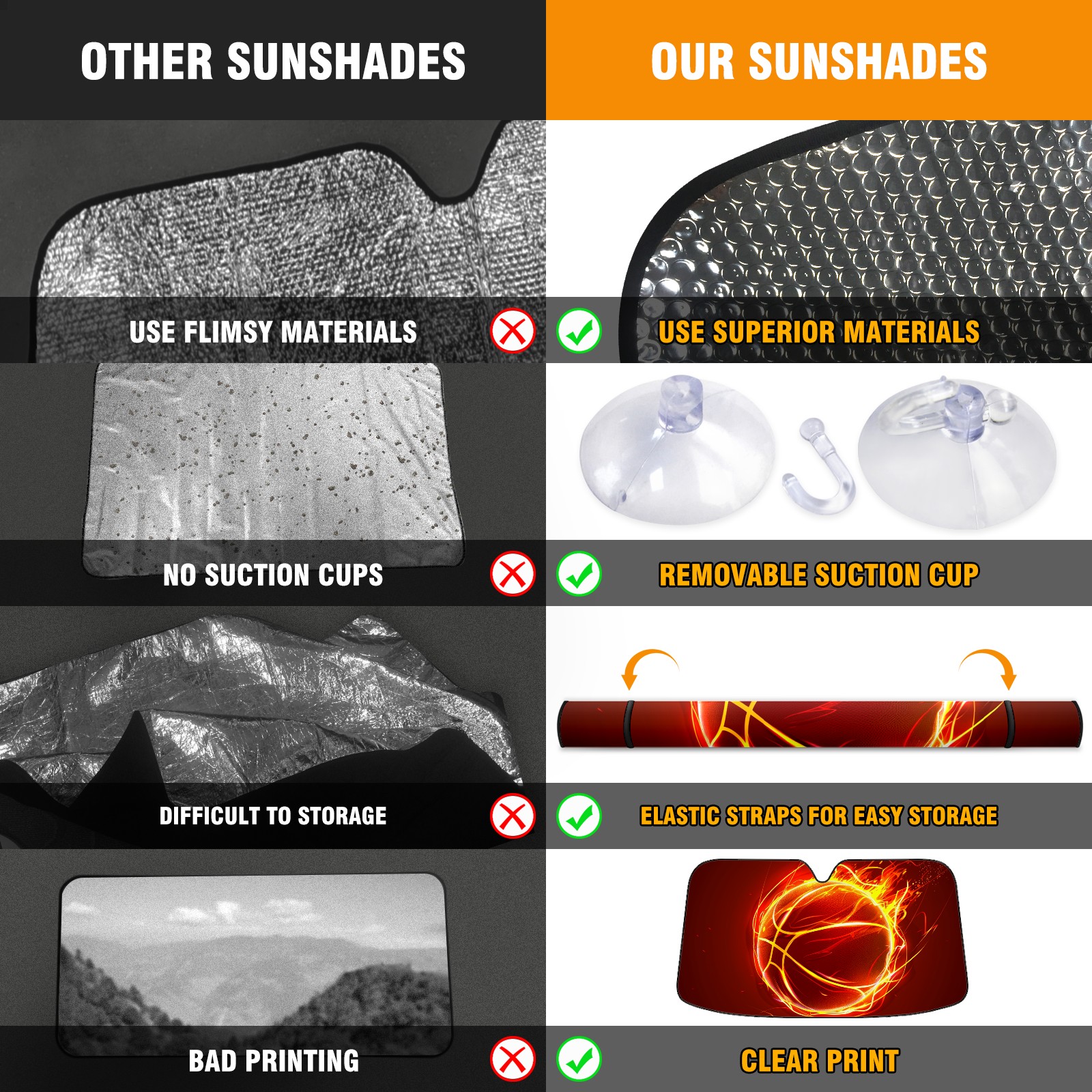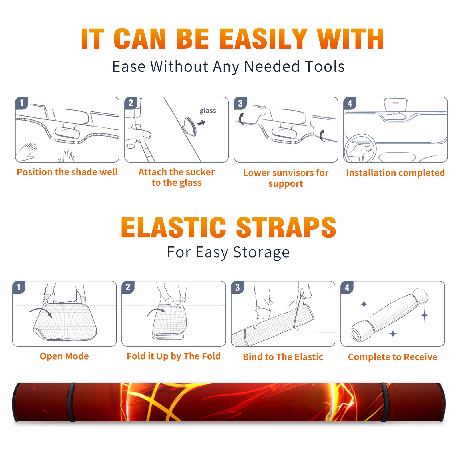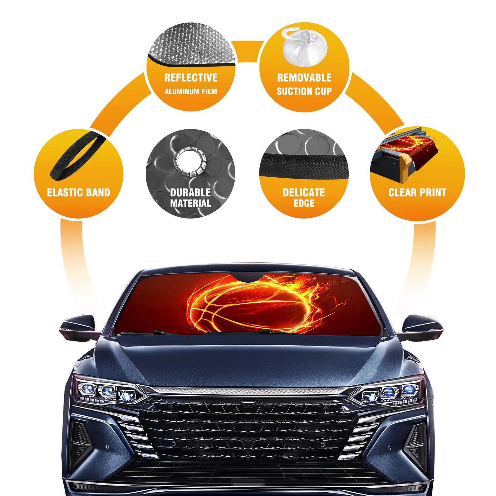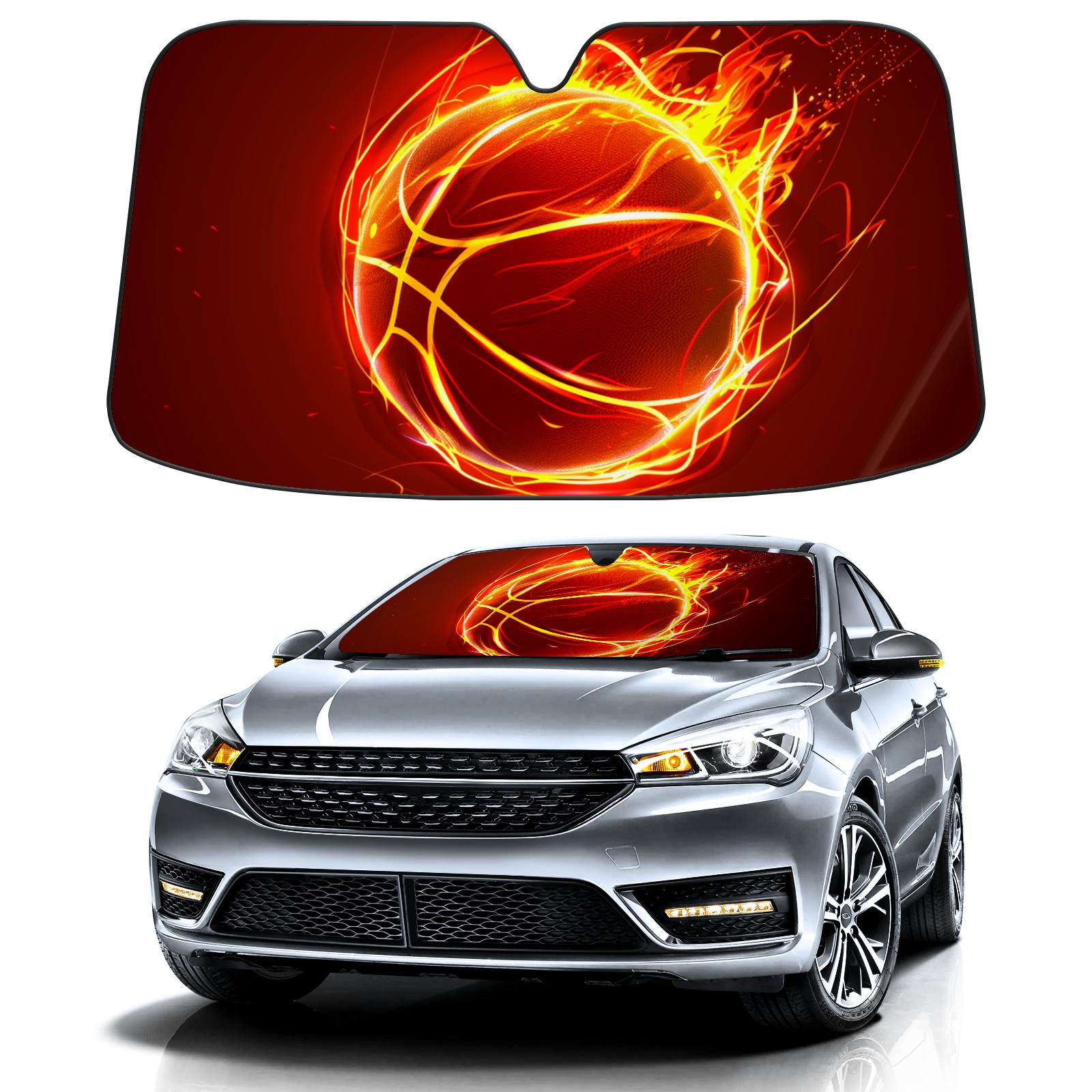 Car Windshield Sun Shade For Front Window Fire Ball (2) Foldable Vehicle Windshield Car Sun Visor Covers Automotive Window Protector Car Camping Privacy Sun Blocker