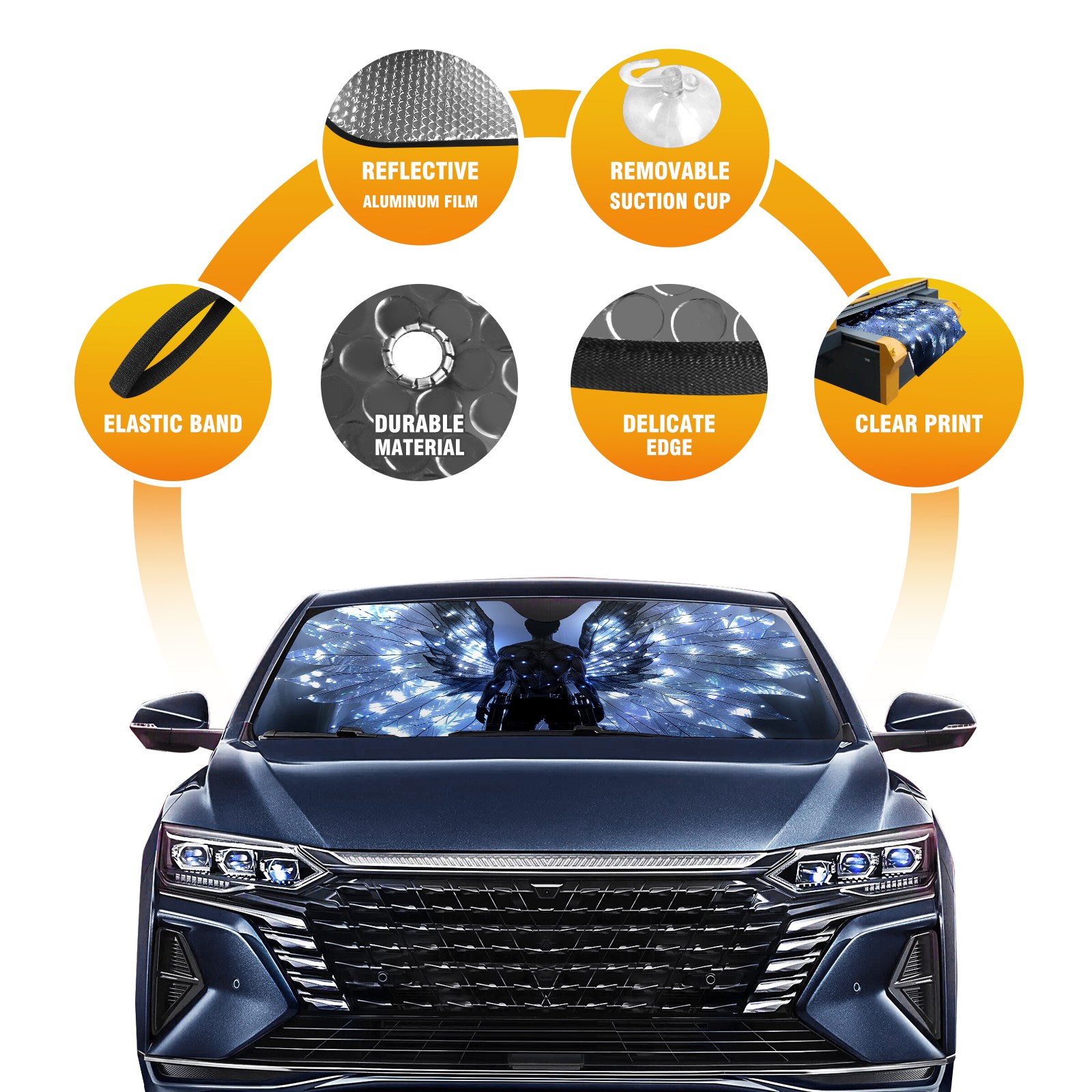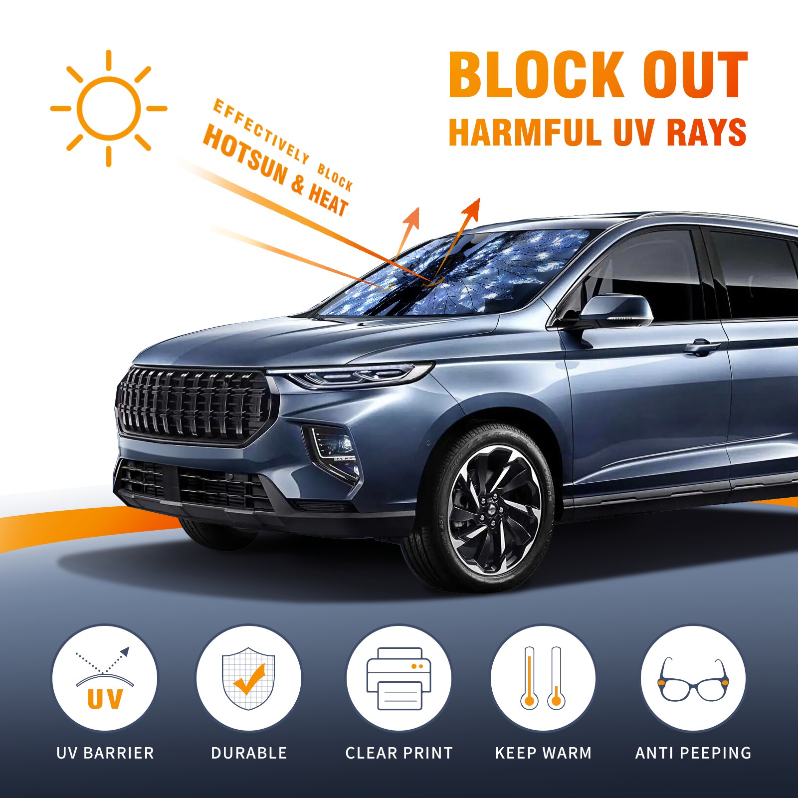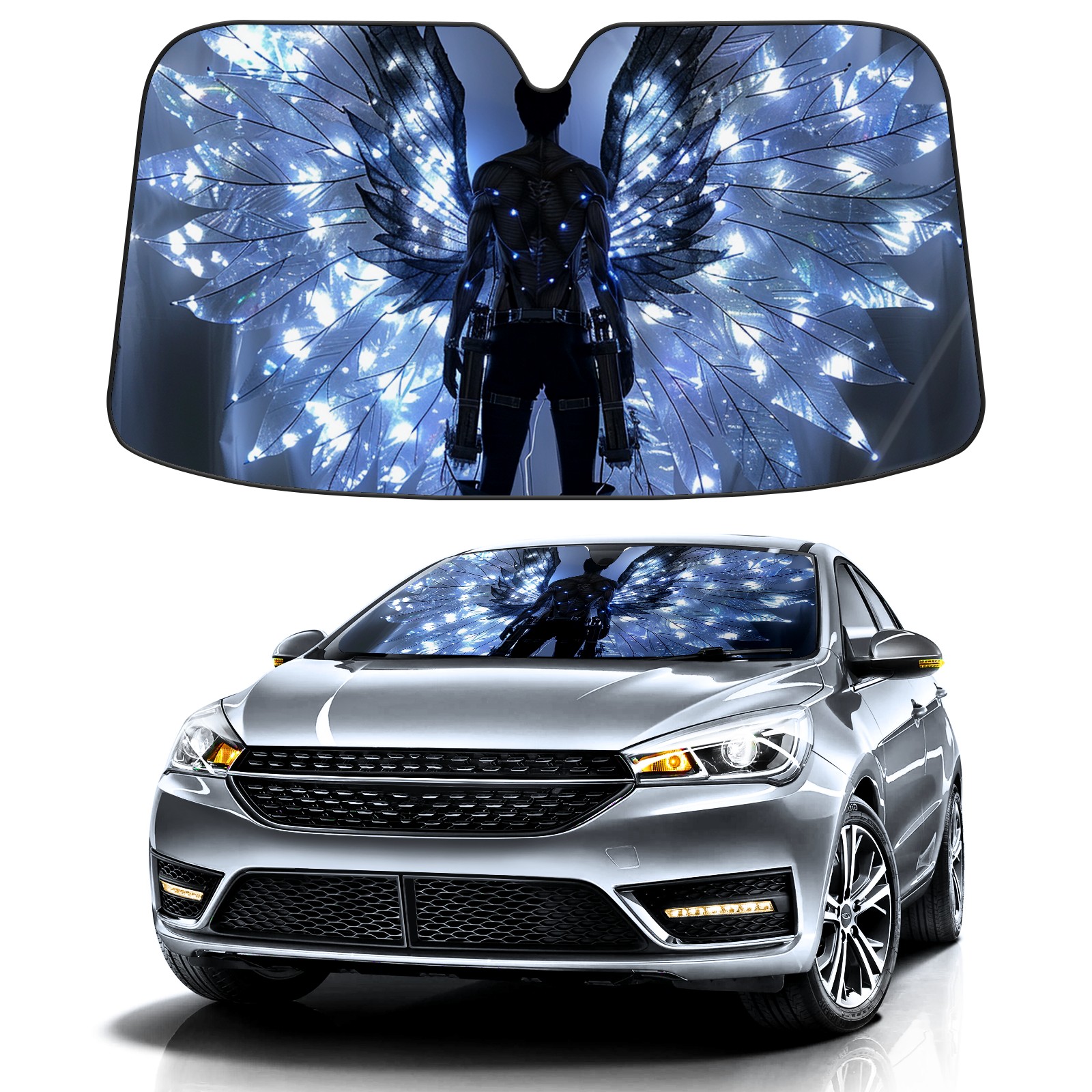 Car Windshield Sun Shade For Front Window Feathers (2) Foldable Vehicle Windshield Car Sun Visor Covers Automotive Window Protector Car Camping Privacy Sun Blocker