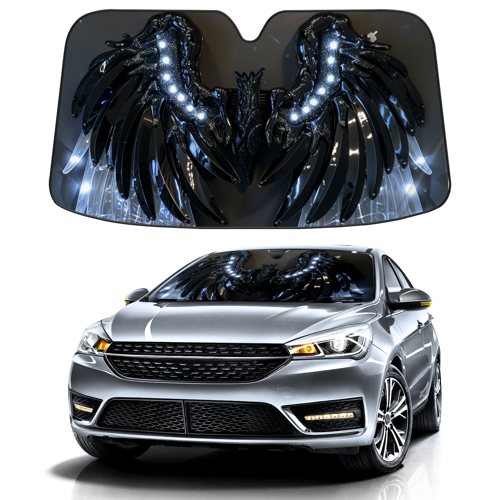 Car Windshield Sun Shade For Front Window Feathers (3) Foldable Vehicle Windshield Car Sun Visor Covers Automotive Window Protector Car Camping Privacy Sun Blocker
