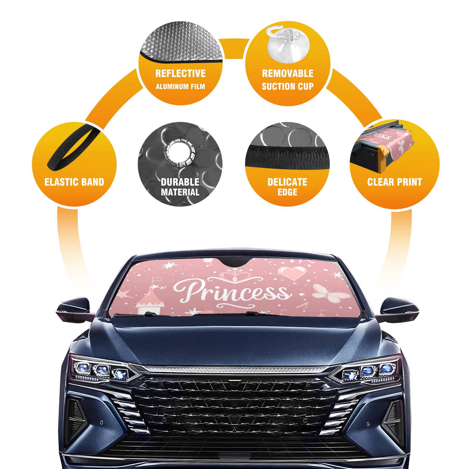Diameter /Size 63"L x 33.5"W Made from excellent materials which makes it sturdy and protects the car from the sun. Easy to use and pack. Makes the interior of the car cooler.You can easily stash the sunshade in the storage bag or store long term.It open and closes easy. Also the leather storage bag is durable and easy to put the umbrella back into.This windshield sunshade provides complete coverage and keeps your car interior cool under direct sun. It is easy to open and position under the windshield and around the rear-view mirror. Makes Your Car Easy To Identify, Perfect For Finding Your Car In Crowded Parking Lots And Garages.Great Choice: It Is A Great Gift For Dad, Boyfriend, Brother, Brother And Uncle, Friends, Classmates, Family And So On. Notice: Due To Difference Computer Monitors, The Color Maybe Slightly Different From Picture. As Different Measurement Methods, Measurement Data Will Float Within 2%.I Hope You Understand. If You Have Any Question About The Item Please Do Not Hesitate To Contact Us Immediately And We Will Give You A Satisfactory Reply Within 24 Hours.