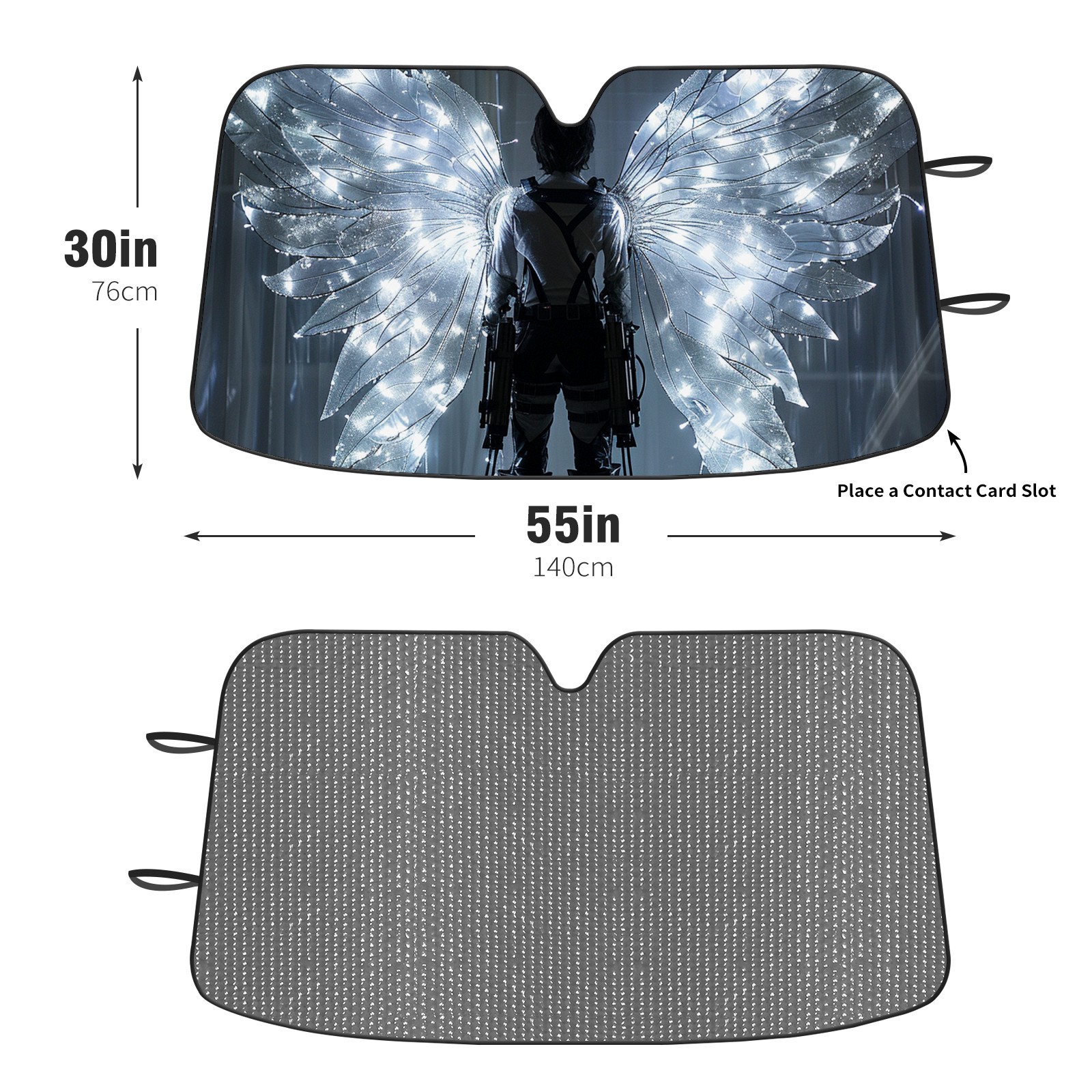 Diameter /Size 63"L x 33.5"W Made from excellent materials which makes it sturdy and protects the car from the sun. Easy to use and pack. Makes the interior of the car cooler.You can easily stash the sunshade in the storage bag or store long term.It open and closes easy. Also the leather storage bag is durable and easy to put the umbrella back into.This windshield sunshade provides complete coverage and keeps your car interior cool under direct sun. It is easy to open and position under the windshield and around the rear-view mirror. Makes Your Car Easy To Identify, Perfect For Finding Your Car In Crowded Parking Lots And Garages.Great Choice: It Is A Great Gift For Dad, Boyfriend, Brother, Brother And Uncle, Friends, Classmates, Family And So On. Notice: Due To Difference Computer Monitors, The Color Maybe Slightly Different From Picture. As Different Measurement Methods, Measurement Data Will Float Within 2%.I Hope You Understand. If You Have Any Question About The Item Please Do Not Hesitate To Contact Us Immediately And We Will Give You A Satisfactory Reply Within 24 Hours.
