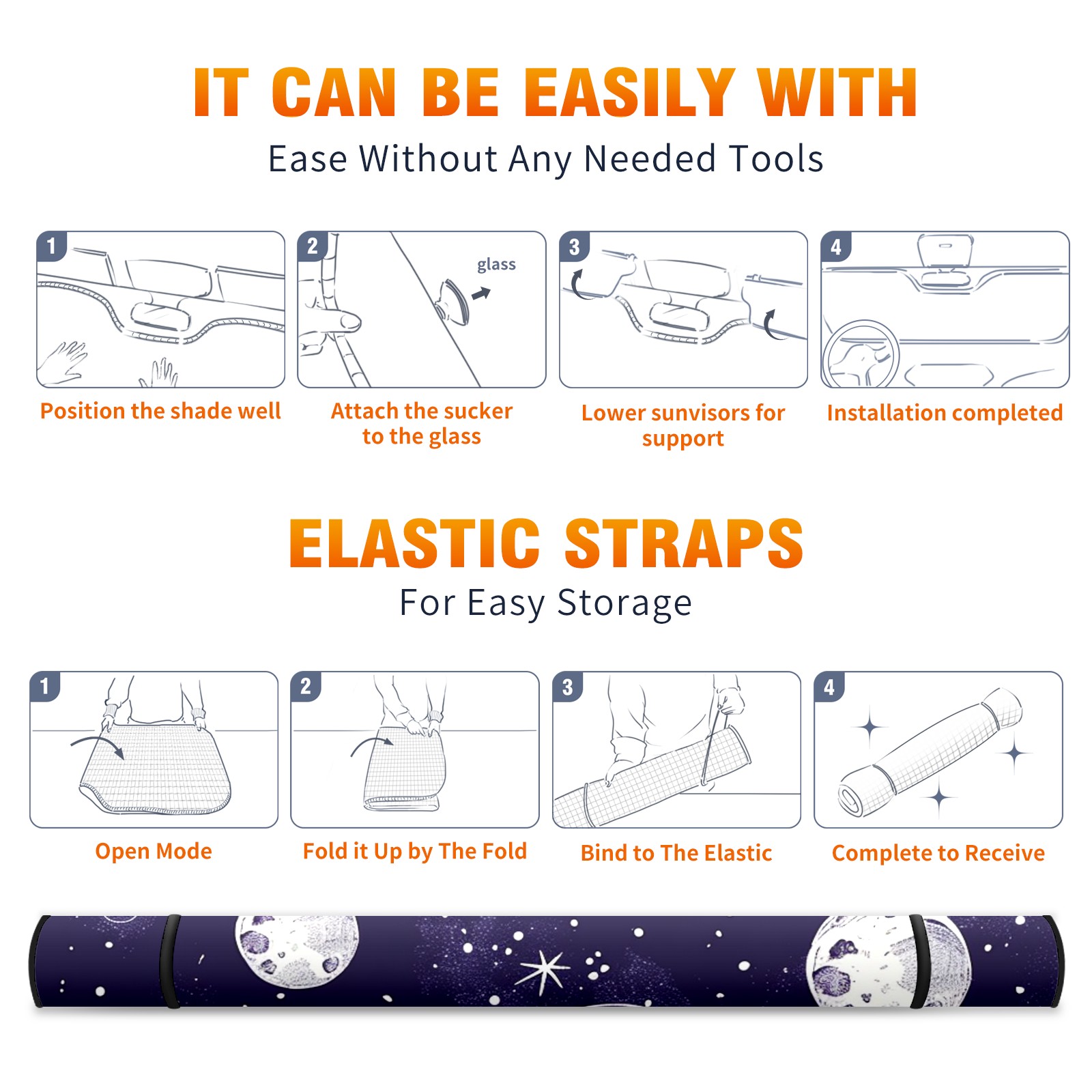 Car Windshield Sun Shade For Front Window DarkBlueSky (3) Foldable Vehicle Windshield Car Sun Visor Covers Automotive Window Protector Car Camping Privacy Sun Blocker