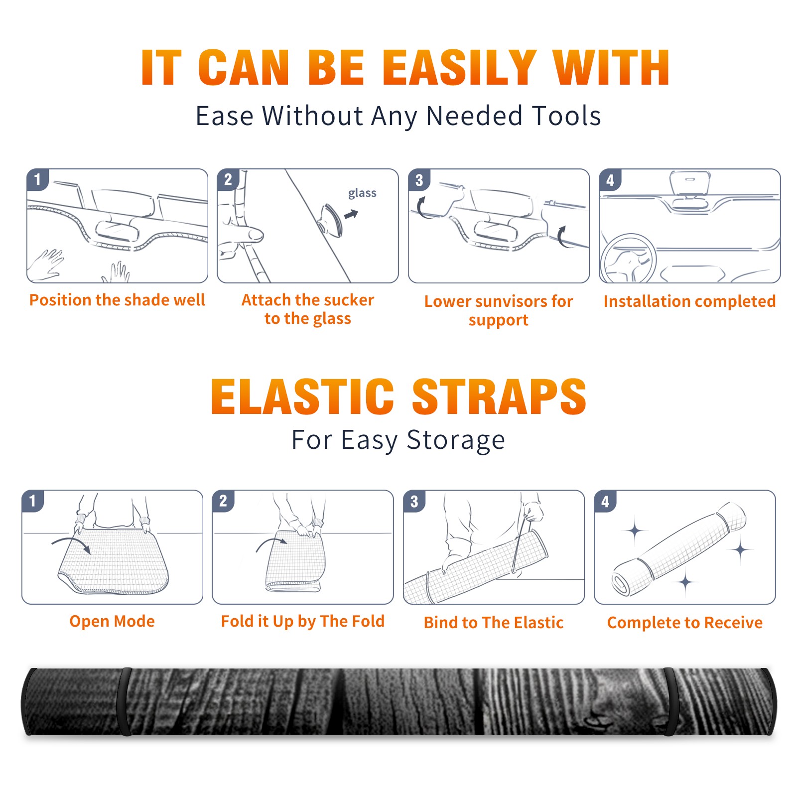 • Diameter /Size 63"L x 33.5"W Made from excellent materials which makes it sturdy and protects the car from the sun. Easy to use and pack. Makes the interior of the car cooler.You can easily stash the sunshade in the storage bag or store long term.It open and closes easy. Also the leather storage bag is durable and easy to put the umbrella back into.This windshield sunshade provides complete coverage and keeps your car interior cool under direct sun. It is easy to open and position under the windshield and around the rear-view mirror. Makes Your Car Easy To Identify, Perfect For Finding Your Car In Crowded Parking Lots And Garages.Great Choice: It Is A Great Gift For Dad, Boyfriend, Brother, Brother And Uncle, Friends, Classmates, Family And So On. Notice: Due To Difference Computer Monitors, The Color Maybe Slightly Different From Picture. As Different Measurement Methods, Measurement Data Will Float Within 2%.I Hope You Understand. If You Have Any Question About The Item Please Do Not Hesitate To Contact Us Immediately And We Will Give You A Satisfactory Reply Within 24 Hours.
