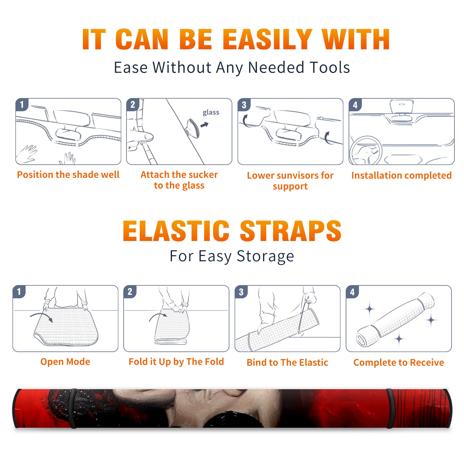 • Diameter /Size 63"L x 33.5"W Made from excellent materials which makes it sturdy and protects the car from the sun. Easy to use and pack. Makes the interior of the car cooler.You can easily stash the sunshade in the storage bag or store long term.It open and closes easy. Also the leather storage bag is durable and easy to put the umbrella back into.This windshield sunshade provides complete coverage and keeps your car interior cool under direct sun. It is easy to open and position under the windshield and around the rear-view mirror. Makes Your Car Easy To Identify, Perfect For Finding Your Car In Crowded Parking Lots And Garages.Great Choice: It Is A Great Gift For Dad, Boyfriend, Brother, Brother And Uncle, Friends, Classmates, Family And So On. Notice: Due To Difference Computer Monitors, The Color Maybe Slightly Different From Picture. As Different Measurement Methods, Measurement Data Will Float Within 2%.I Hope You Understand. If You Have Any Question About The Item Please Do Not Hesitate To Contact Us Immediately And We Will Give You A Satisfactory Reply Within 24 Hours.