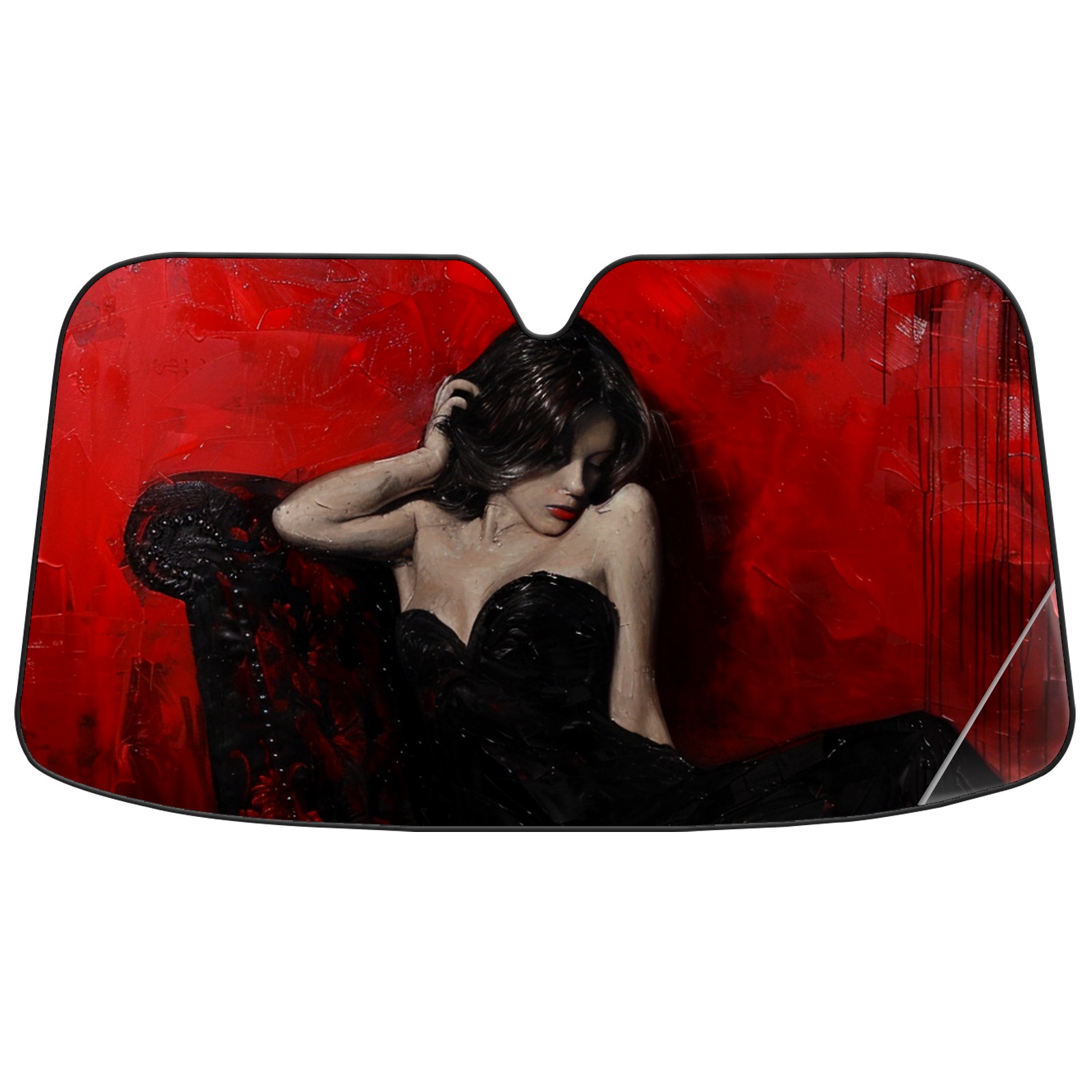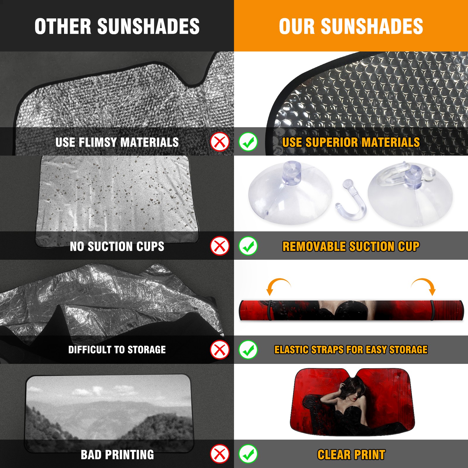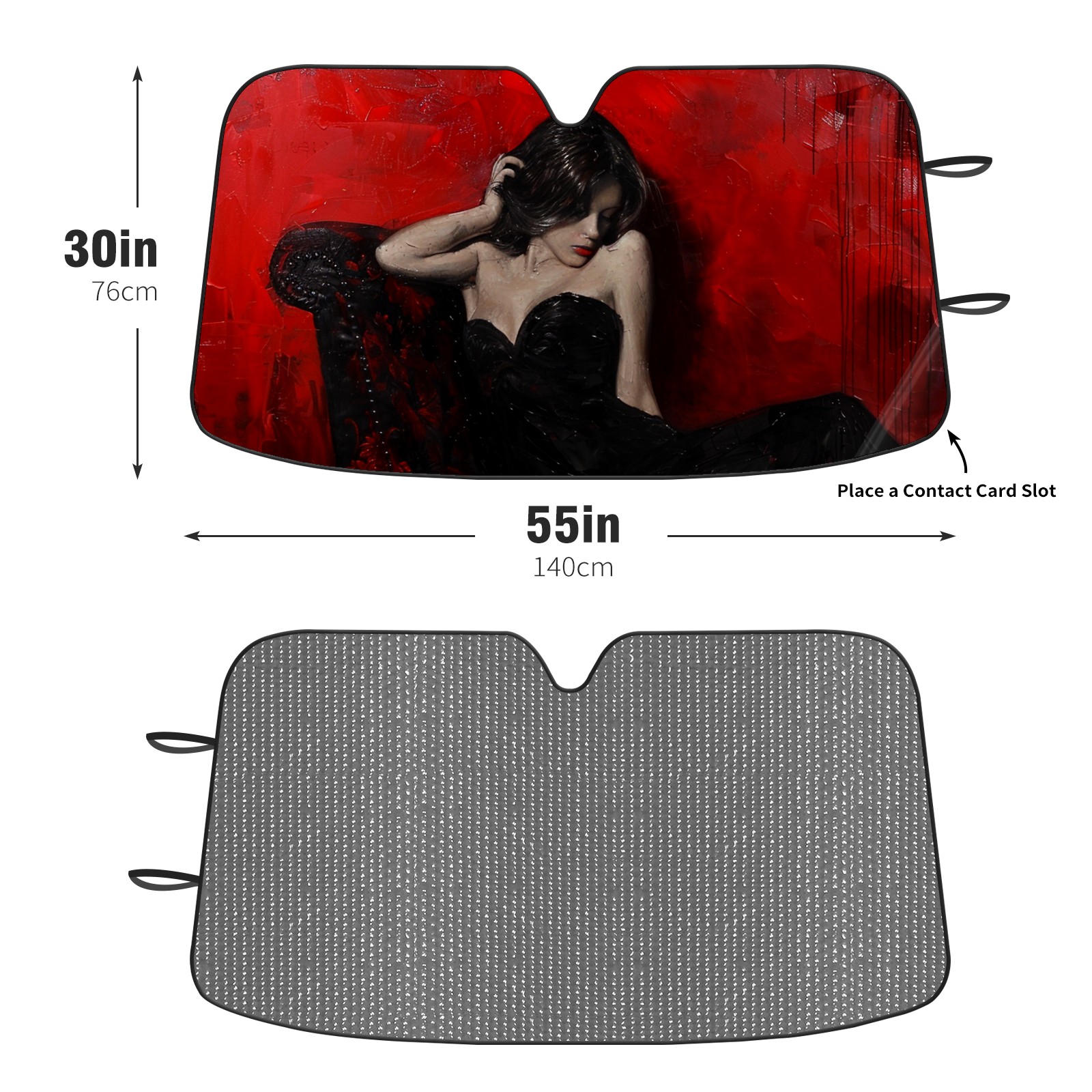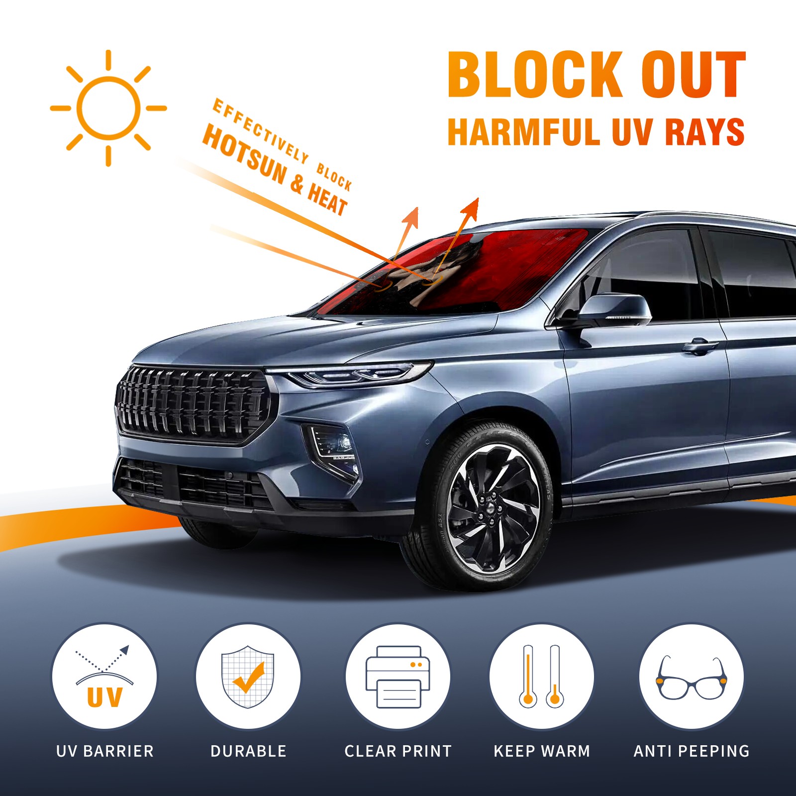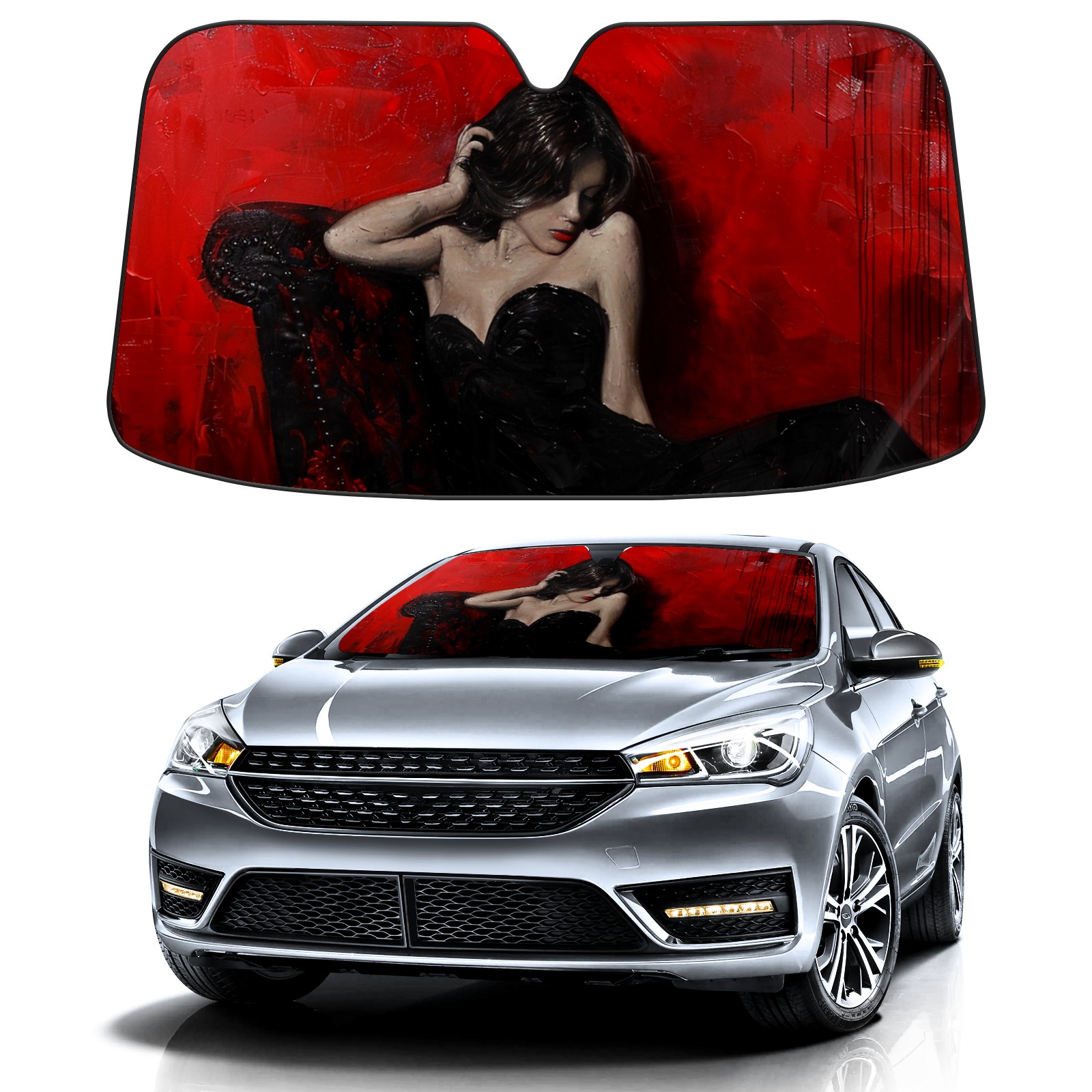 Car Windshield Sun Shade For Front Window BlackandRed (2) Foldable Vehicle Windshield Car Sun Visor Covers Automotive Window Protector Car Camping Privacy Sun Blocker