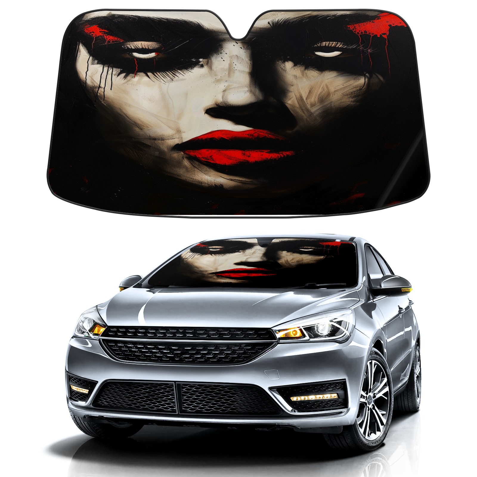 Car Windshield Sun Shade For Front Window BlackandRed (1) Foldable Vehicle Windshield Car Sun Visor Covers Automotive Window Protector Car Camping Privacy Sun Blocker