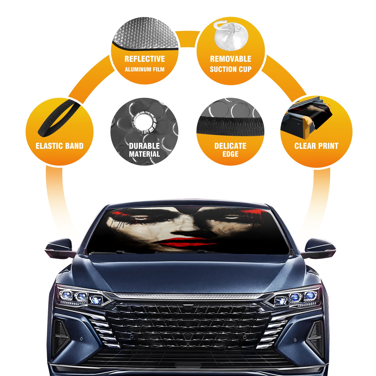 • Diameter /Size 63"L x 33.5"W Made from excellent materials which makes it sturdy and protects the car from the sun. Easy to use and pack. Makes the interior of the car cooler.You can easily stash the sunshade in the storage bag or store long term.It open and closes easy. Also the leather storage bag is durable and easy to put the umbrella back into.This windshield sunshade provides complete coverage and keeps your car interior cool under direct sun. It is easy to open and position under the windshield and around the rear-view mirror. Makes Your Car Easy To Identify, Perfect For Finding Your Car In Crowded Parking Lots And Garages.Great Choice: It Is A Great Gift For Dad, Boyfriend, Brother, Brother And Uncle, Friends, Classmates, Family And So On. Notice: Due To Difference Computer Monitors, The Color Maybe Slightly Different From Picture. As Different Measurement Methods, Measurement Data Will Float Within 2%.I Hope You Understand. If You Have Any Question About The Item Please Do Not Hesitate To Contact Us Immediately And We Will Give You A Satisfactory Reply Within 24 Hours.