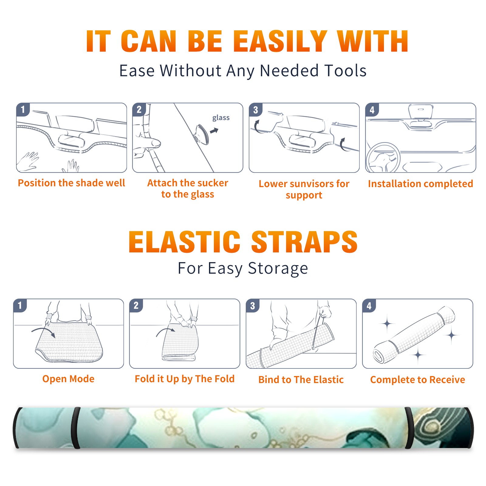 • Diameter /Size 63"L x 33.5"W Made from excellent materials which makes it sturdy and protects the car from the sun. Easy to use and pack. Makes the interior of the car cooler.You can easily stash the sunshade in the storage bag or store long term.It open and closes easy. Also the leather storage bag is durable and easy to put the umbrella back into.This windshield sunshade provides complete coverage and keeps your car interior cool under direct sun. It is easy to open and position under the windshield and around the rear-view mirror. Makes Your Car Easy To Identify, Perfect For Finding Your Car In Crowded Parking Lots And Garages.Great Choice: It Is A Great Gift For Dad, Boyfriend, Brother, Brother And Uncle, Friends, Classmates, Family And So On. Notice: Due To Difference Computer Monitors, The Color Maybe Slightly Different From Picture. As Different Measurement Methods, Measurement Data Will Float Within 2%.I Hope You Understand. If You Have Any Question About The Item Please Do Not Hesitate To Contact Us Immediately And We Will Give You A Satisfactory Reply Within 24 Hours.