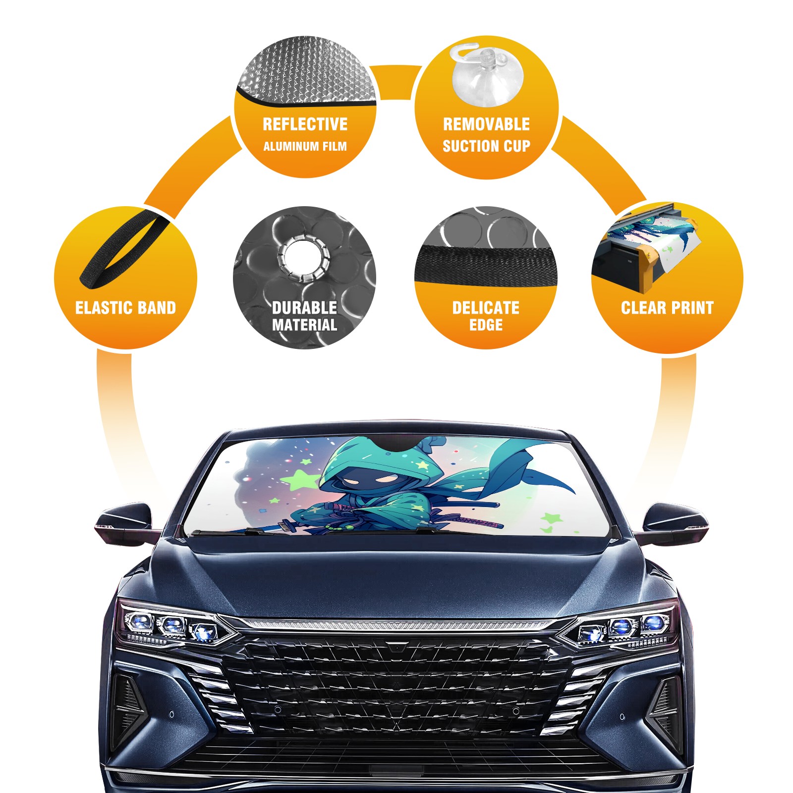 Car Windshield Sun Shade For Front Window A Cartoon Ninja (4) Foldable Vehicle Windshield Car Sun Visor Covers Automotive Window Protector Car Camping Privacy Sun Blocker