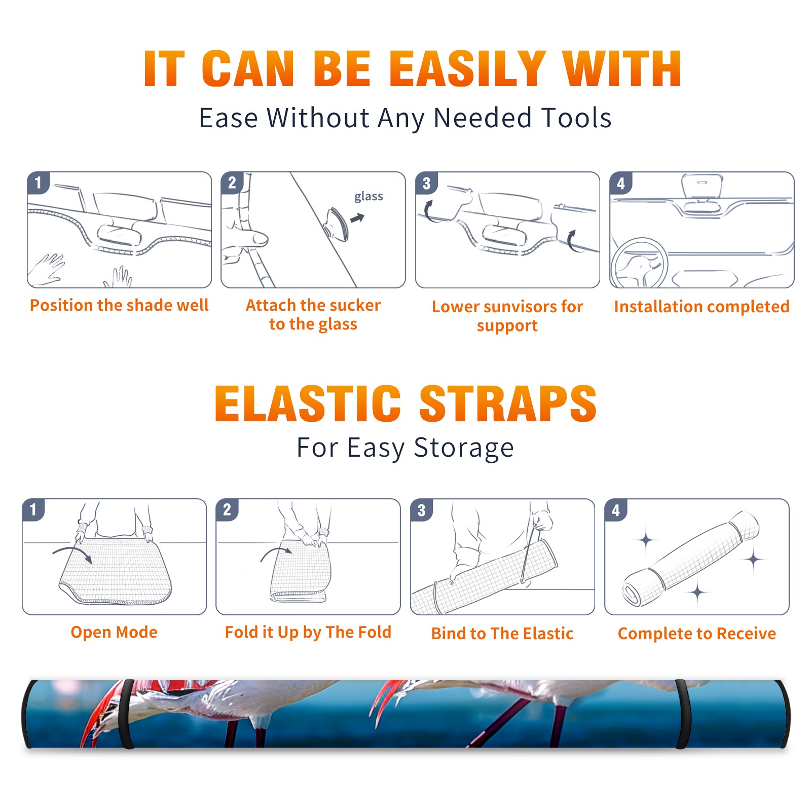 Car Windshield Sun Shade For Front Window Water Bird (4) Foldable Vehicle Windshield Car Sun Visor Covers Automotive Window Protector Car Camping Privacy Sun Blocker