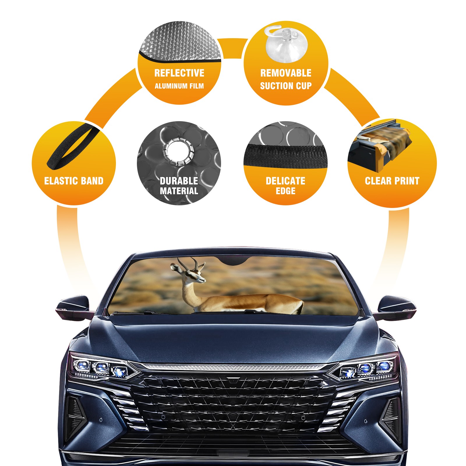 Car Windshield Sun Shade For Front Window Springbok (4) Foldable Vehicle Windshield Car Sun Visor Covers Automotive Window Protector Car Camping Privacy Sun Blocker