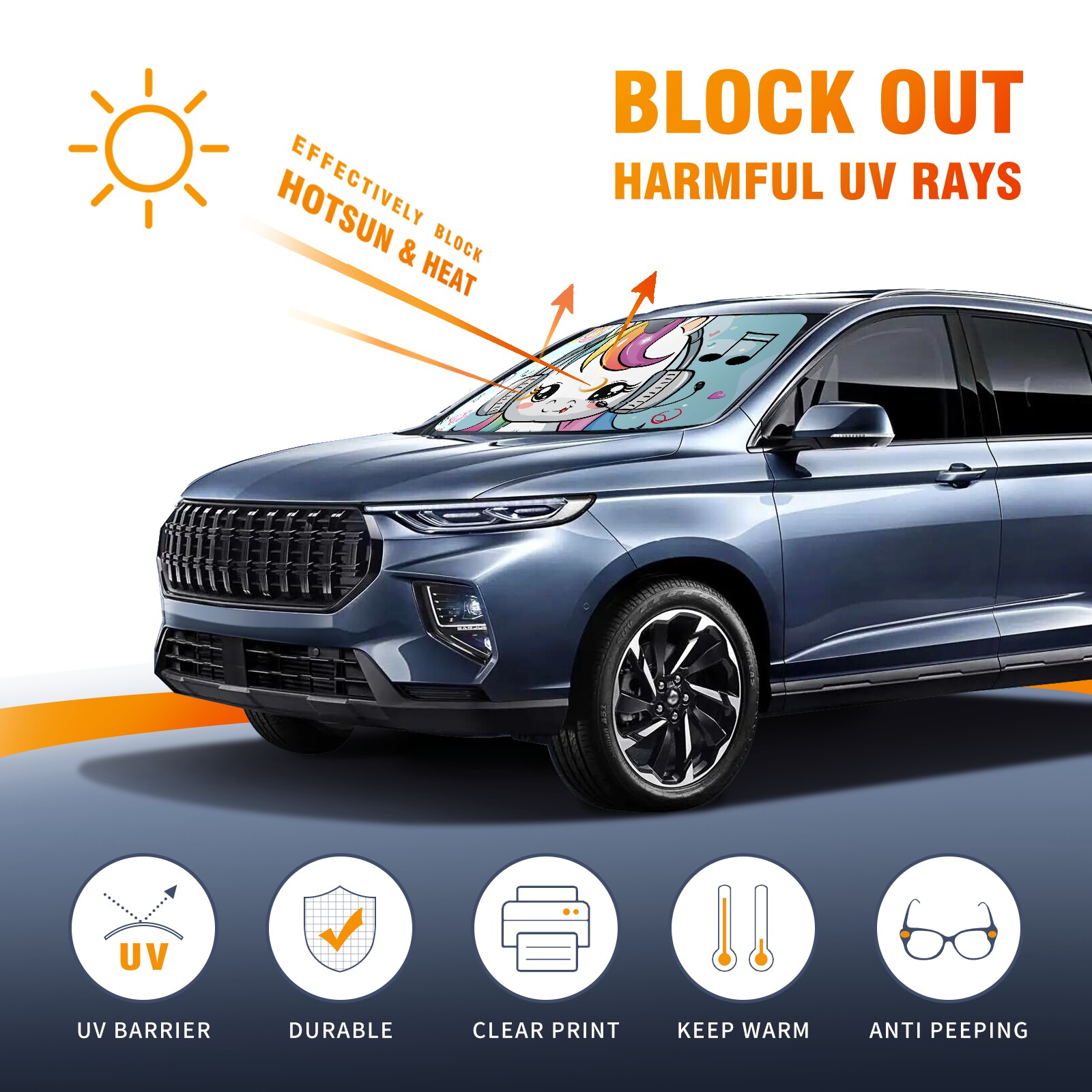 Car Windshield Sun Shade For Front Window Nnicorn With Rainbow Hair (4) Foldable Vehicle Windshield Car Sun Visor Covers Automotive Window Protector Car Camping Privacy Sun Blocker