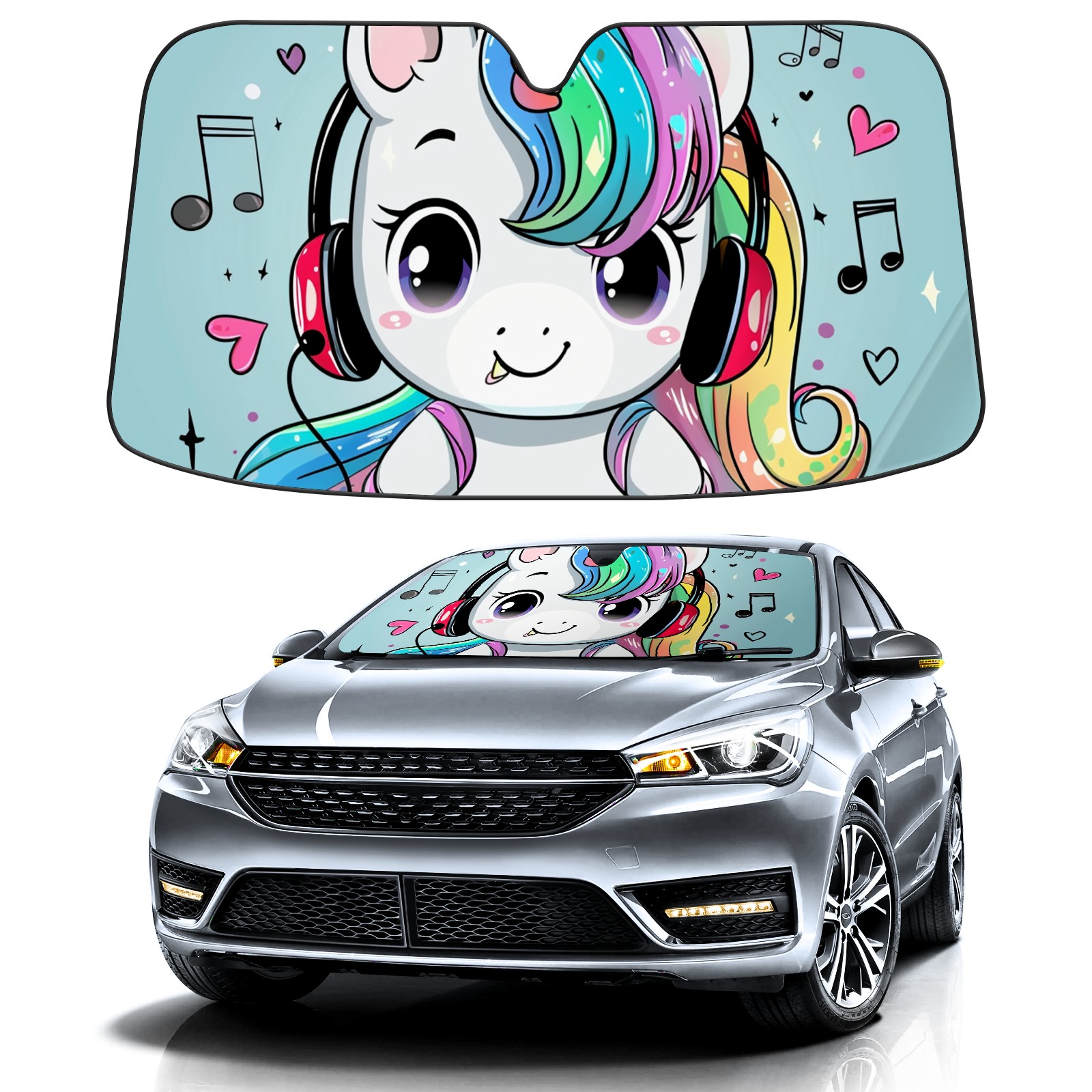 Car Windshield Sun Shade For Front Window Nnicorn With Rainbow Hair (2) Foldable Vehicle Windshield Car Sun Visor Covers Automotive Window Protector Car Camping Privacy Sun Blocker