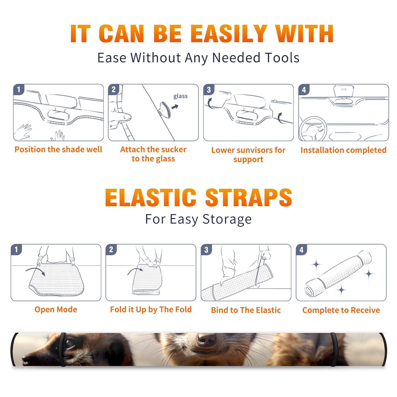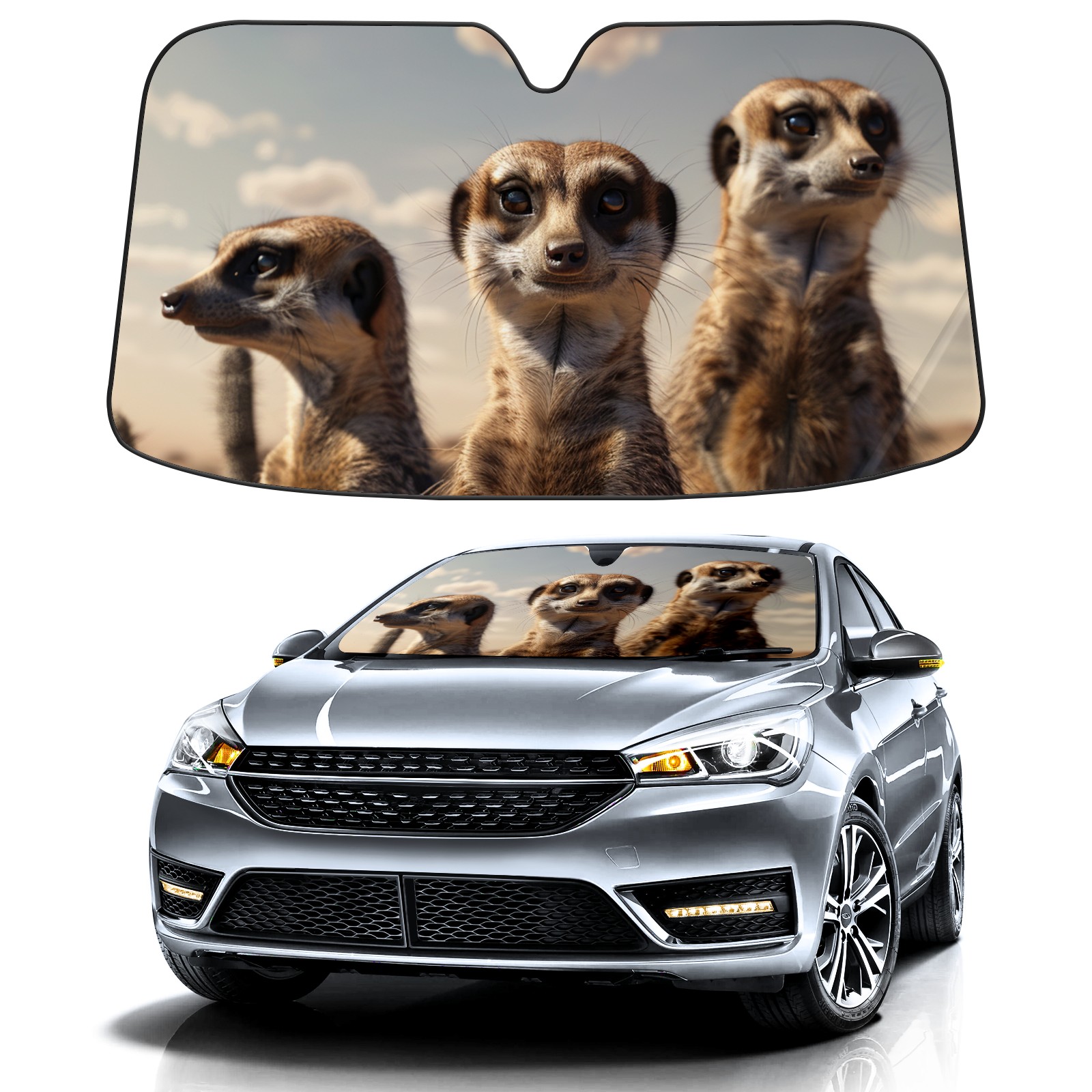 Car Windshield Sun Shade For Front Window Meerkats (2) Foldable Vehicle Windshield Car Sun Visor Covers Automotive Window Protector Car Camping Privacy Sun Blocker