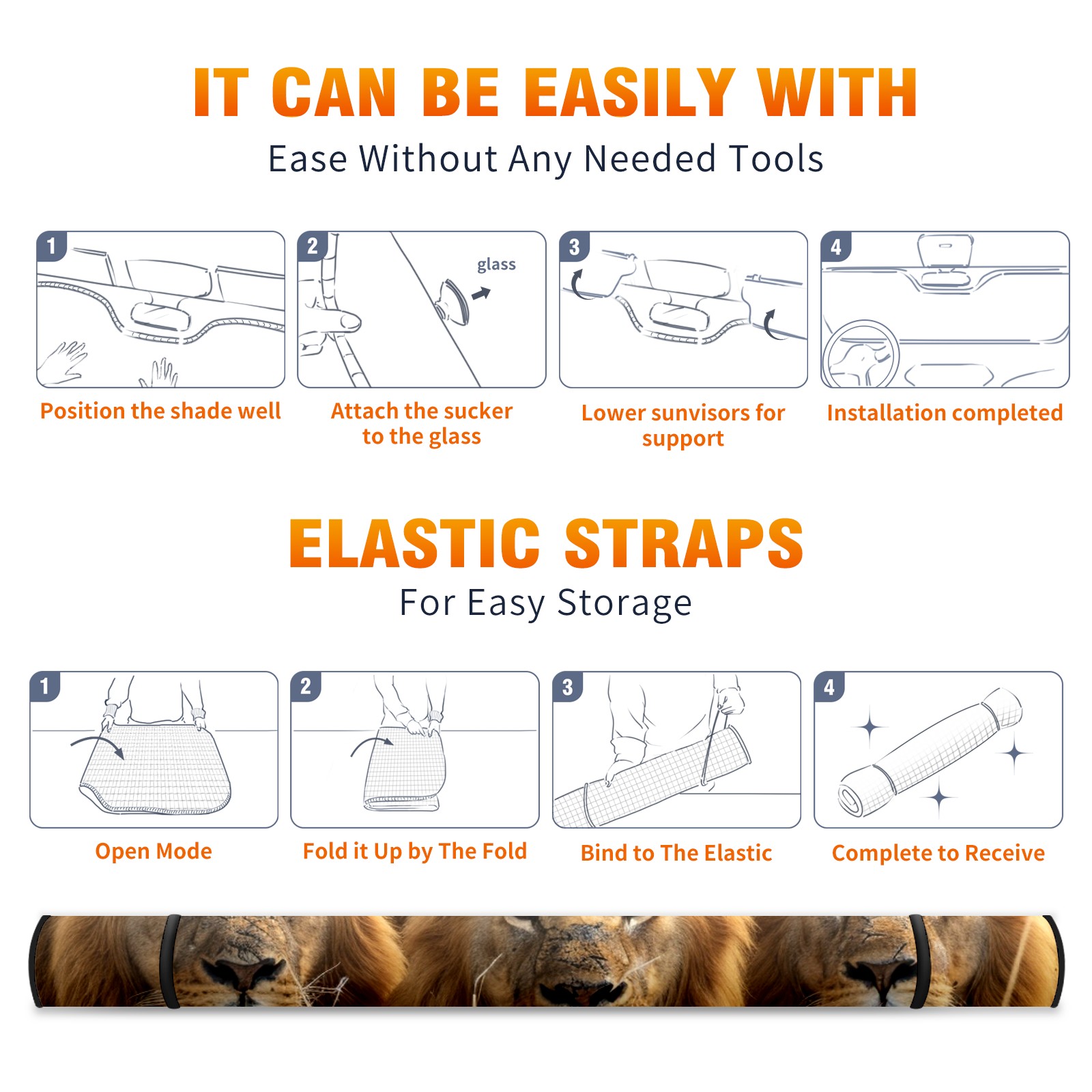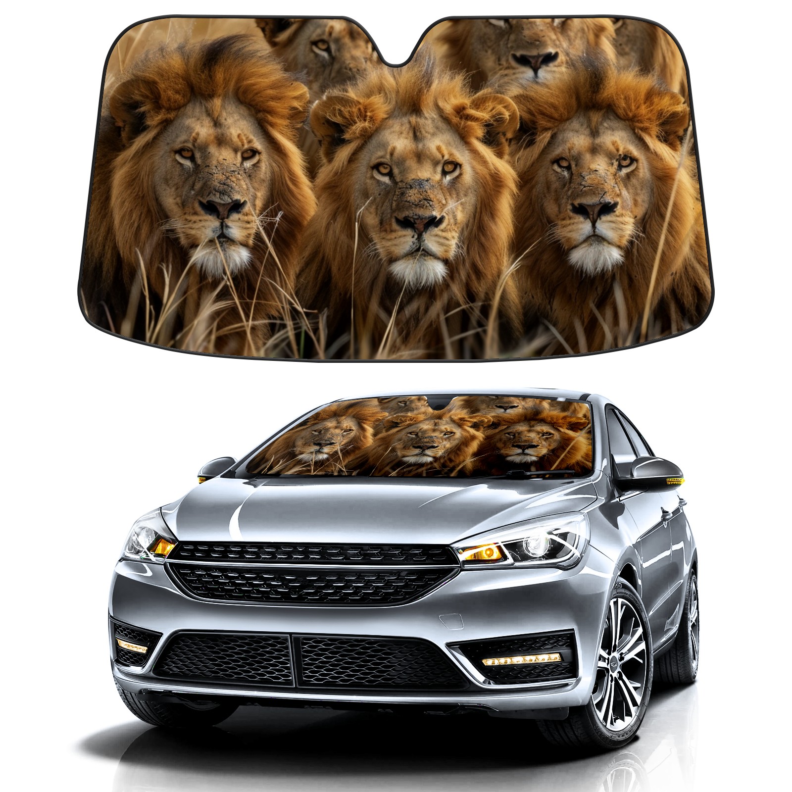 Car Windshield Sun Shade For Front Window Lions (3) Foldable Vehicle Windshield Car Sun Visor Covers Automotive Window Protector Car Camping Privacy Sun Blocker