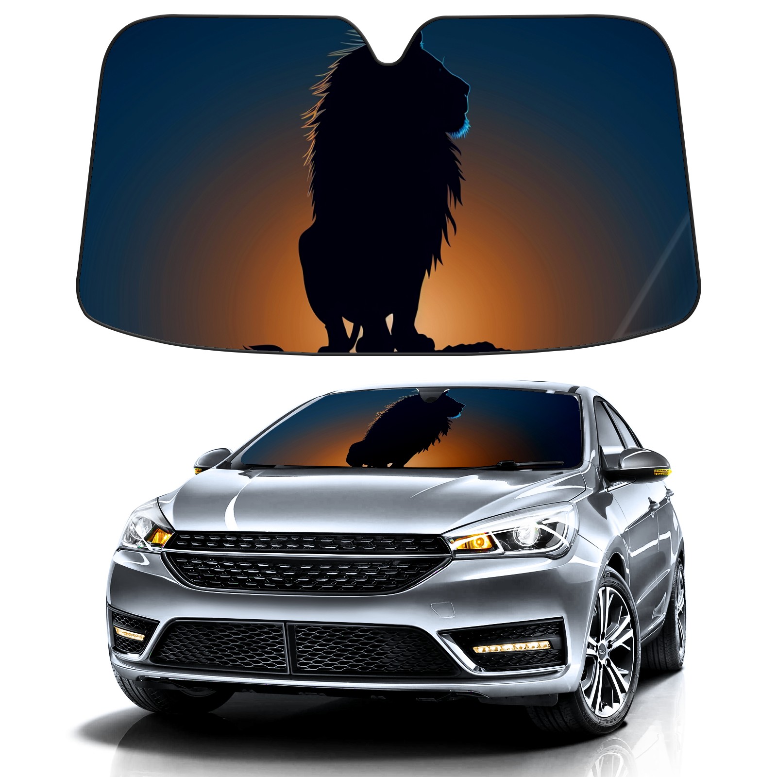 Car Windshield Sun Shade For Front Window Lion On Sunset Sky (4) Foldable Vehicle Windshield Car Sun Visor Covers Automotive Window Protector Car Camping Privacy Sun Blocker
