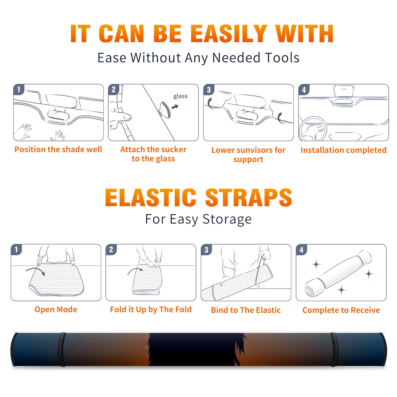 • Diameter /Size 63"L x 33.5"W Made from excellent materials which makes it sturdy and protects the car from the sun. Easy to use and pack. Makes the interior of the car cooler.You can easily stash the sunshade in the storage bag or store long term.It open and closes easy. Also the leather storage bag is durable and easy to put the umbrella back into.This windshield sunshade provides complete coverage and keeps your car interior cool under direct sun. It is easy to open and position under the windshield and around the rear-view mirror. Makes Your Car Easy To Identify, Perfect For Finding Your Car In Crowded Parking Lots And Garages.Great Choice: It Is A Great Gift For Dad, Boyfriend, Brother, Brother And Uncle, Friends, Classmates, Family And So On. Notice: Due To Difference Computer Monitors, The Color Maybe Slightly Different From Picture. As Different Measurement Methods, Measurement Data Will Float Within 2%.I Hope You Understand. If You Have Any Question About The Item Please Do Not Hesitate To Contact Us Immediately And We Will Give You A Satisfactory Reply Within 24 Hours.