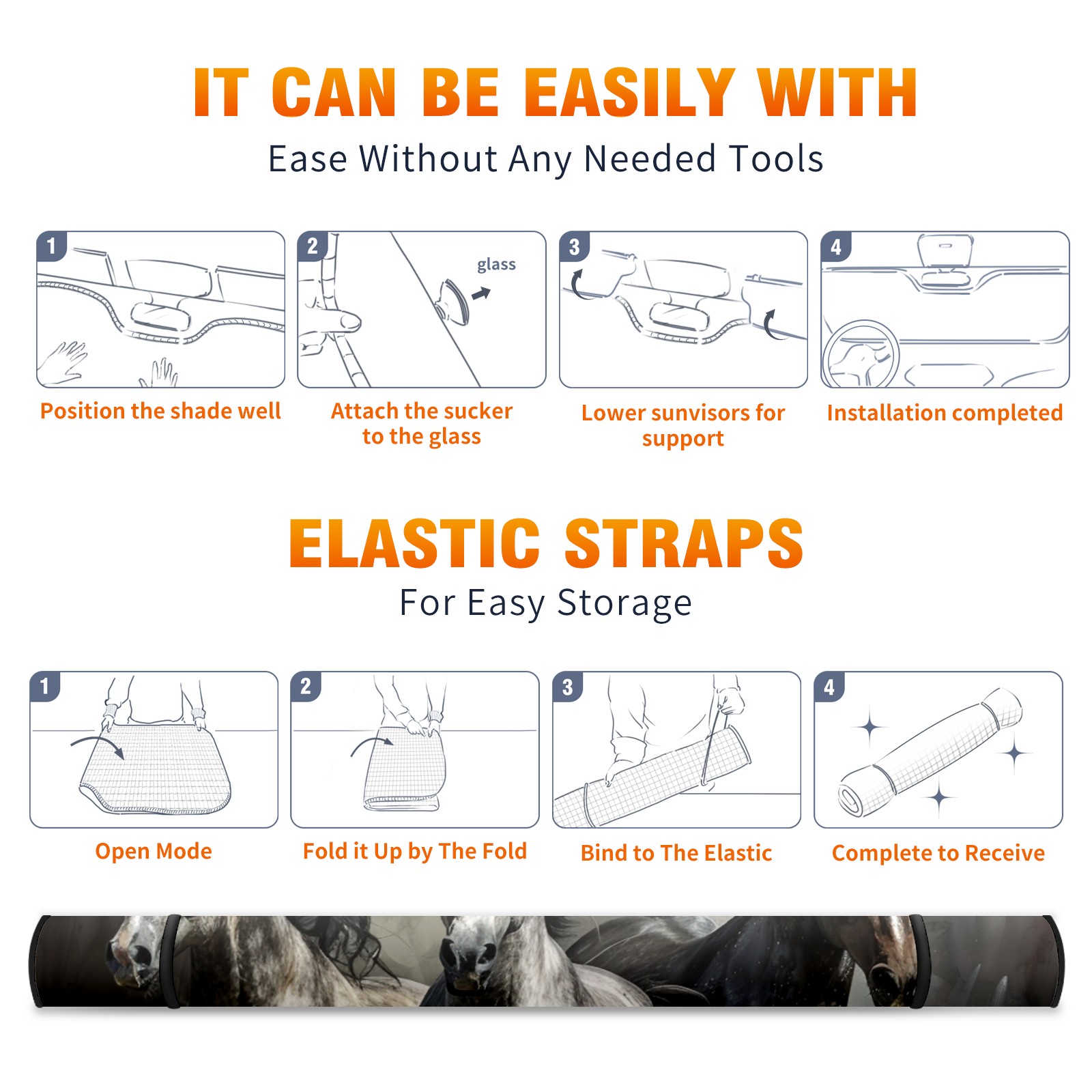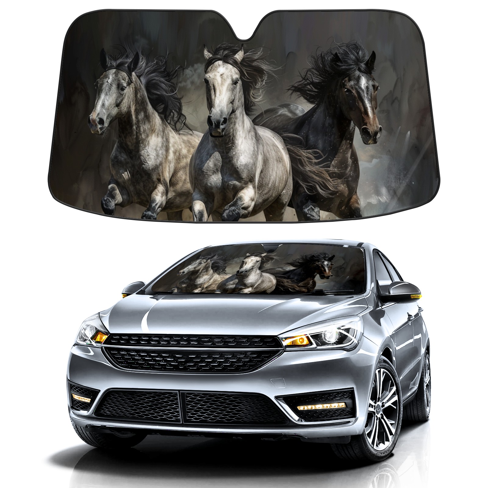 Car Windshield Sun Shade For Front Window Horses Galloping (3) Foldable Vehicle Windshield Car Sun Visor Covers Automotive Window Protector Car Camping Privacy Sun Blocker
