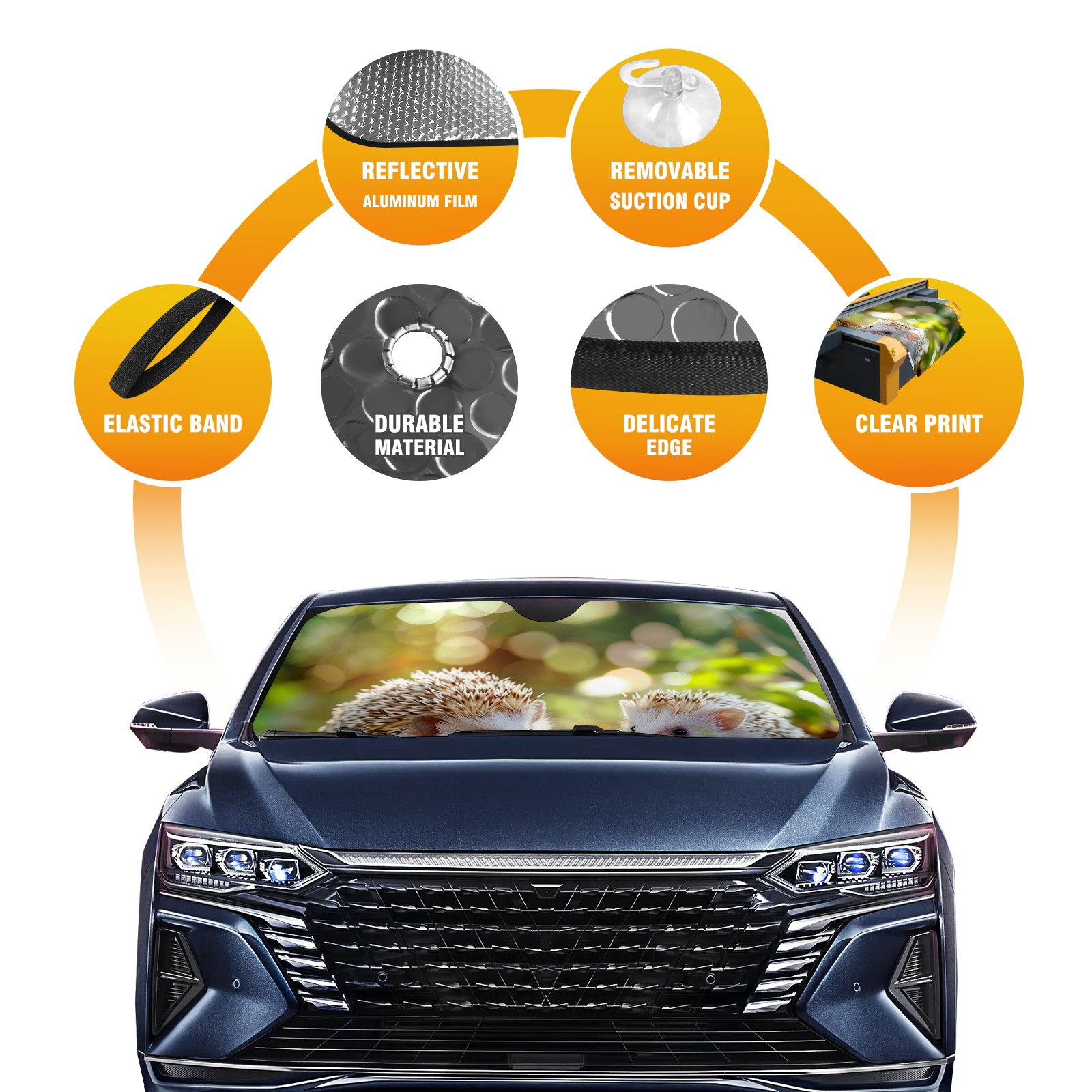 Car Windshield Sun Shade For Front Window Hedgehogs (5) Foldable Vehicle Windshield Car Sun Visor Covers Automotive Window Protector Car Camping Privacy Sun Blocker