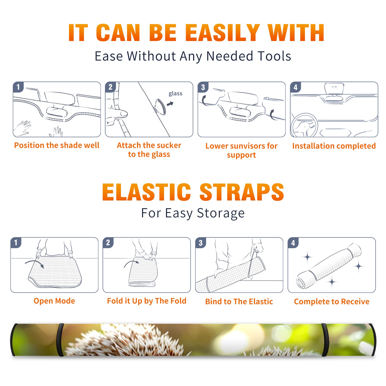 • Diameter /Size 63"L x 33.5"W Made from excellent materials which makes it sturdy and protects the car from the sun. Easy to use and pack. Makes the interior of the car cooler.You can easily stash the sunshade in the storage bag or store long term.It open and closes easy. Also the leather storage bag is durable and easy to put the umbrella back into.This windshield sunshade provides complete coverage and keeps your car interior cool under direct sun. It is easy to open and position under the windshield and around the rear-view mirror. Makes Your Car Easy To Identify, Perfect For Finding Your Car In Crowded Parking Lots And Garages.Great Choice: It Is A Great Gift For Dad, Boyfriend, Brother, Brother And Uncle, Friends, Classmates, Family And So On. Notice: Due To Difference Computer Monitors, The Color Maybe Slightly Different From Picture. As Different Measurement Methods, Measurement Data Will Float Within 2%.I Hope You Understand. If You Have Any Question About The Item Please Do Not Hesitate To Contact Us Immediately And We Will Give You A Satisfactory Reply Within 24 Hours.