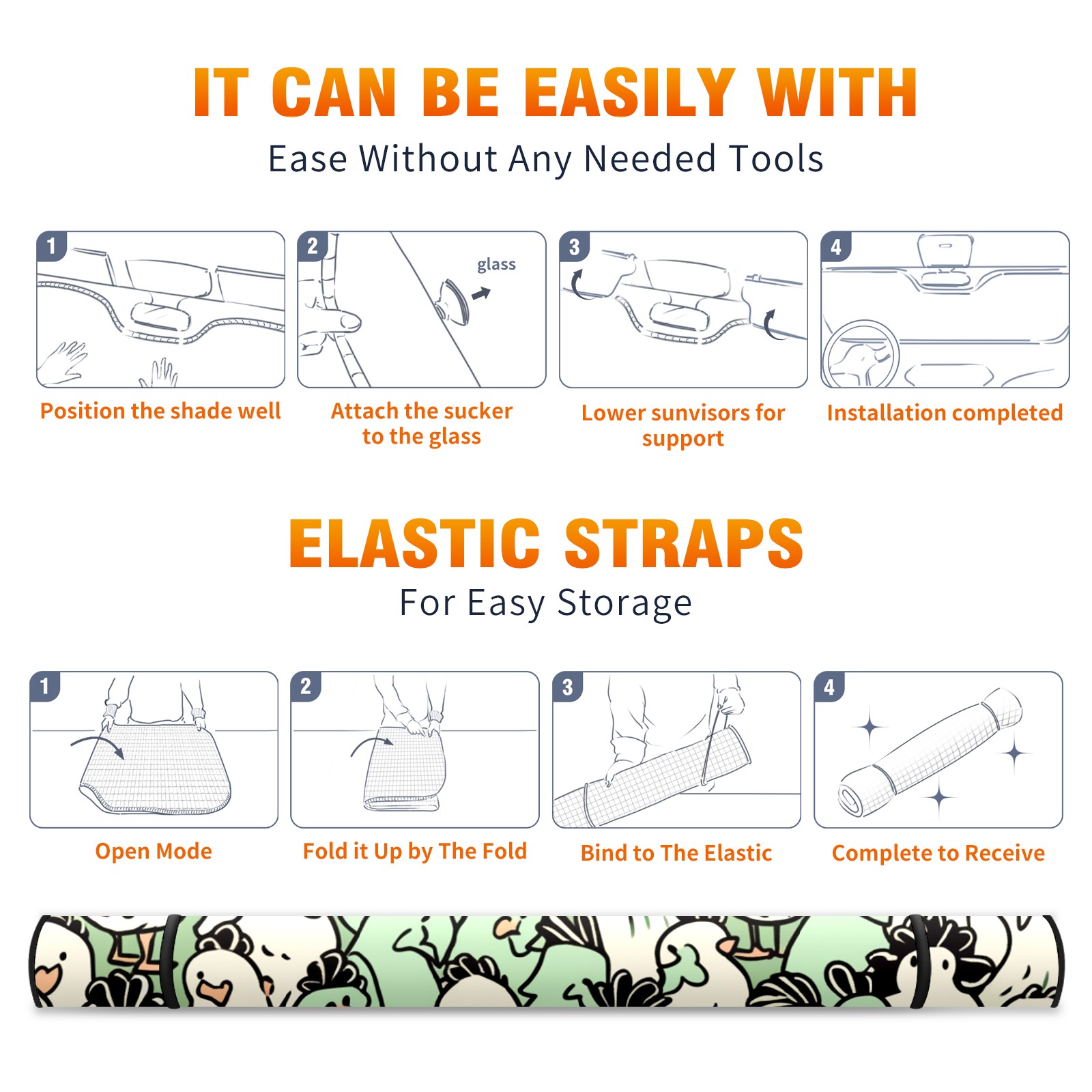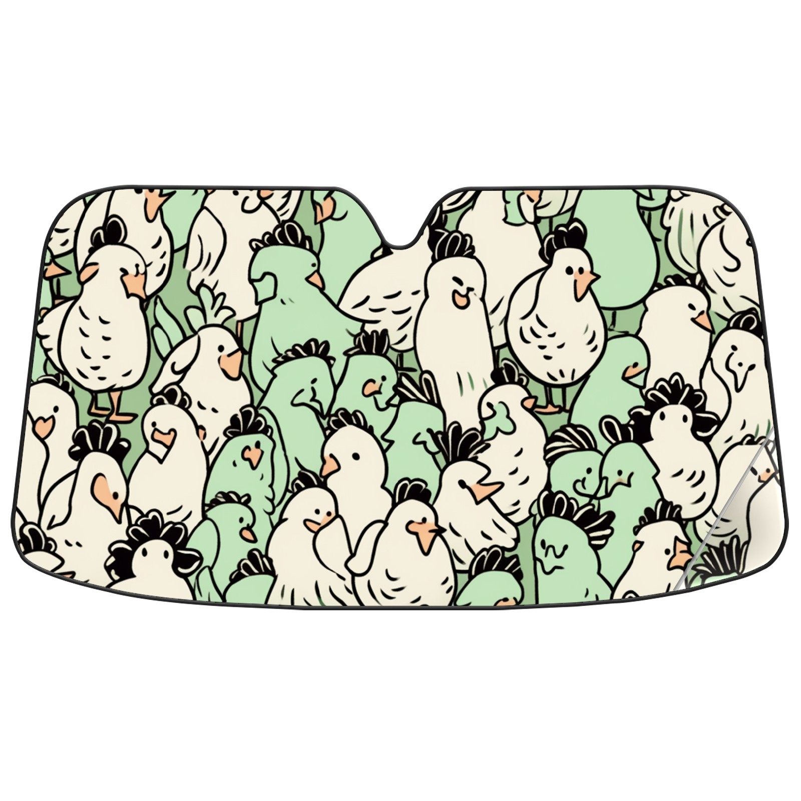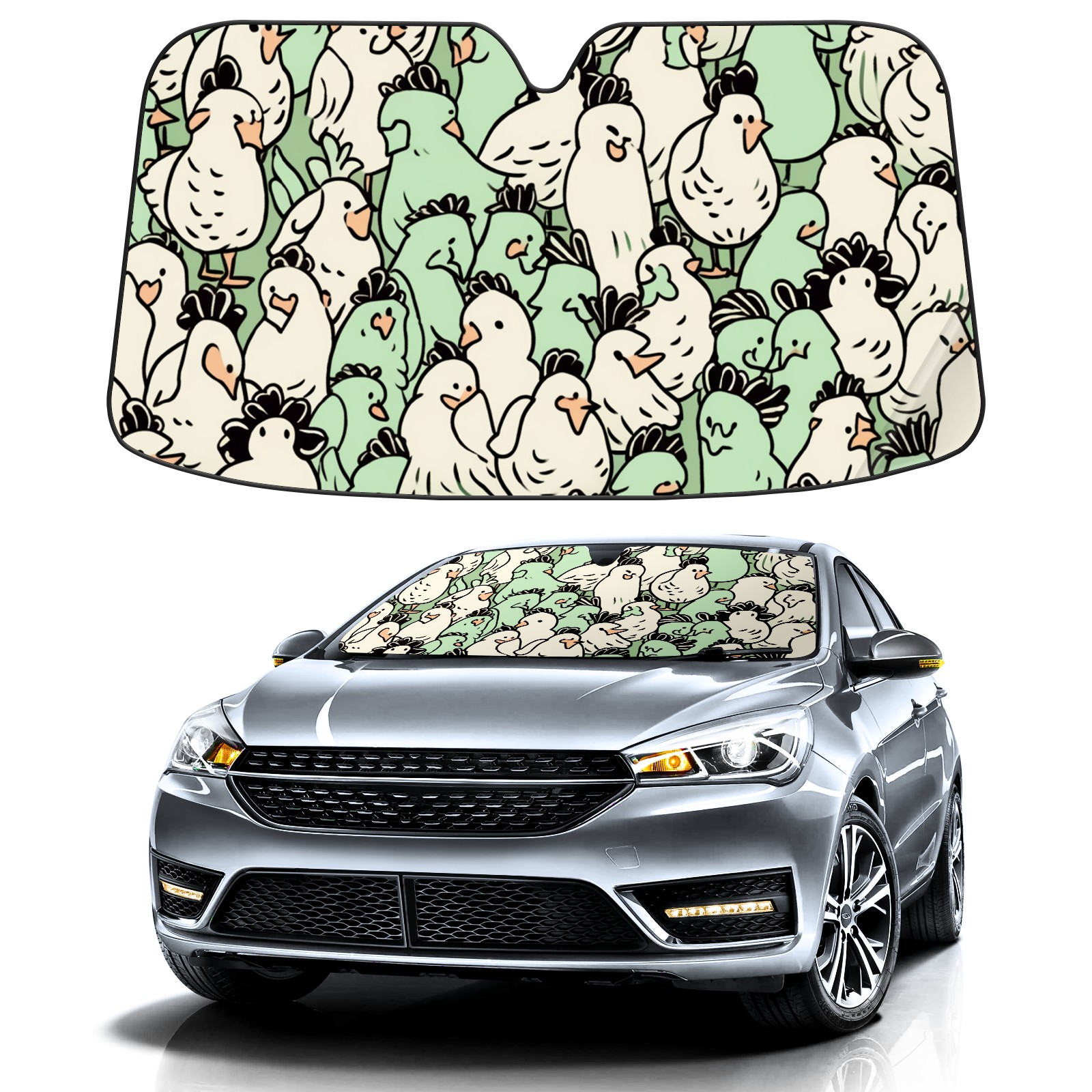 Car Windshield Sun Shade For Front Window Hand Drawnchickens (2) Foldable Vehicle Windshield Car Sun Visor Covers Automotive Window Protector Car Camping Privacy Sun Blocker
