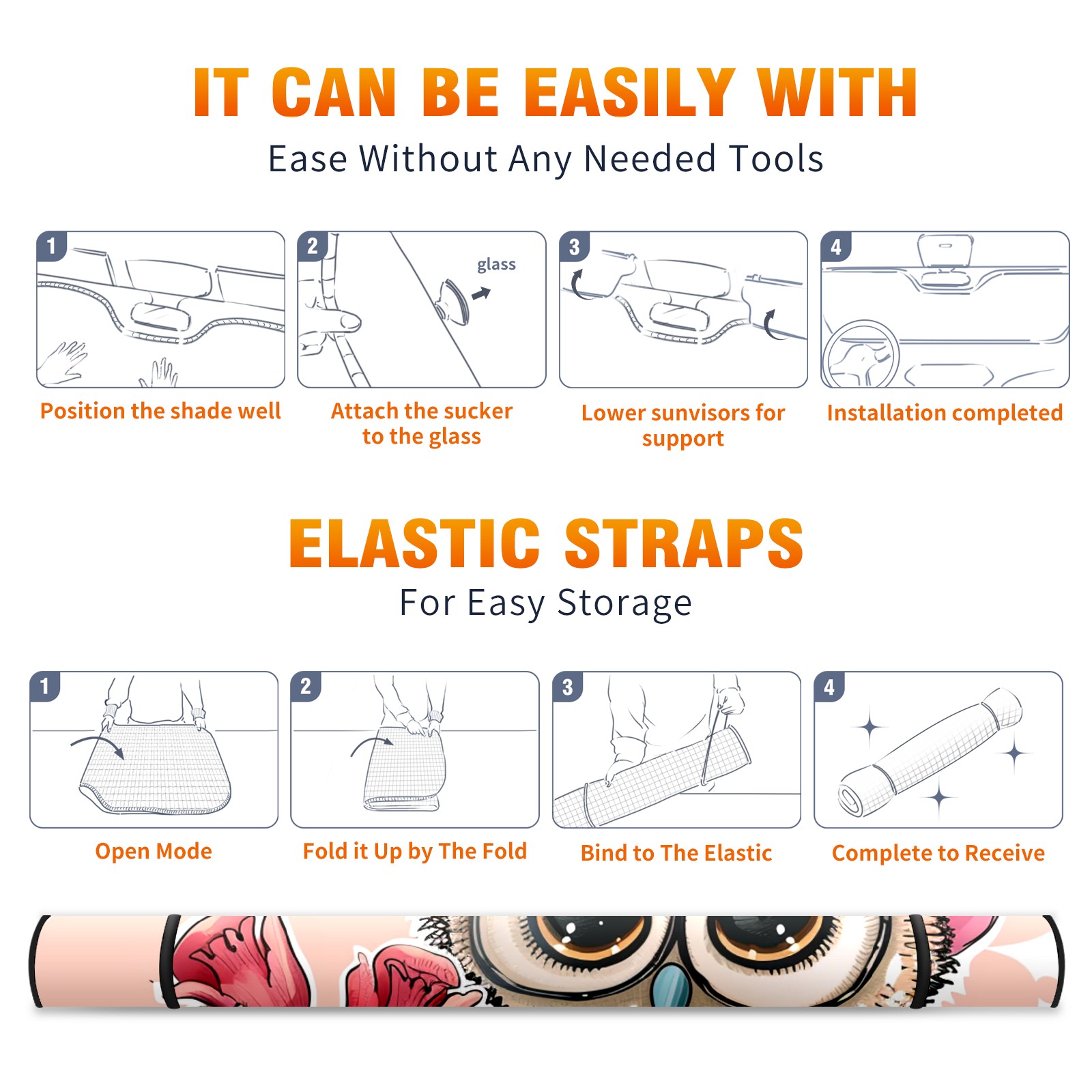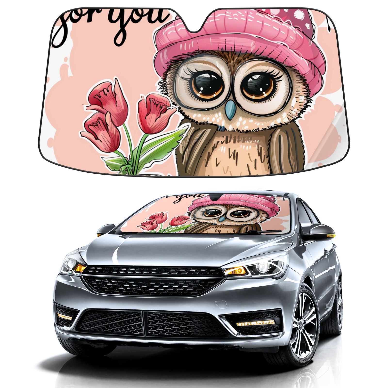 Car Windshield Sun Shade For Front Window Cute Cartoon Owl (4) Foldable Vehicle Windshield Car Sun Visor Covers Automotive Window Protector Car Camping Privacy Sun Blocker