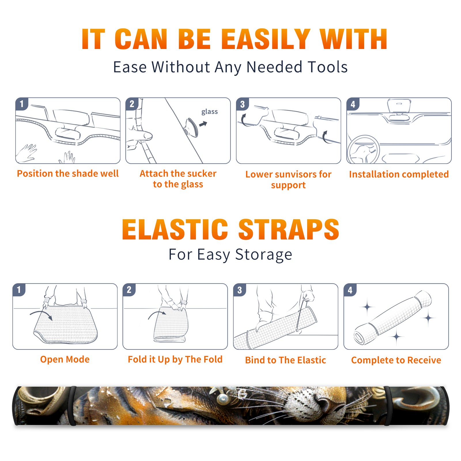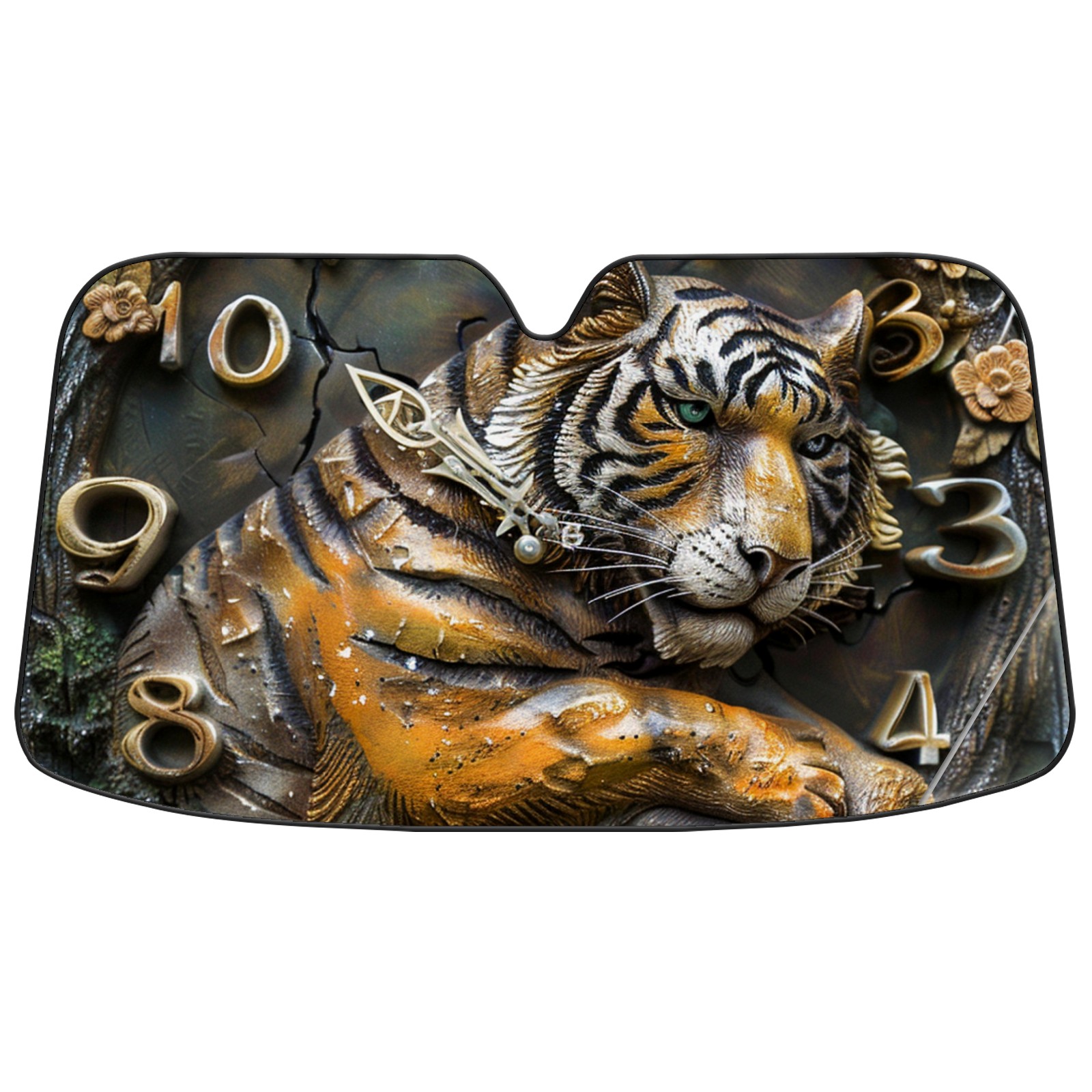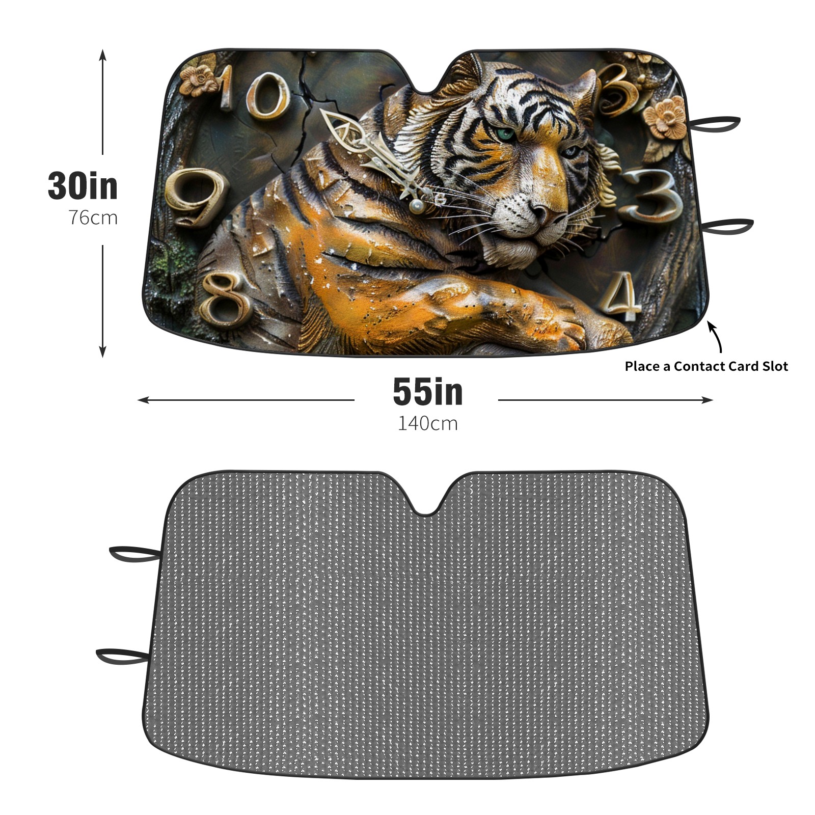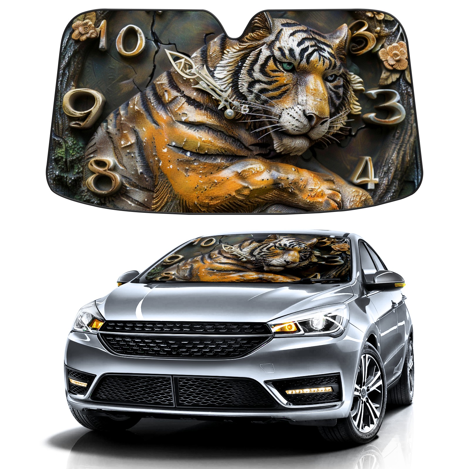 Car Windshield Sun Shade For Front Window Clock With Tiger (1) Foldable Vehicle Windshield Car Sun Visor Covers Automotive Window Protector Car Camping Privacy Sun Blocker