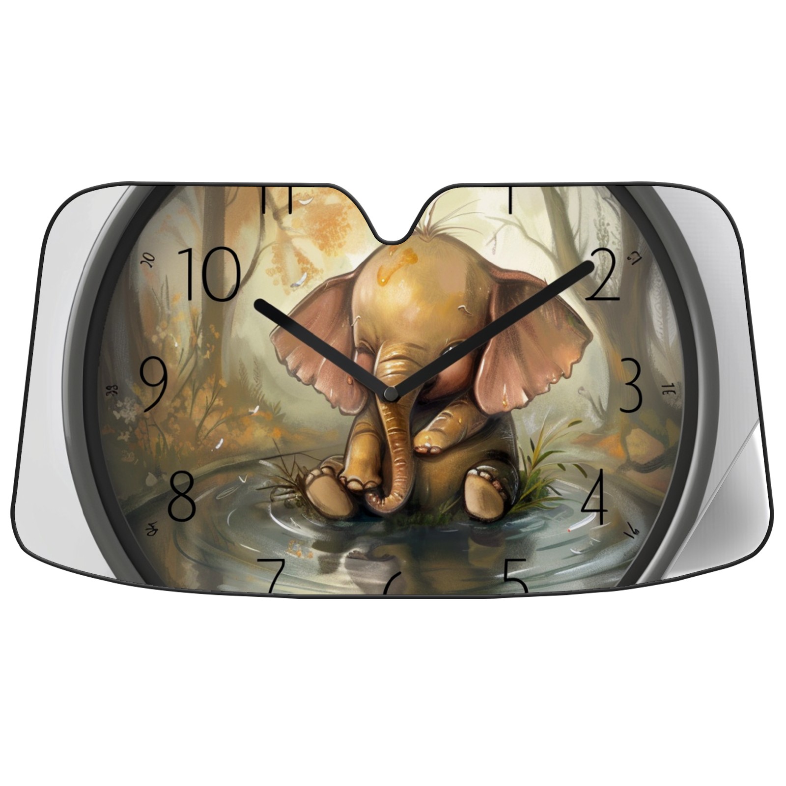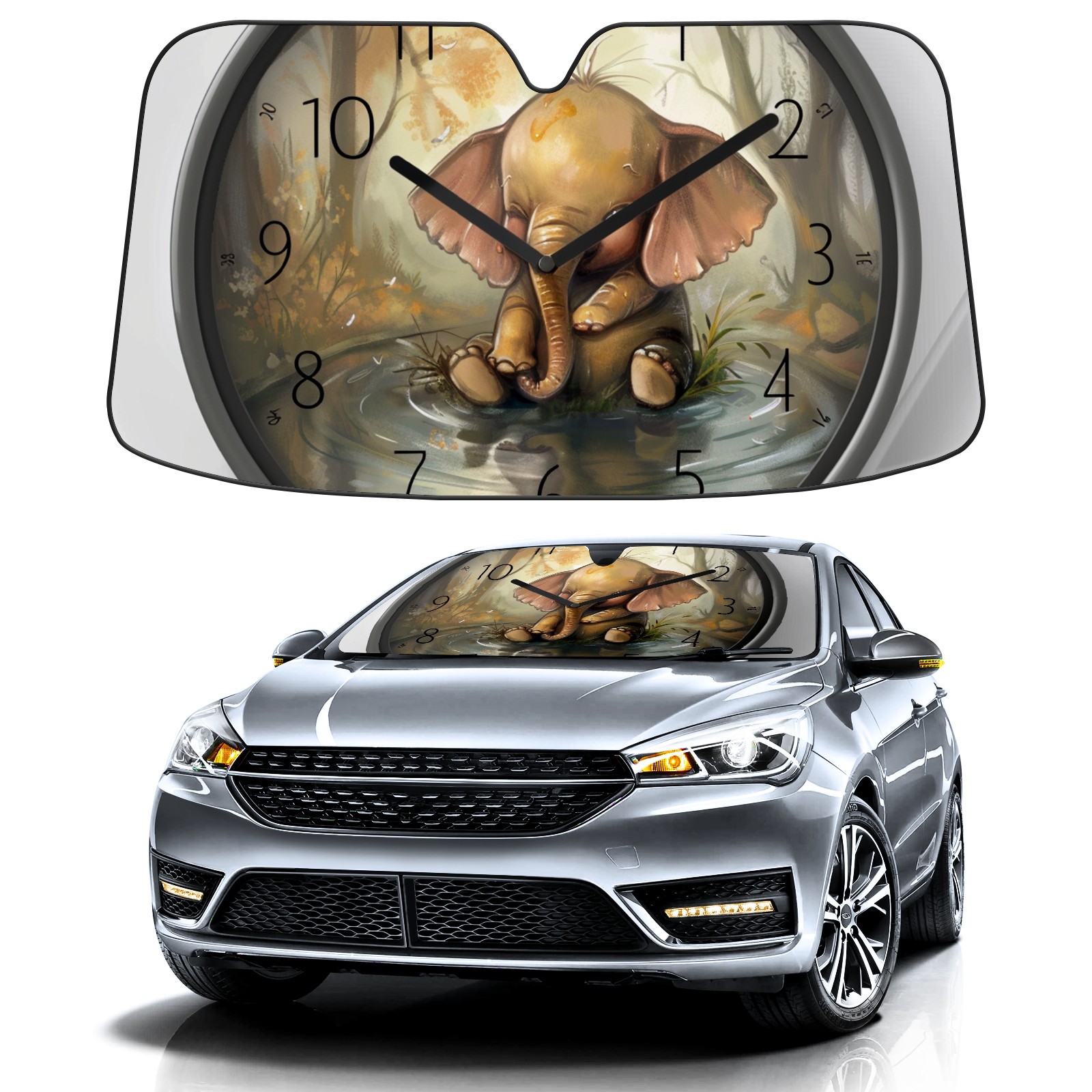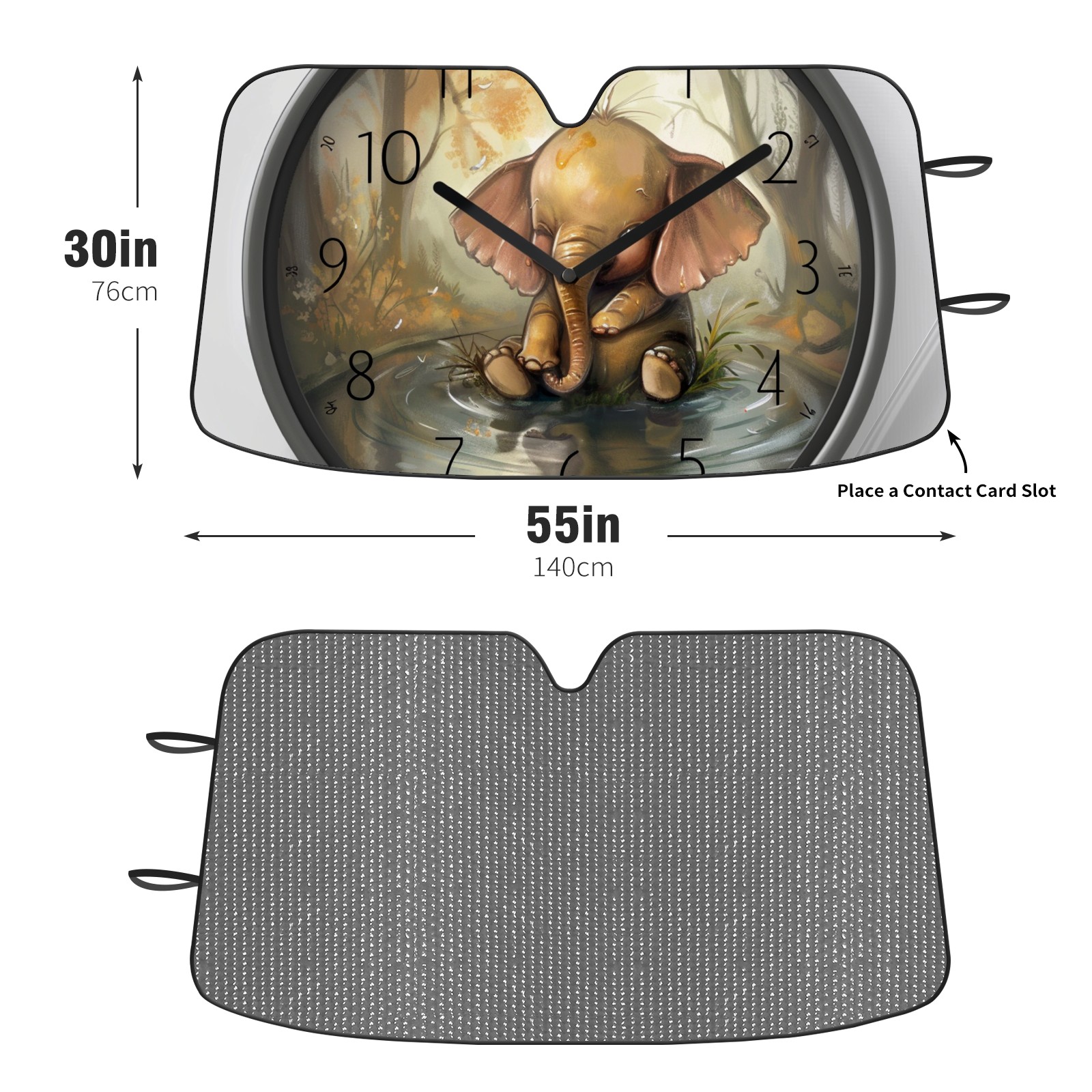 Car Windshield Sun Shade For Front Window Clock With Elephant (1) Foldable Vehicle Windshield Car Sun Visor Covers Automotive Window Protector Car Camping Privacy Sun Blocker