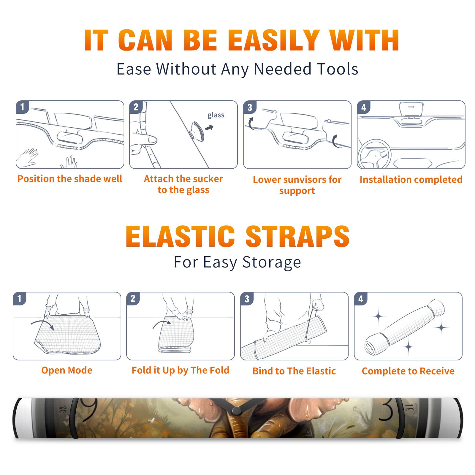 • Diameter /Size 63"L x 33.5"W Made from excellent materials which makes it sturdy and protects the car from the sun. Easy to use and pack. Makes the interior of the car cooler.You can easily stash the sunshade in the storage bag or store long term.It open and closes easy. Also the leather storage bag is durable and easy to put the umbrella back into.This windshield sunshade provides complete coverage and keeps your car interior cool under direct sun. It is easy to open and position under the windshield and around the rear-view mirror. Makes Your Car Easy To Identify, Perfect For Finding Your Car In Crowded Parking Lots And Garages.Great Choice: It Is A Great Gift For Dad, Boyfriend, Brother, Brother And Uncle, Friends, Classmates, Family And So On. Notice: Due To Difference Computer Monitors, The Color Maybe Slightly Different From Picture. As Different Measurement Methods, Measurement Data Will Float Within 2%.I Hope You Understand. If You Have Any Question About The Item Please Do Not Hesitate To Contact Us Immediately And We Will Give You A Satisfactory Reply Within 24 Hours.