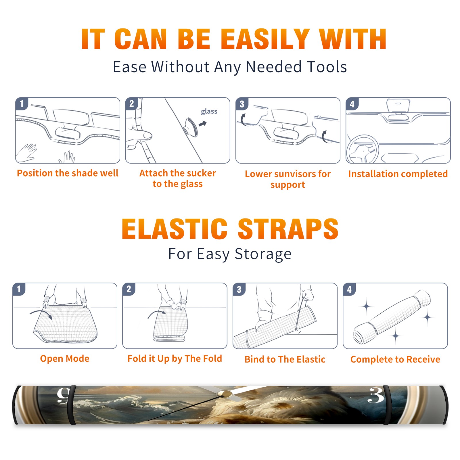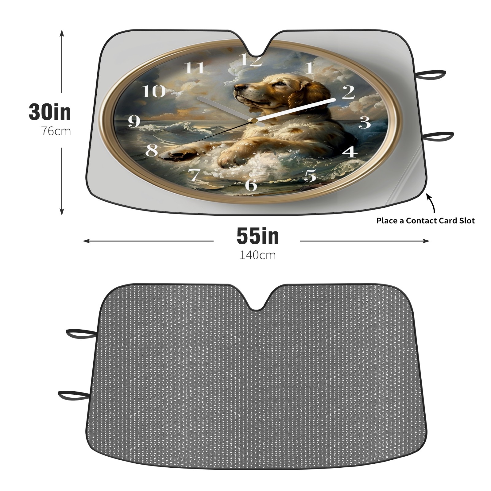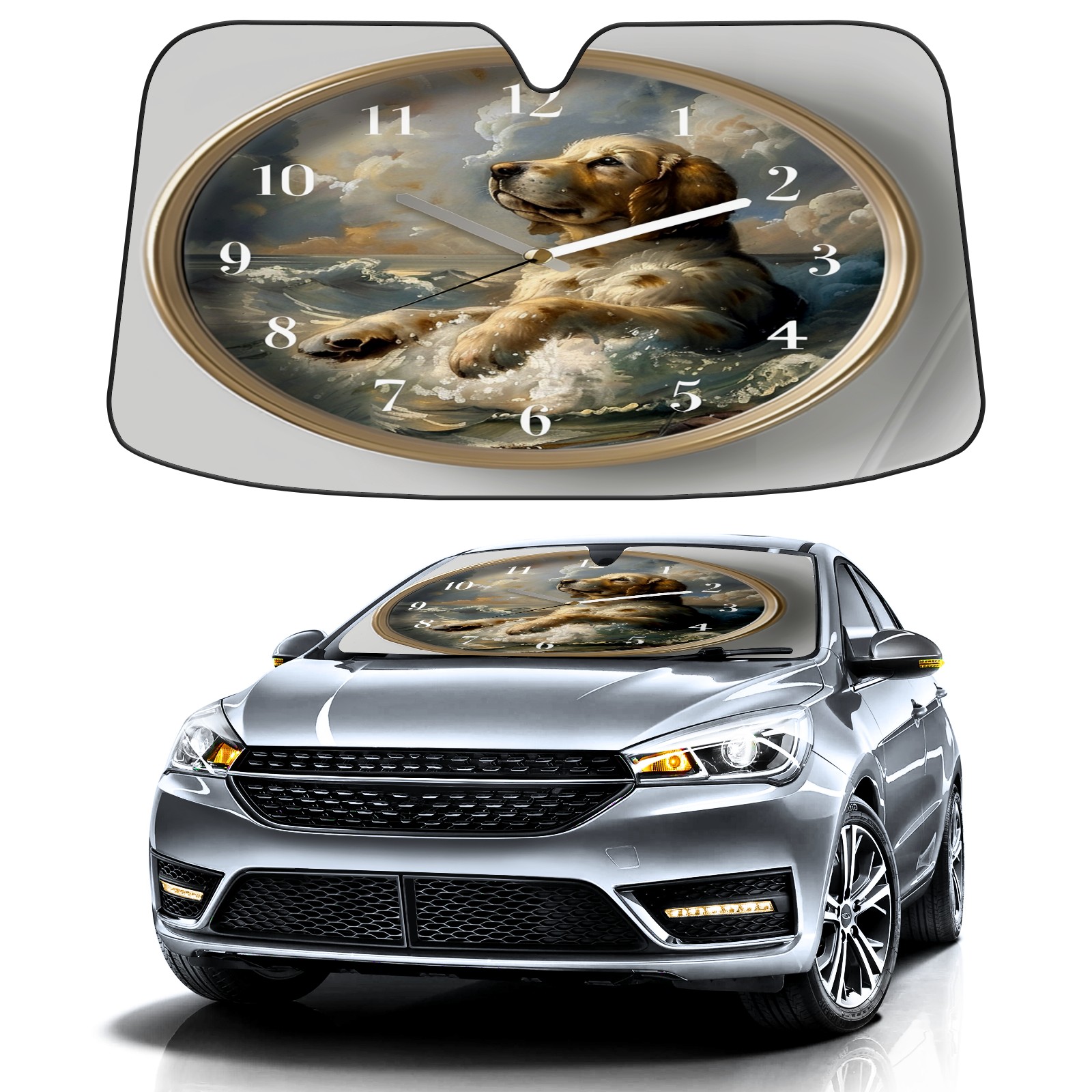 Car Windshield Sun Shade For Front Window Clock With Dog (2) Foldable Vehicle Windshield Car Sun Visor Covers Automotive Window Protector Car Camping Privacy Sun Blocker