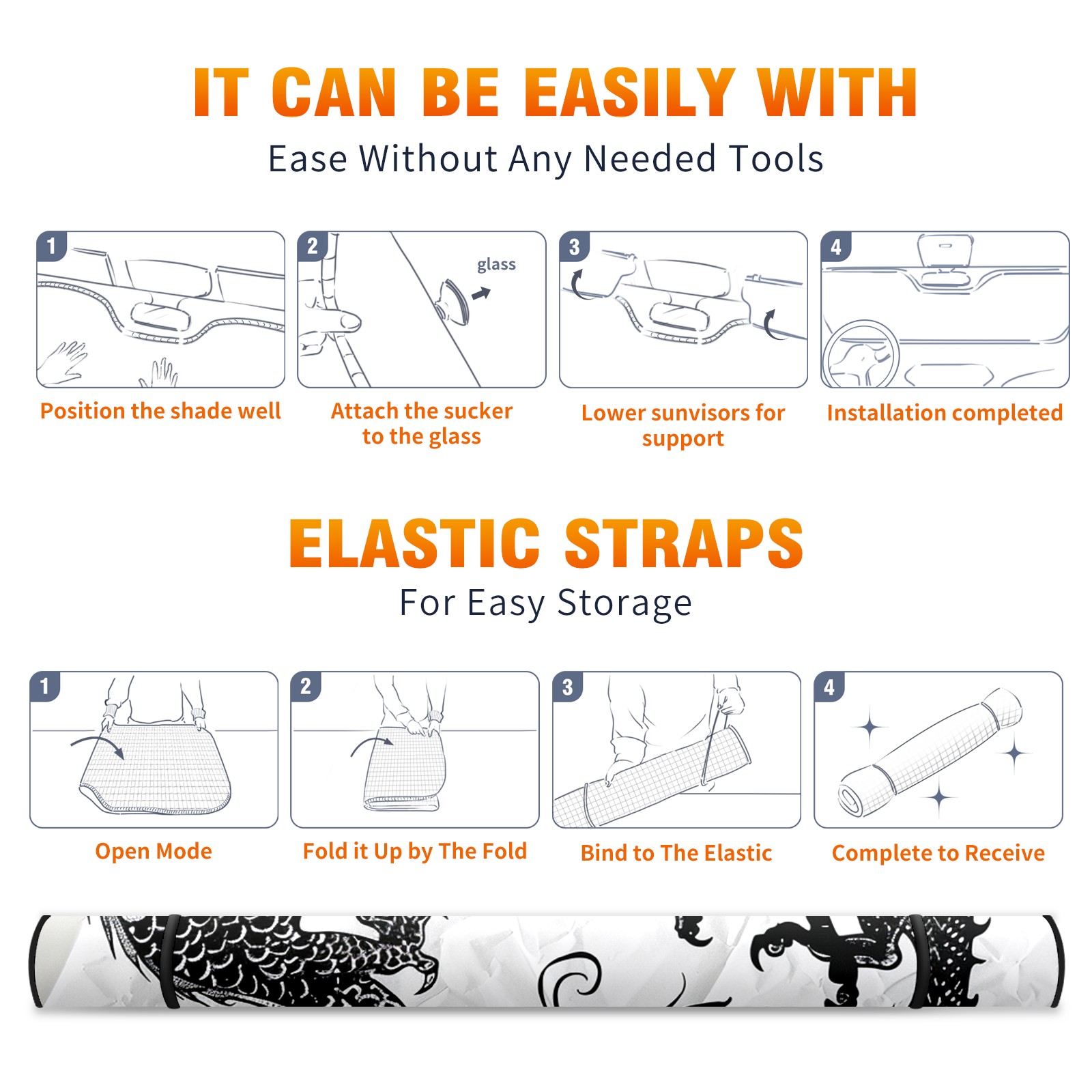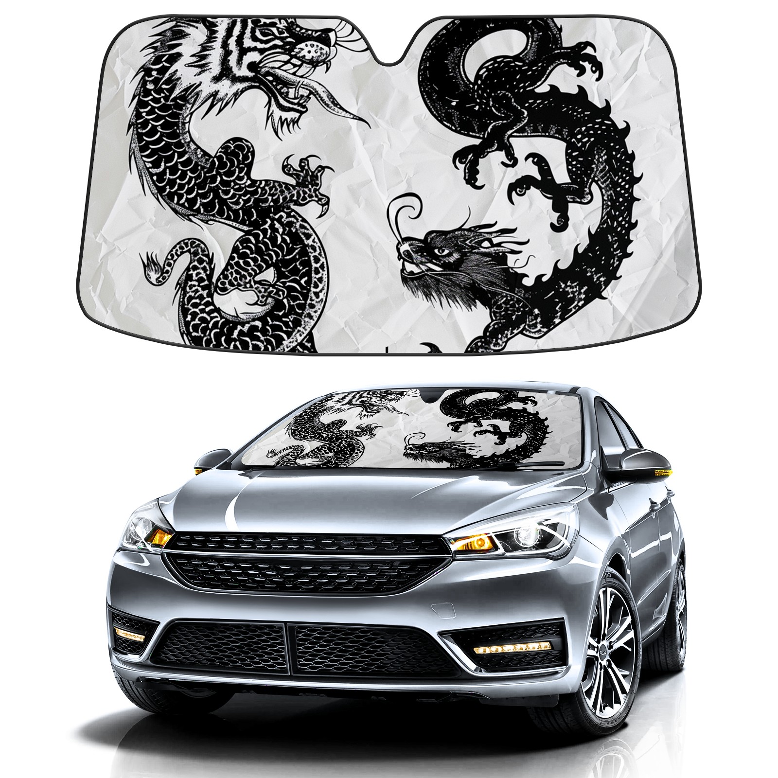 Car Windshield Sun Shade For Front Window Chinese Dragon (8) Foldable Vehicle Windshield Car Sun Visor Covers Automotive Window Protector Car Camping Privacy Sun Blocker