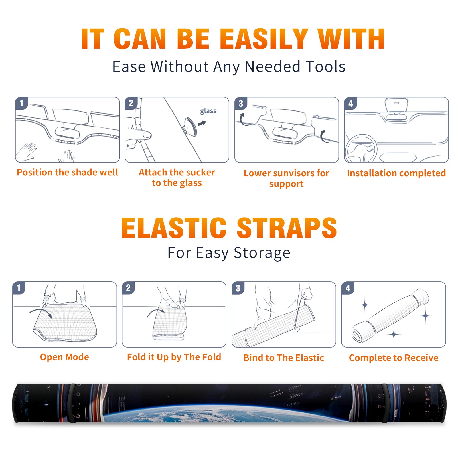 • Diameter /Size 63"L x 33.5"W Made from excellent materials which makes it sturdy and protects the car from the sun. Easy to use and pack. Makes the interior of the car cooler.You can easily stash the sunshade in the storage bag or store long term.It open and closes easy. Also the leather storage bag is durable and easy to put the umbrella back into.This windshield sunshade provides complete coverage and keeps your car interior cool under direct sun. It is easy to open and position under the windshield and around the rear-view mirror. Makes Your Car Easy To Identify, Perfect For Finding Your Car In Crowded Parking Lots And Garages.Great Choice: It Is A Great Gift For Dad, Boyfriend, Brother, Brother And Uncle, Friends, Classmates, Family And So On. Notice: Due To Difference Computer Monitors, The Color Maybe Slightly Different From Picture. As Different Measurement Methods, Measurement Data Will Float Within 2%.I Hope You Understand. If You Have Any Question About The Item Please Do Not Hesitate To Contact Us Immediately And We Will Give You A Satisfactory Reply Within 24 Hours.