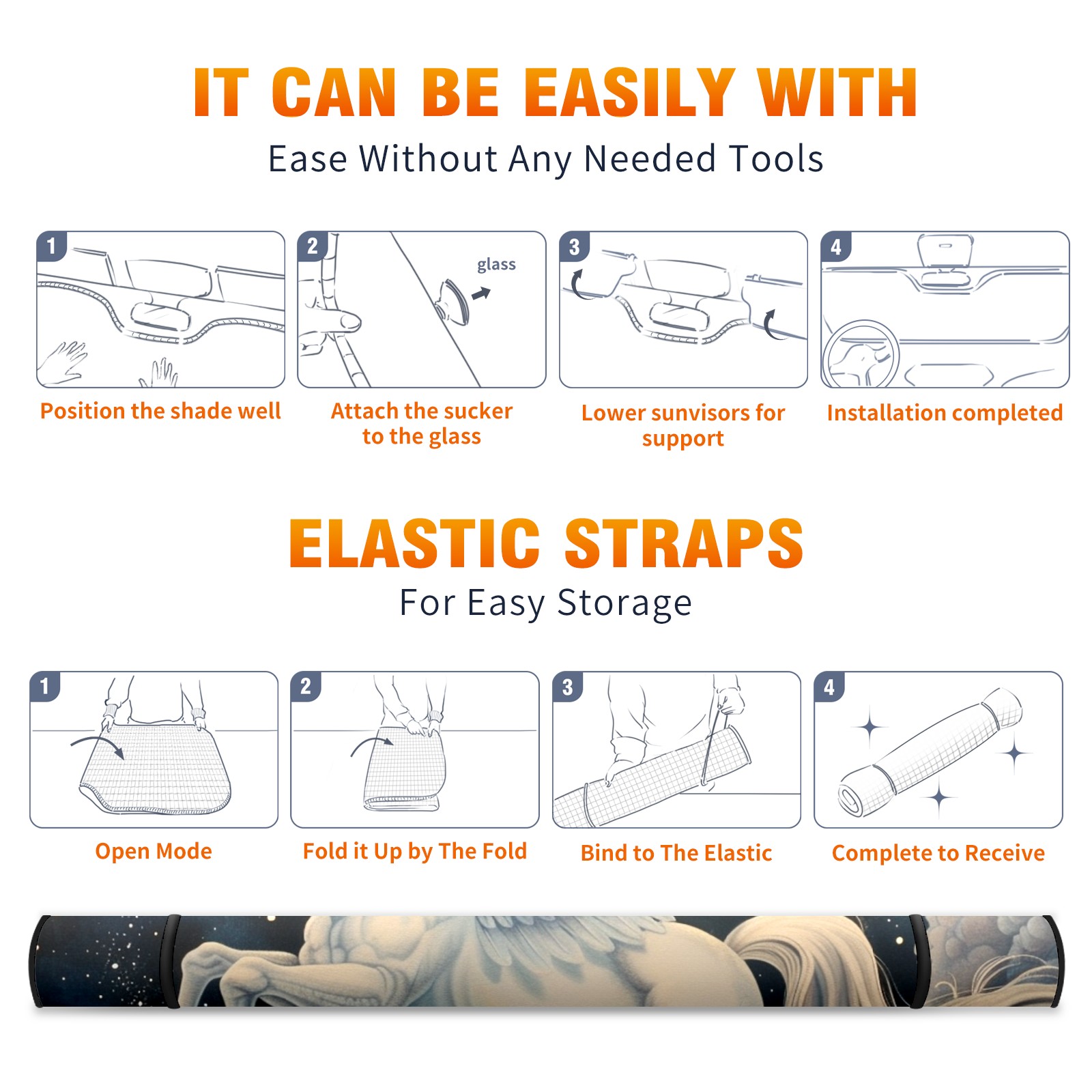 Car Windshield Sun Shade For Front Window Horse (2) Foldable Vehicle Windshield Car Sun Visor Covers Automotive Window Protector Car Camping Privacy Sun Blocker