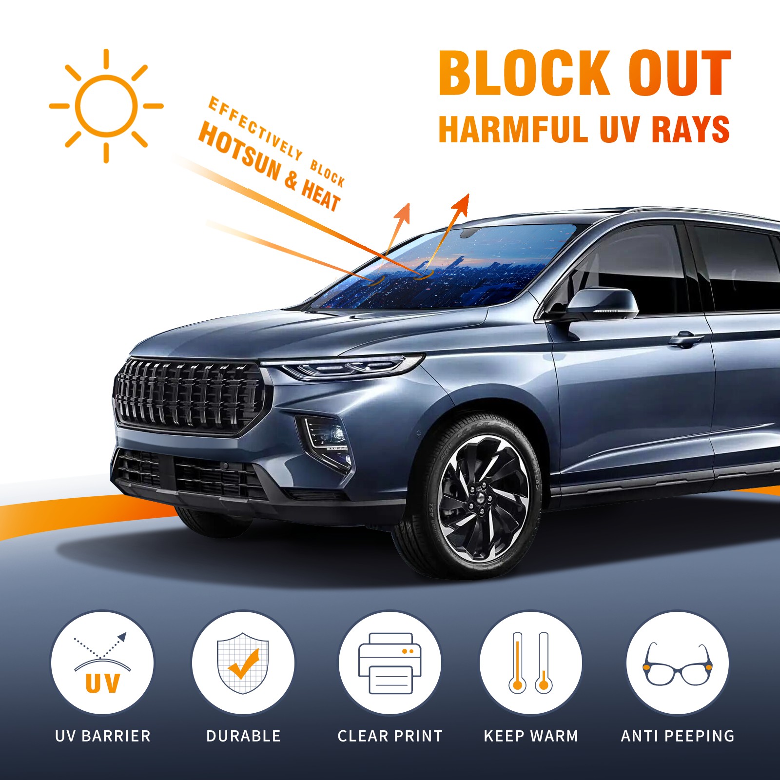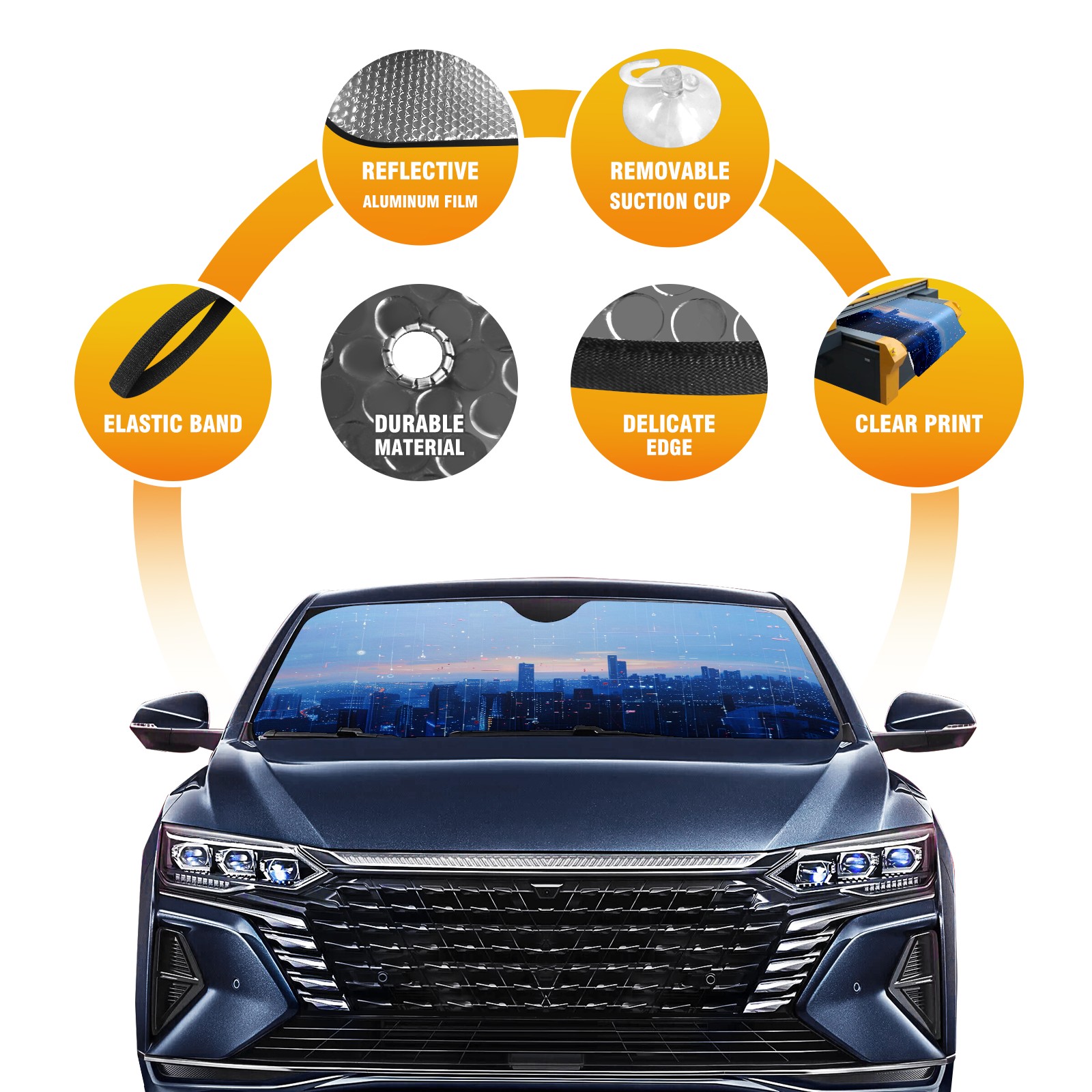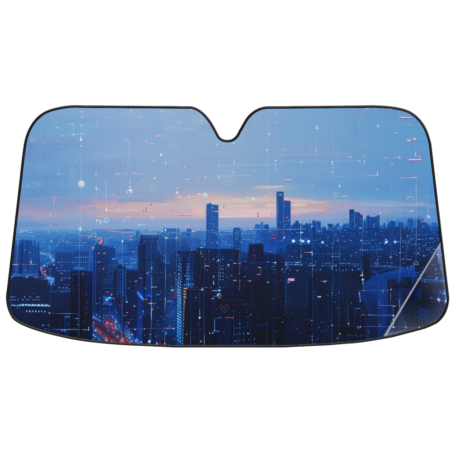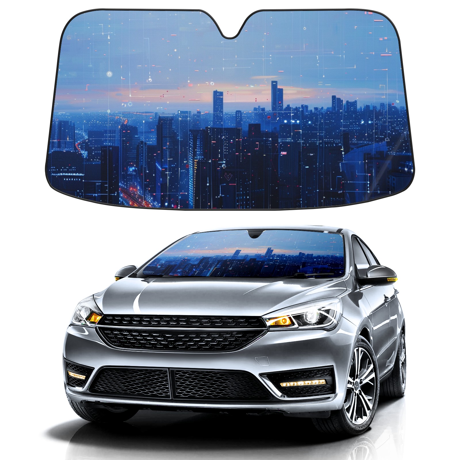 Car Windshield Sun Shade For Front Window Digital Cityscape (1) Foldable Vehicle Windshield Car Sun Visor Covers Automotive Window Protector Car Camping Privacy Sun Blocker