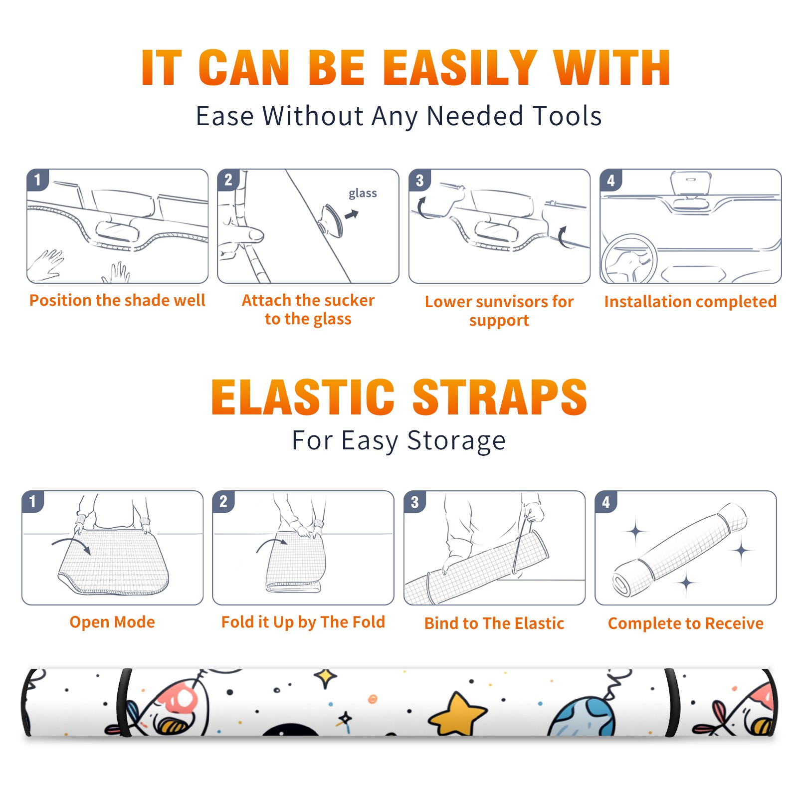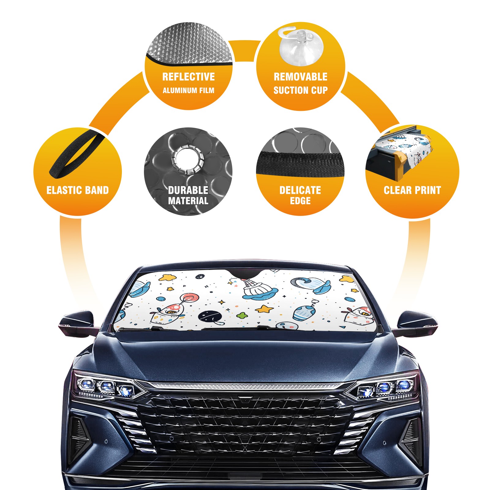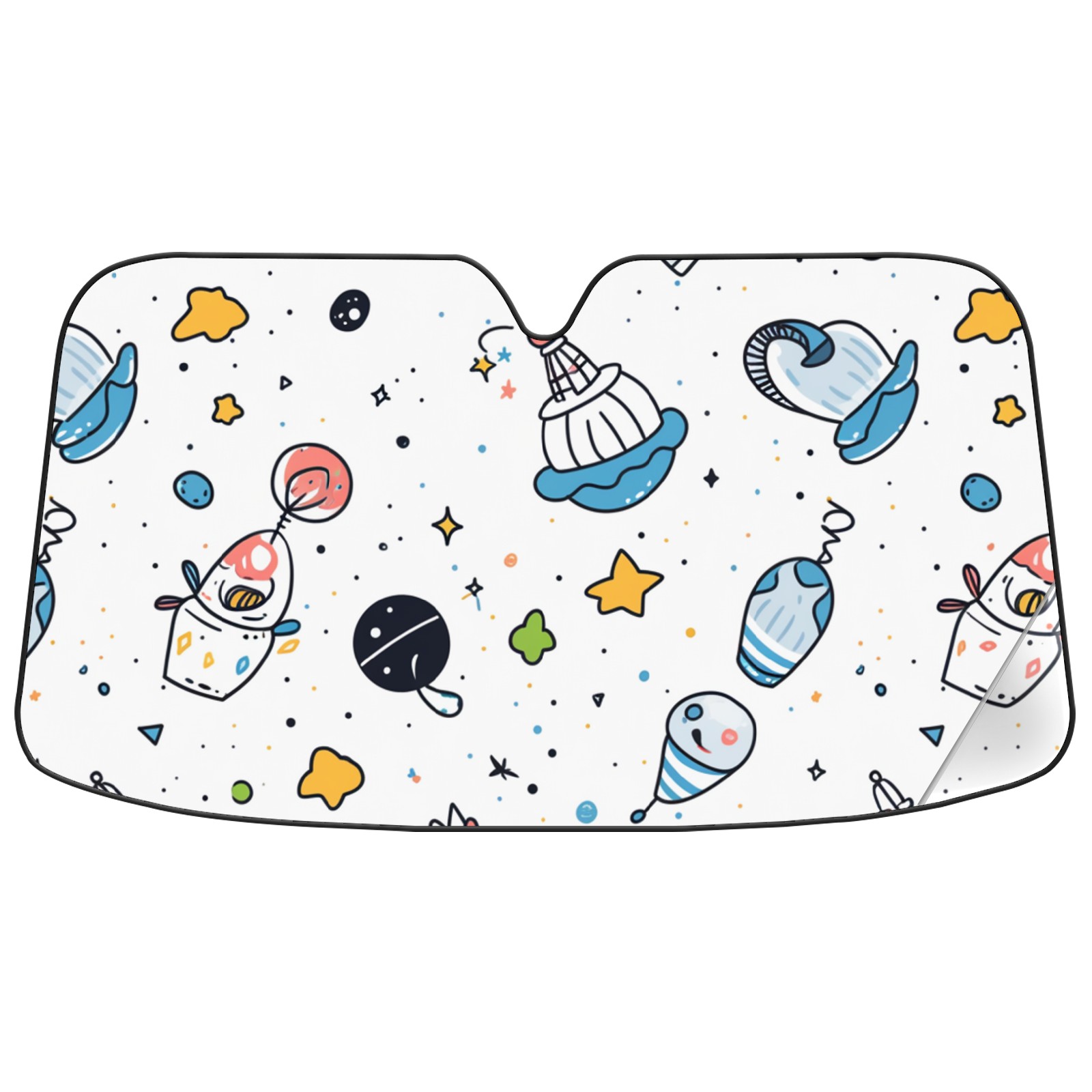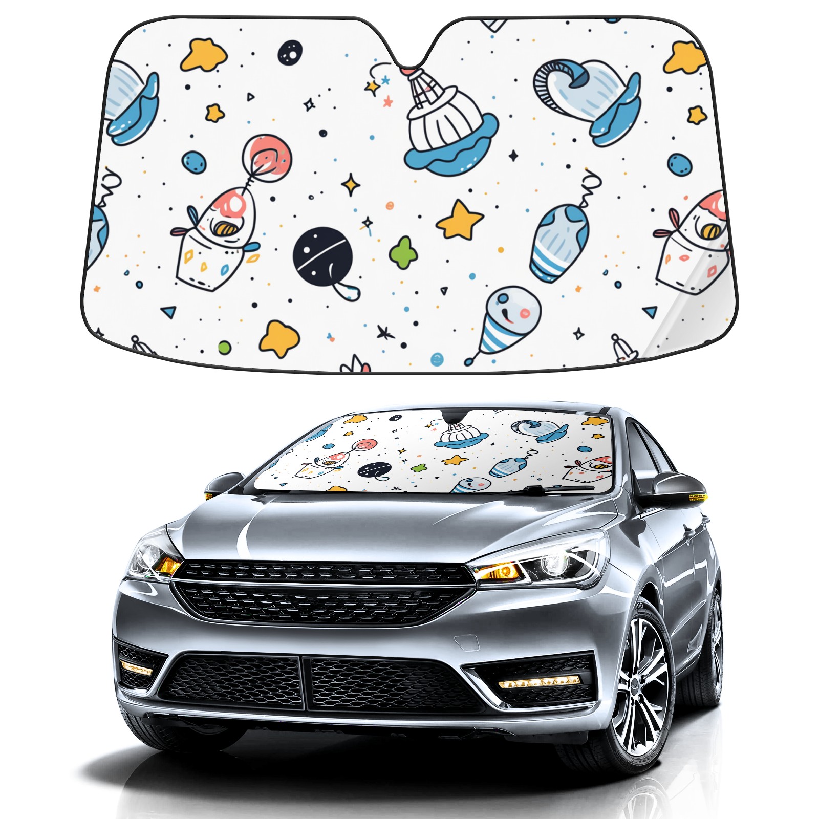 Car Windshield Sun Shade For Front Window Cute Space Doodles Rocket (1) Foldable Vehicle Windshield Car Sun Visor Covers Automotive Window Protector Car Camping Privacy Sun Blocker