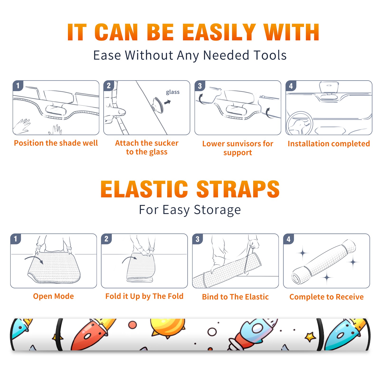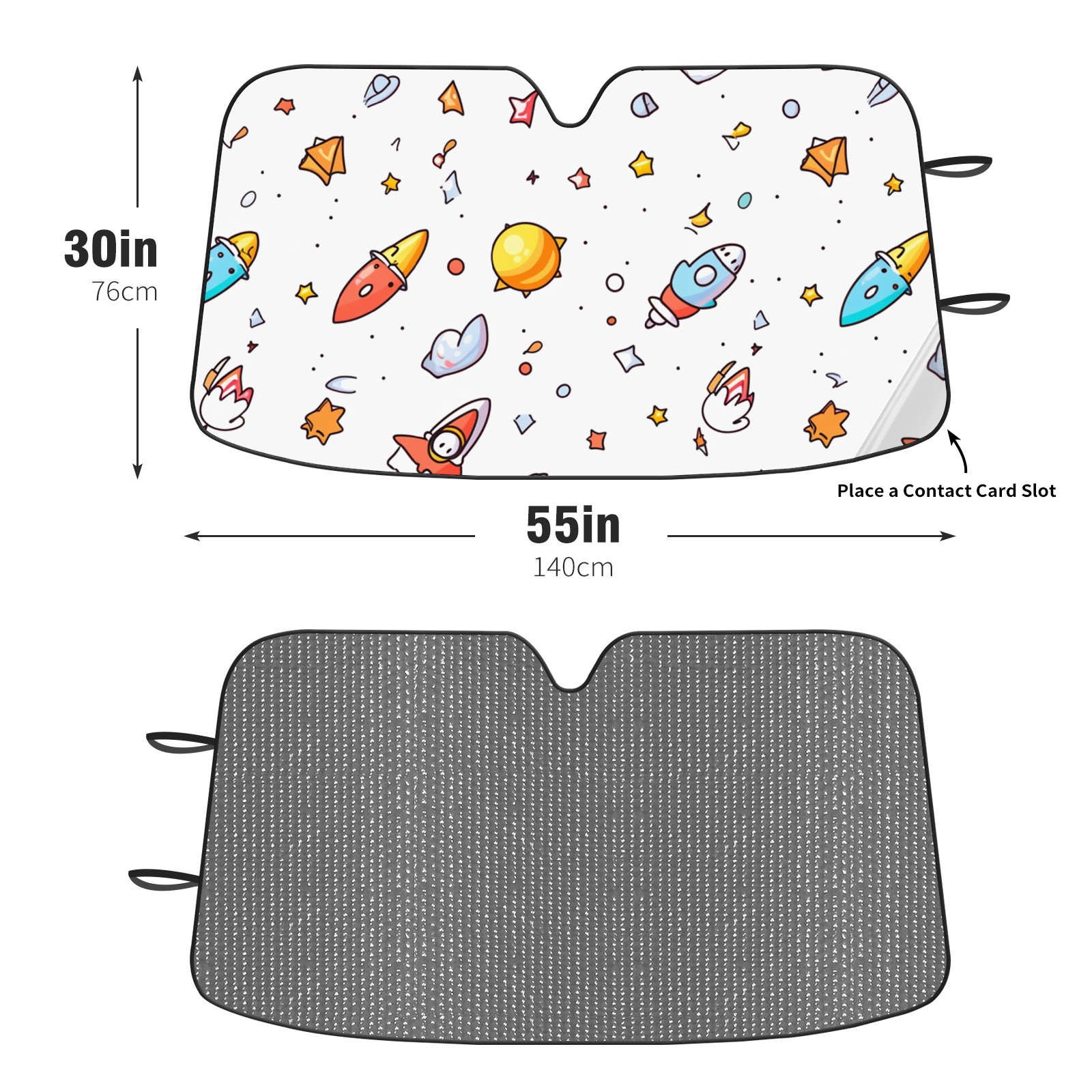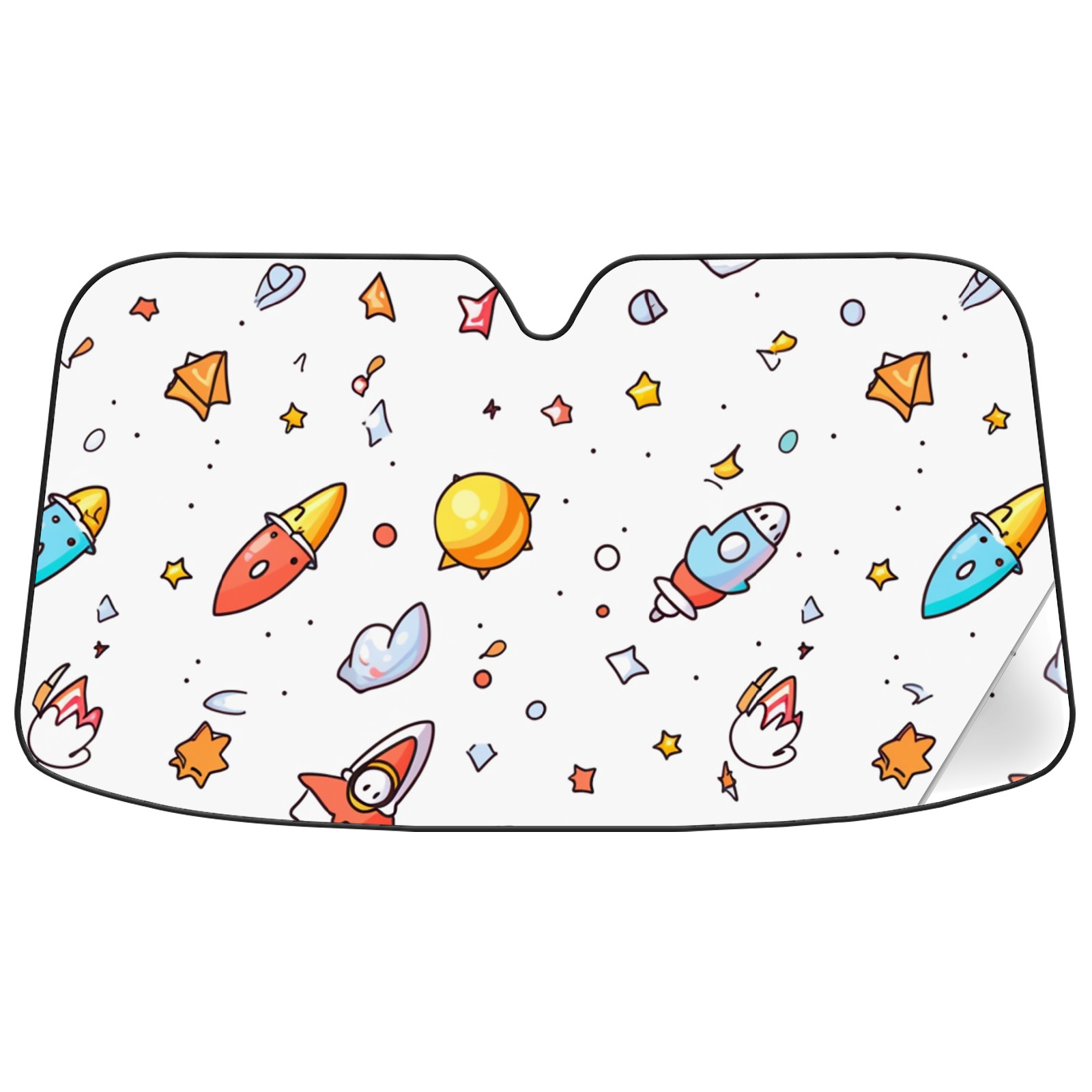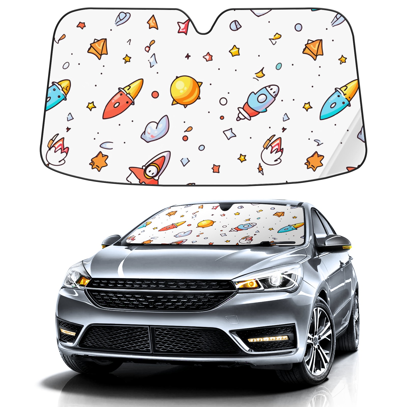 Car Windshield Sun Shade For Front Window Cute Space Doodles Rocket (2) Foldable Vehicle Windshield Car Sun Visor Covers Automotive Window Protector Car Camping Privacy Sun Blocker