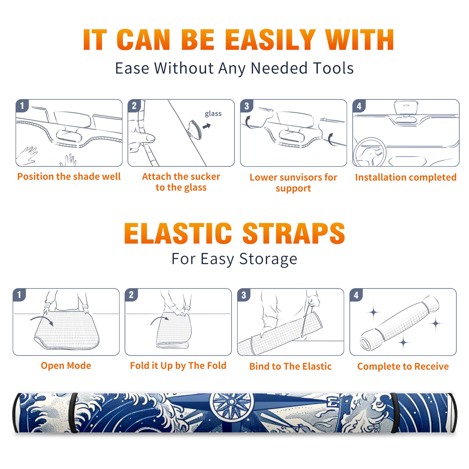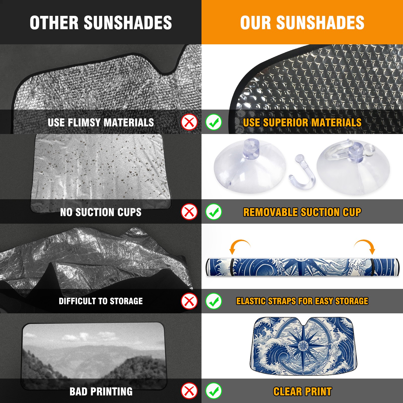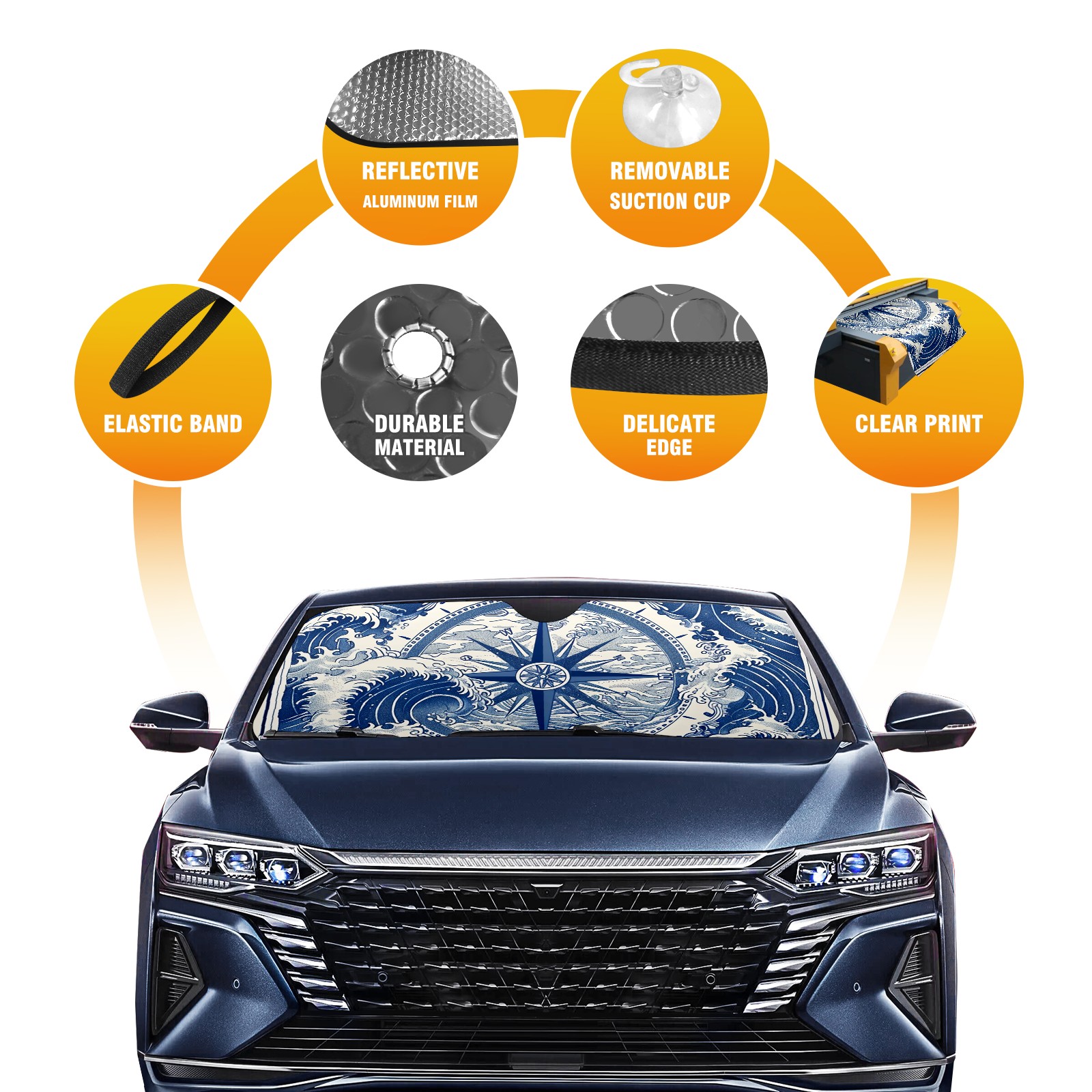Car Windshield Sun Shade For Front Window Compass (17) Foldable Vehicle Windshield Car Sun Visor Covers Automotive Window Protector Car Camping Privacy Sun Blocker