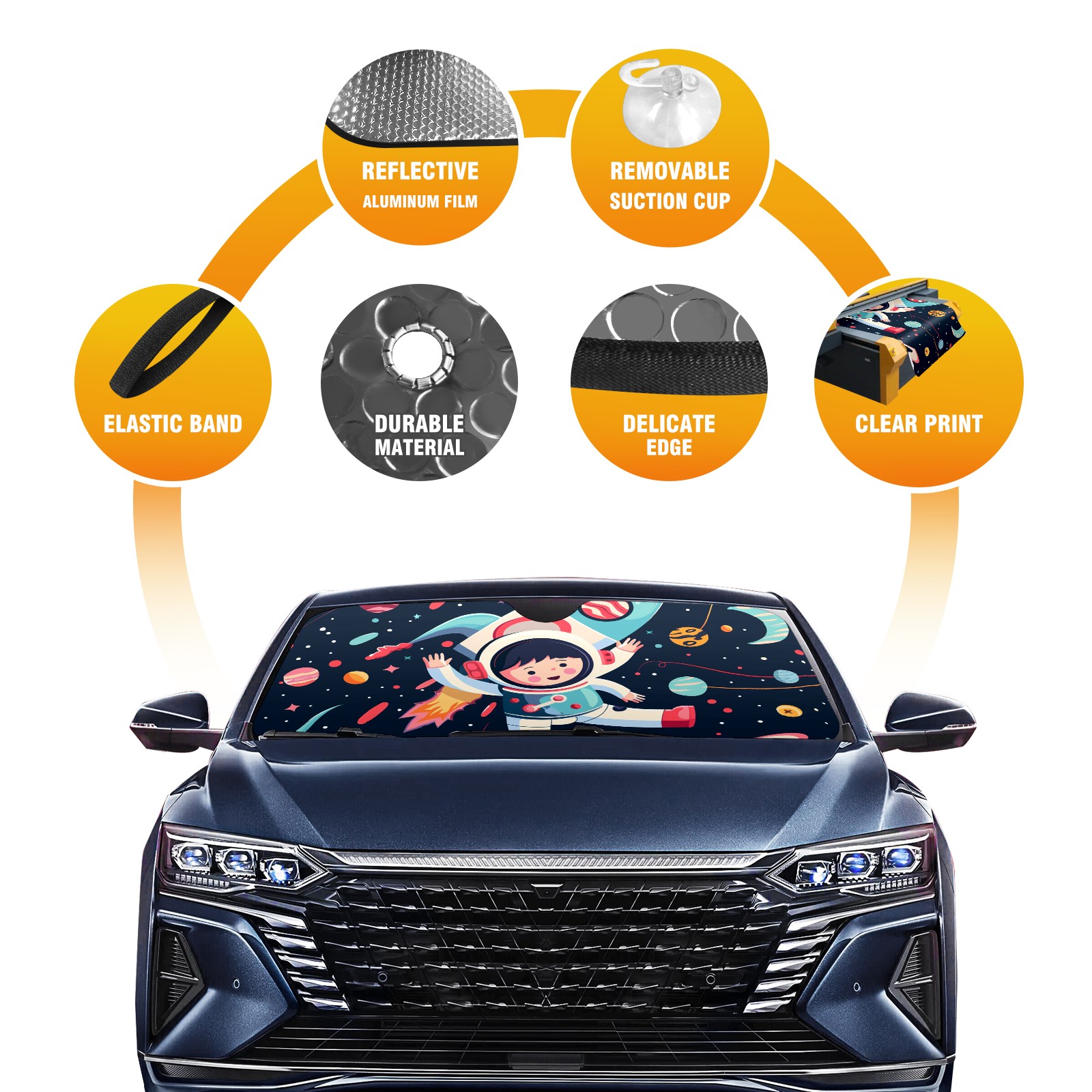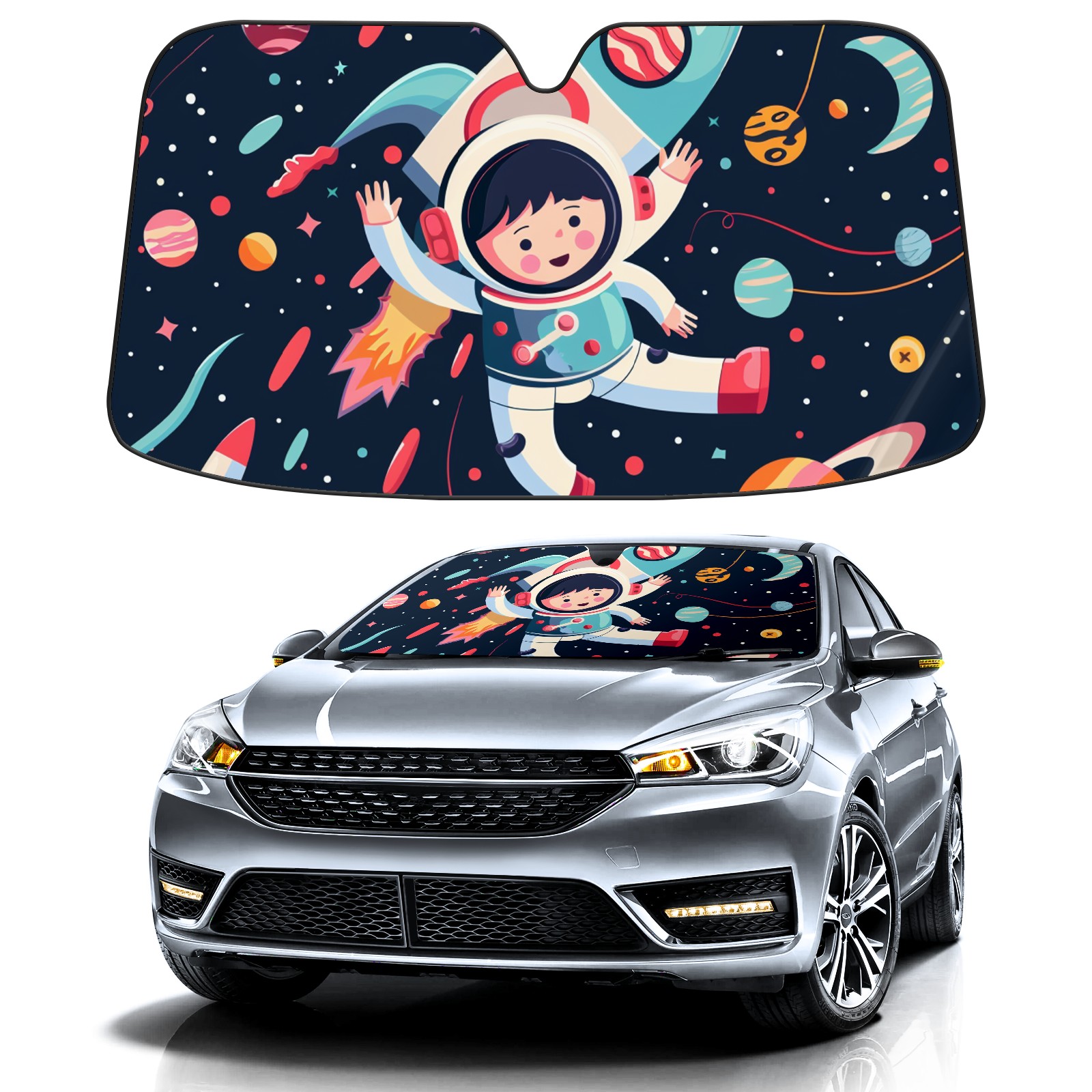 • Diameter /Size 63"L x 33.5"W Made from excellent materials which makes it sturdy and protects the car from the sun. Easy to use and pack. Makes the interior of the car cooler.You can easily stash the sunshade in the storage bag or store long term.It open and closes easy. Also the leather storage bag is durable and easy to put the umbrella back into.This windshield sunshade provides complete coverage and keeps your car interior cool under direct sun. It is easy to open and position under the windshield and around the rear-view mirror. Makes Your Car Easy To Identify, Perfect For Finding Your Car In Crowded Parking Lots And Garages.Great Choice: It Is A Great Gift For Dad, Boyfriend, Brother, Brother And Uncle, Friends, Classmates, Family And So On. Notice: Due To Difference Computer Monitors, The Color Maybe Slightly Different From Picture. As Different Measurement Methods, Measurement Data Will Float Within 2%.I Hope You Understand. If You Have Any Question About The Item Please Do Not Hesitate To Contact Us Immediately And We Will Give You A Satisfactory Reply Within 24 Hours.