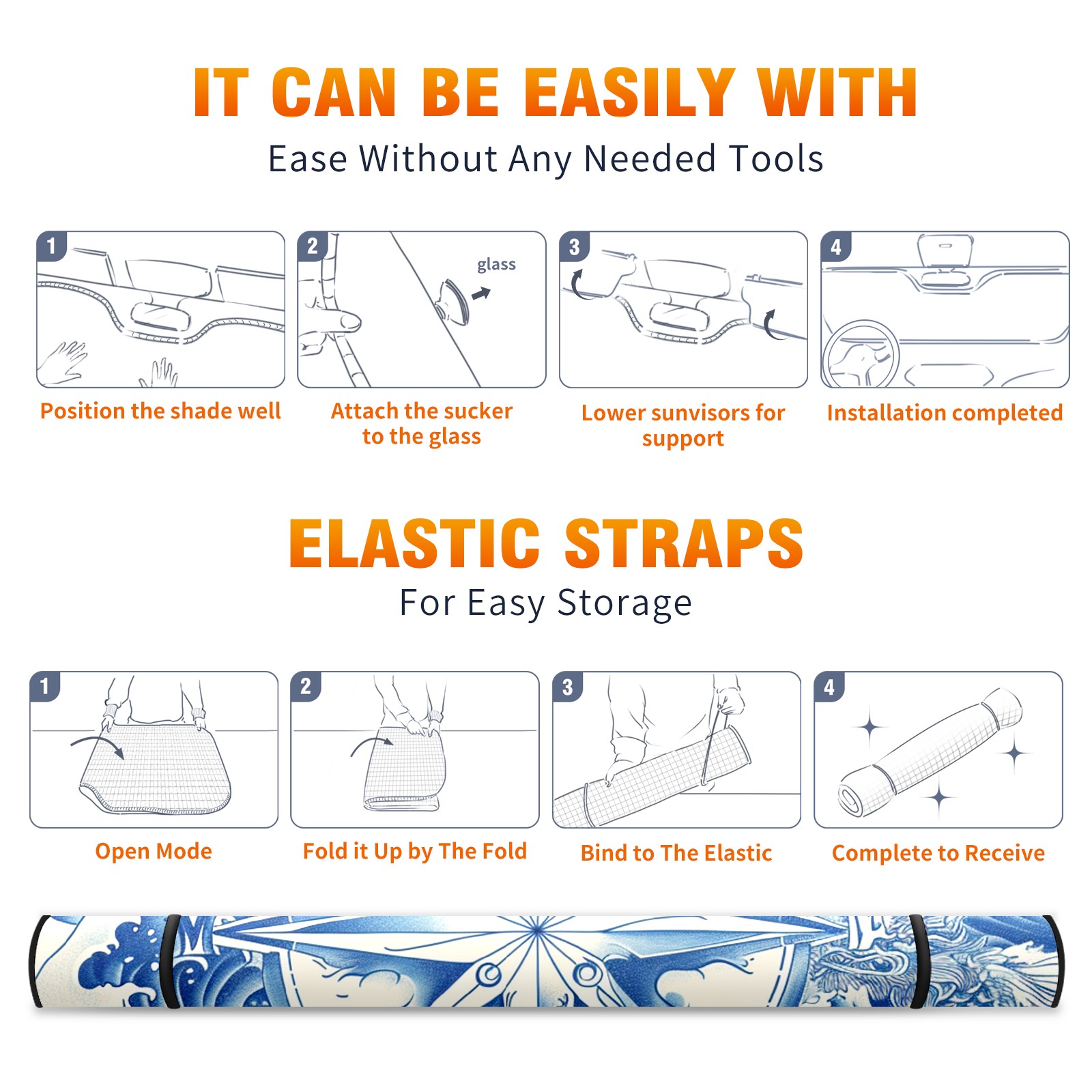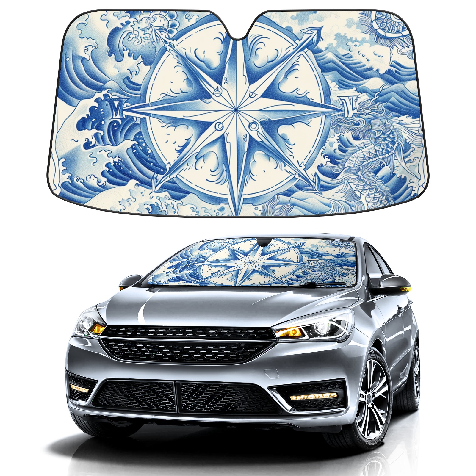 Car Windshield Sun Shade For Front Window Compass (16) Foldable Vehicle Windshield Car Sun Visor Covers Automotive Window Protector Car Camping Privacy Sun Blocker