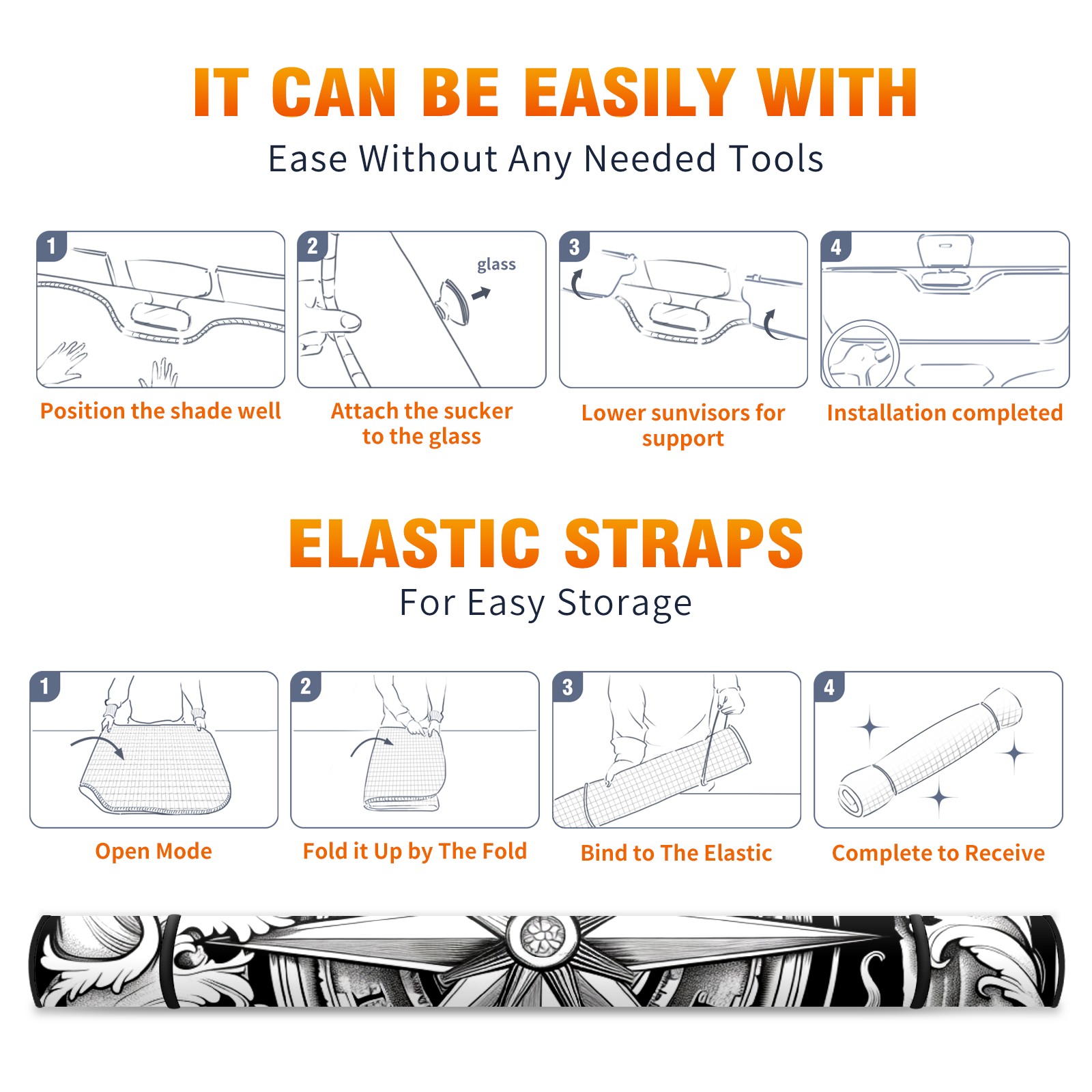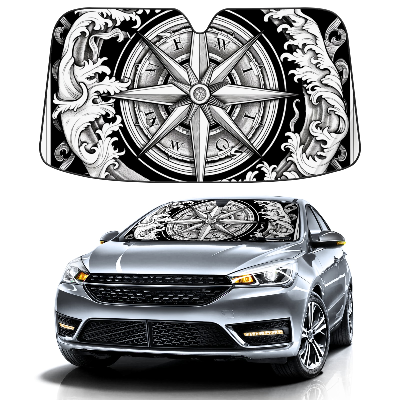 Car Windshield Sun Shade For Front Window Compass (9) Foldable Vehicle Windshield Car Sun Visor Covers Automotive Window Protector Car Camping Privacy Sun Blocker