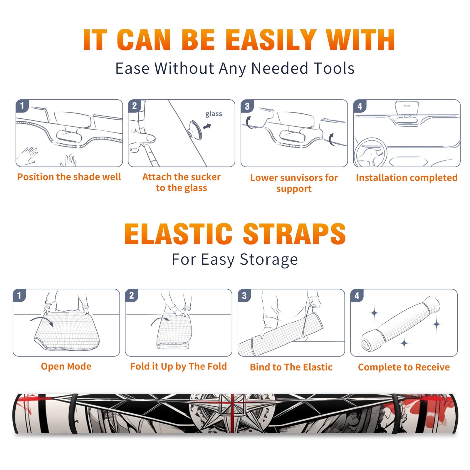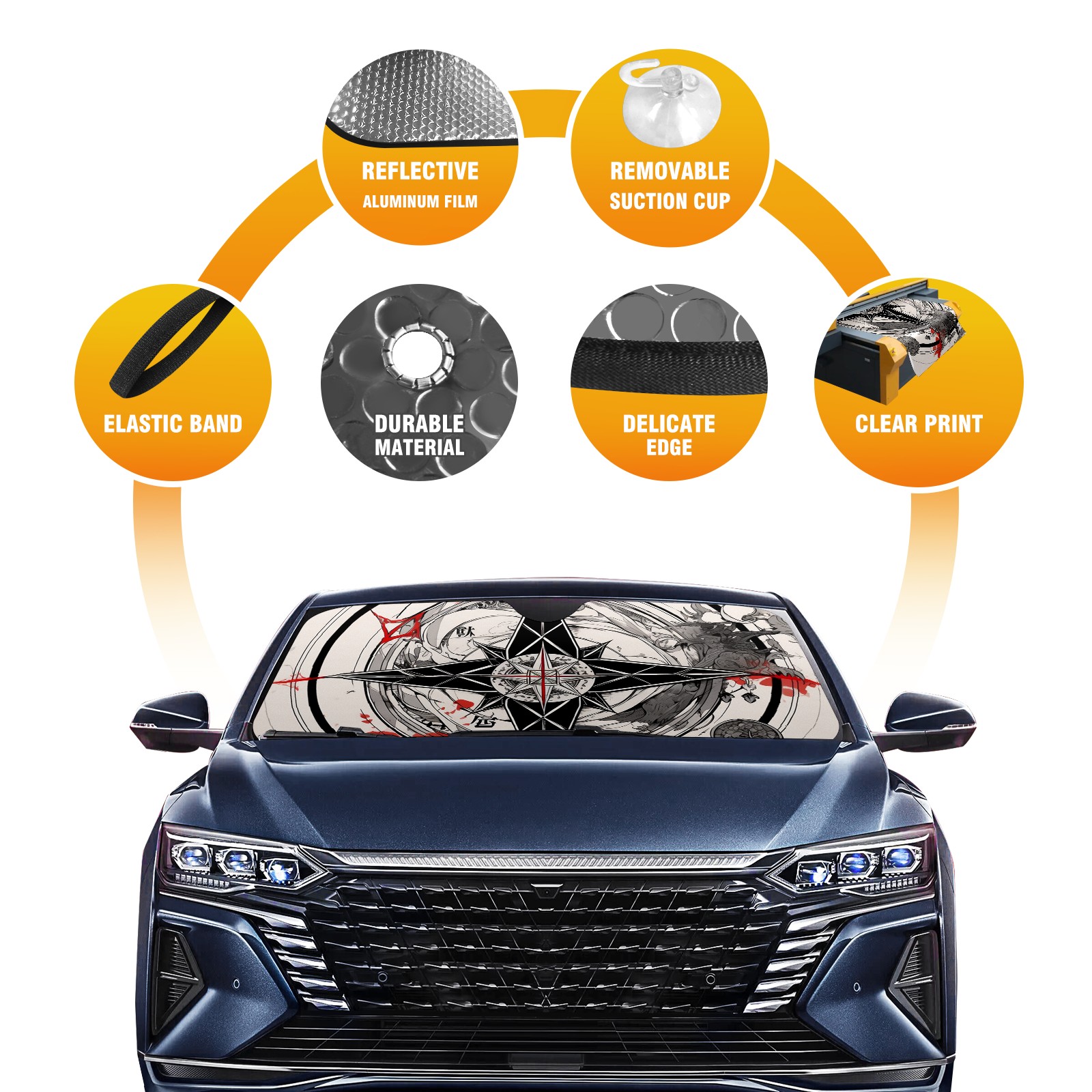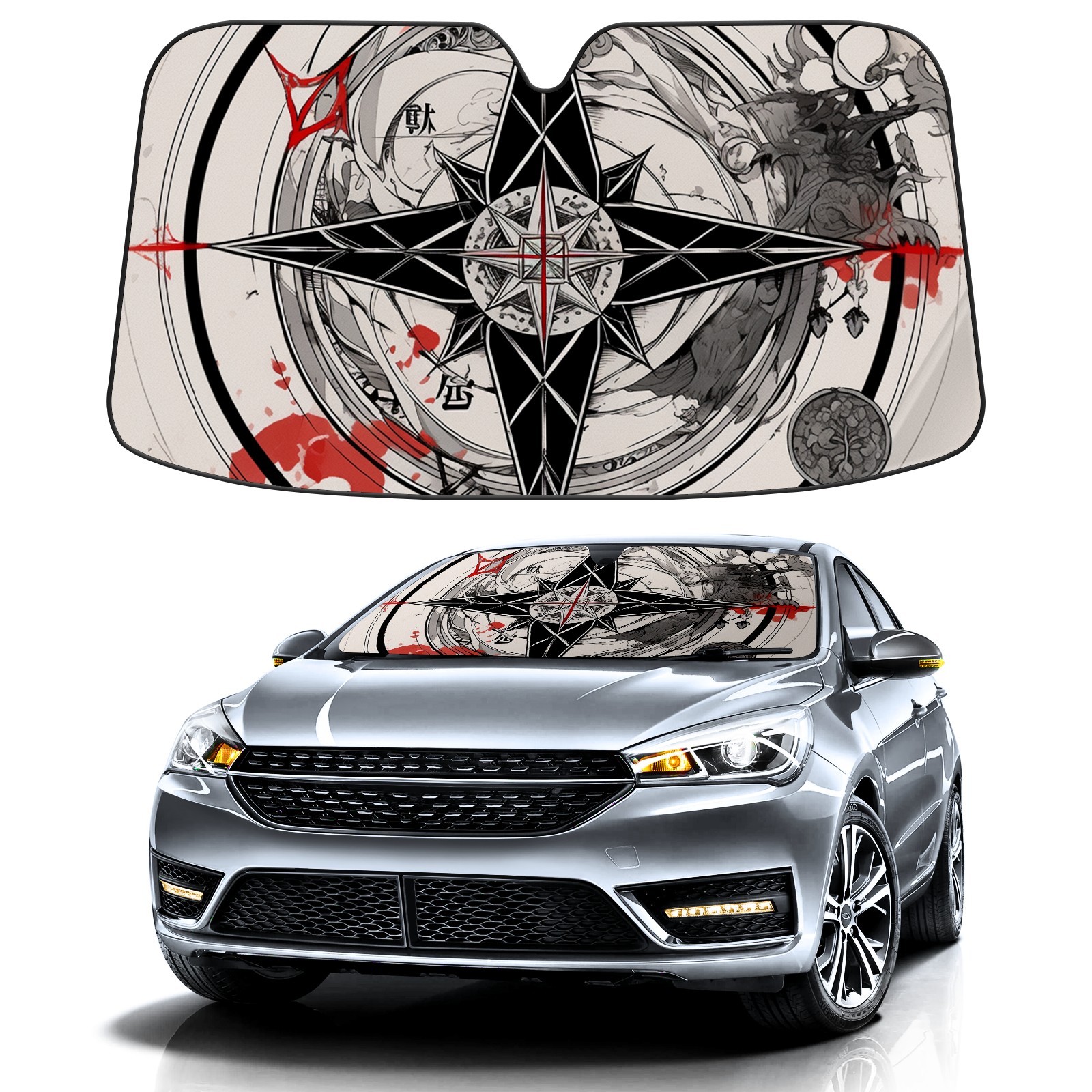 Car Windshield Sun Shade For Front Window Compass (4) Foldable Vehicle Windshield Car Sun Visor Covers Automotive Window Protector Car Camping Privacy Sun Blocker