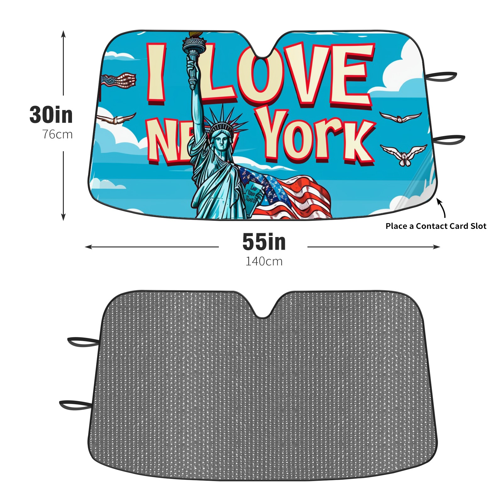Diameter /Size 63"L x 33.5"W Made from excellent materials which makes it sturdy and protects the car from the sun. Easy to use and pack. Makes the interior of the car cooler.You can easily stash the sunshade in the storage bag or store long term.It open and closes easy. Also the leather storage bag is durable and easy to put the umbrella back into.This windshield sunshade provides complete coverage and keeps your car interior cool under direct sun. It is easy to open and position under the windshield and around the rear-view mirror. Makes Your Car Easy To Identify, Perfect For Finding Your Car In Crowded Parking Lots And Garages.Great Choice: It Is A Great Gift For Dad, Boyfriend, Brother, Brother And Uncle, Friends, Classmates, Family And So On. Notice: Due To Difference Computer Monitors, The Color Maybe Slightly Different From Picture. As Different Measurement Methods, Measurement Data Will Float Within 2%.I Hope You Understand. If You Have Any Question About The Item Please Do Not Hesitate To Contact Us Immediately And We Will Give You A Satisfactory Reply Within 24 Hours.