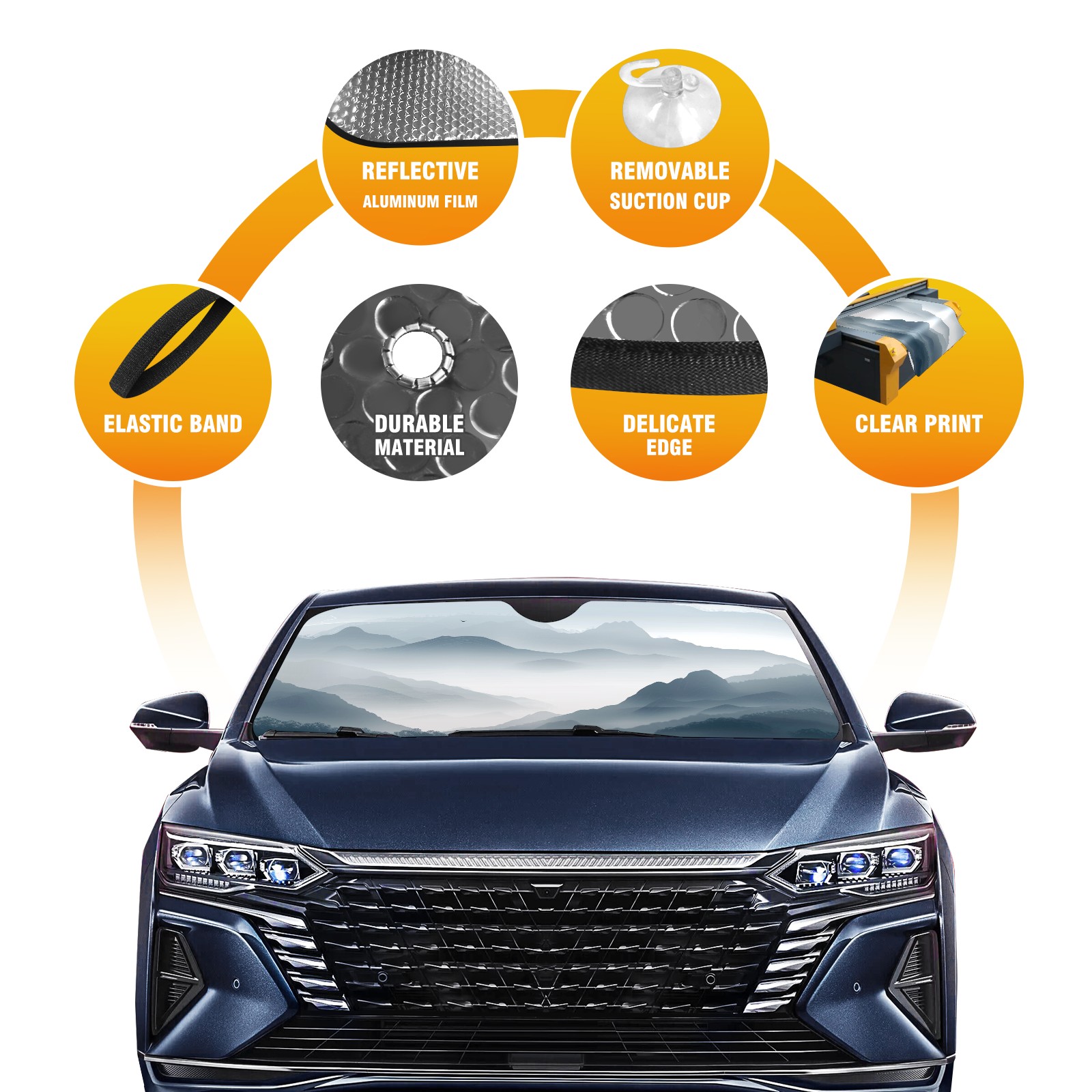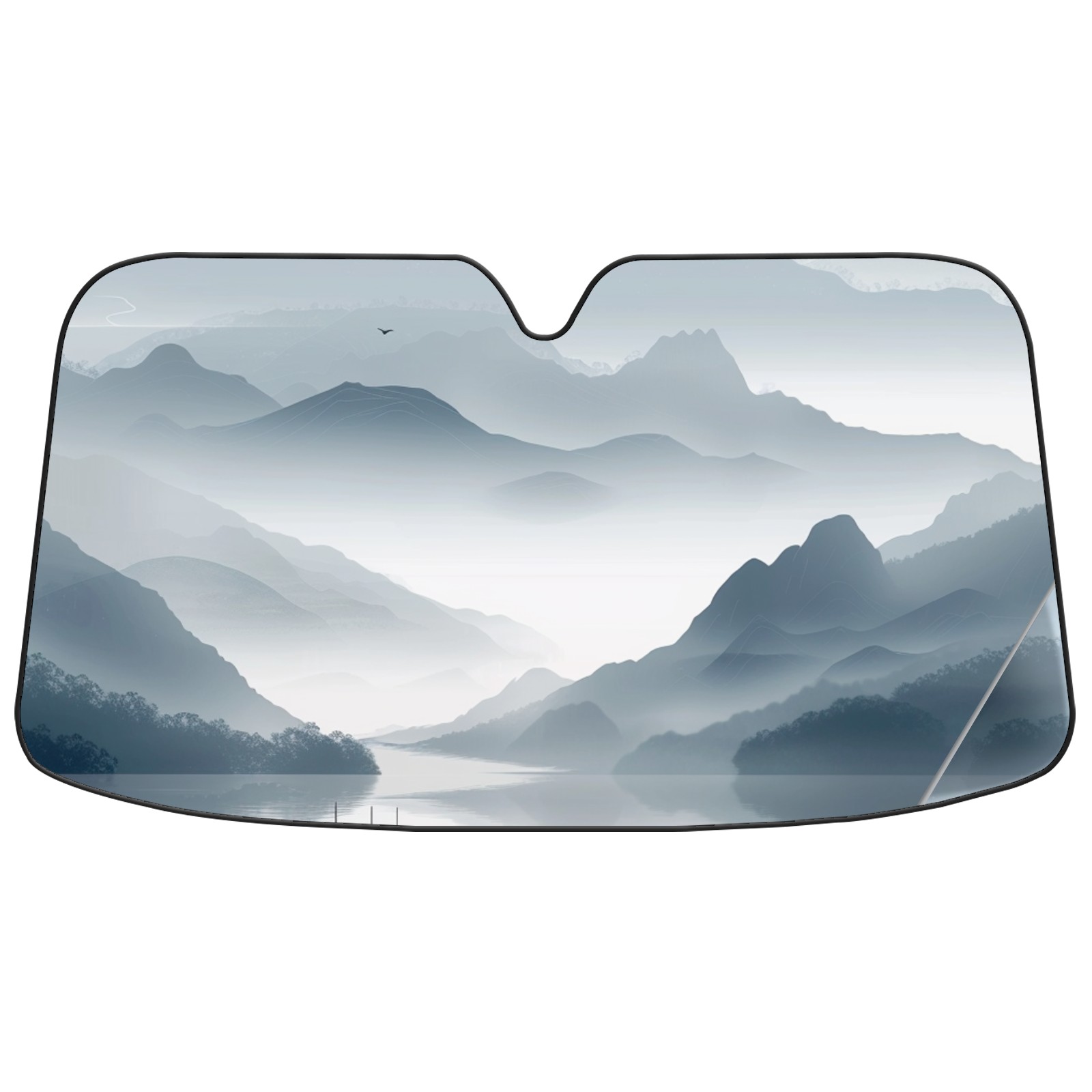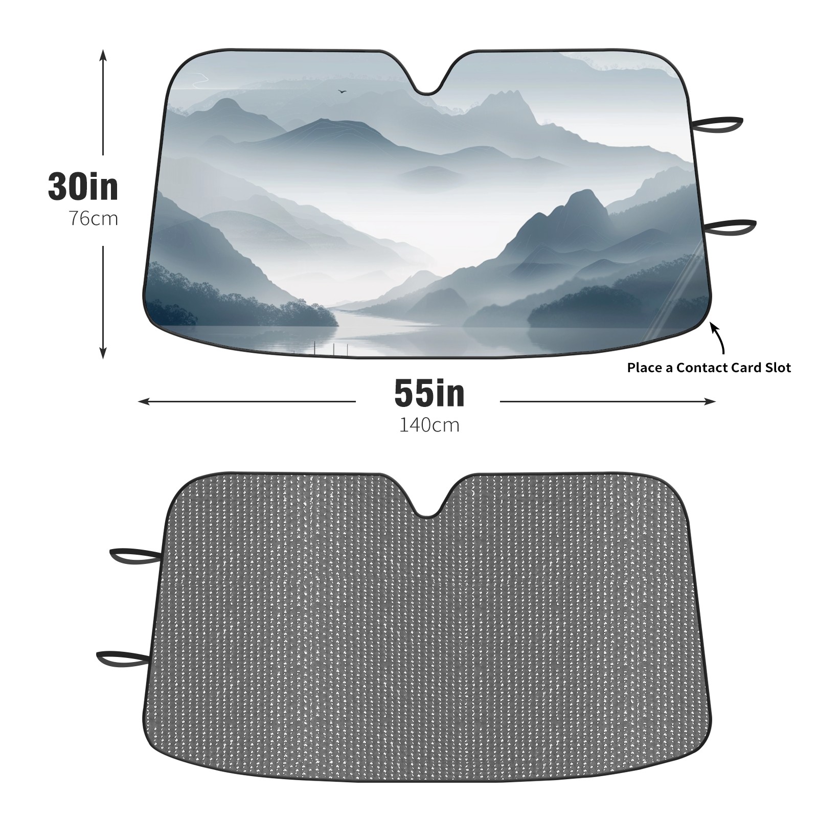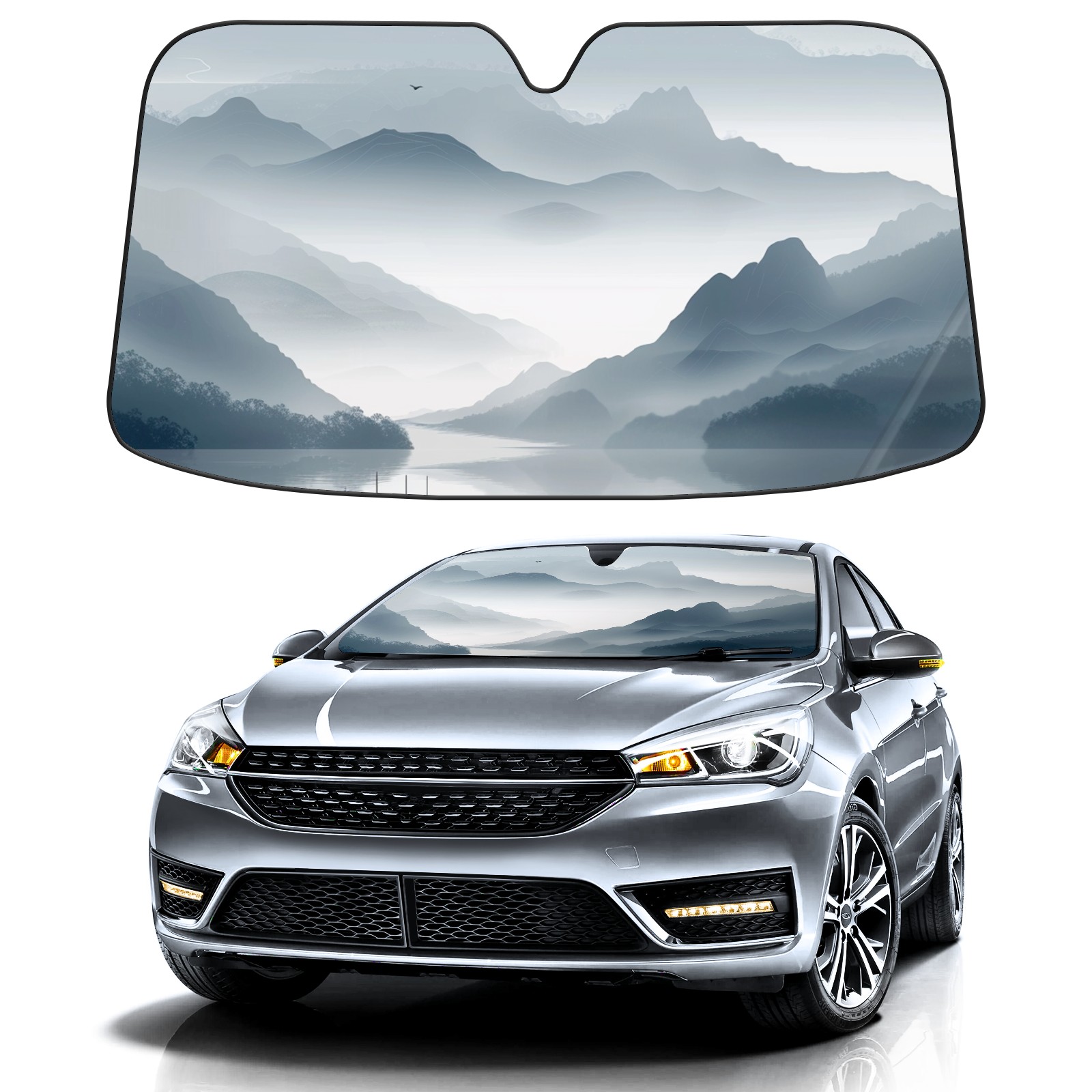 Car Windshield Sun Shade For Front Window Chinese Style Painting (4) Foldable Vehicle Windshield Car Sun Visor Covers Automotive Window Protector Car Camping Privacy Sun Blocker