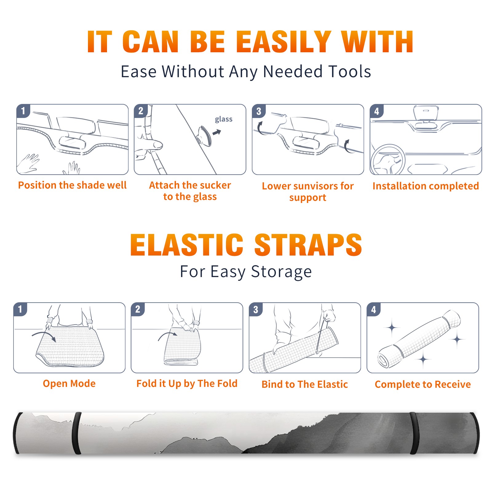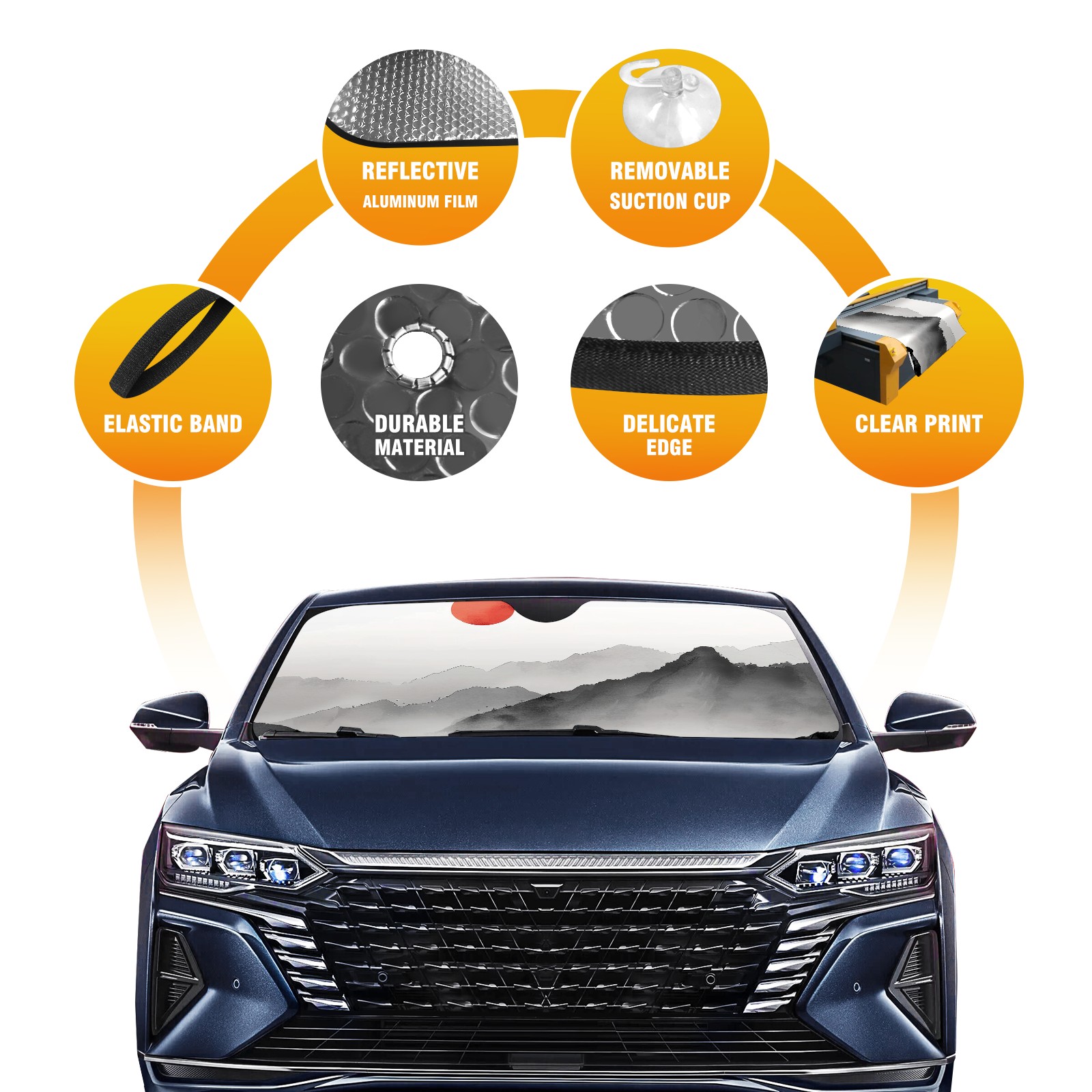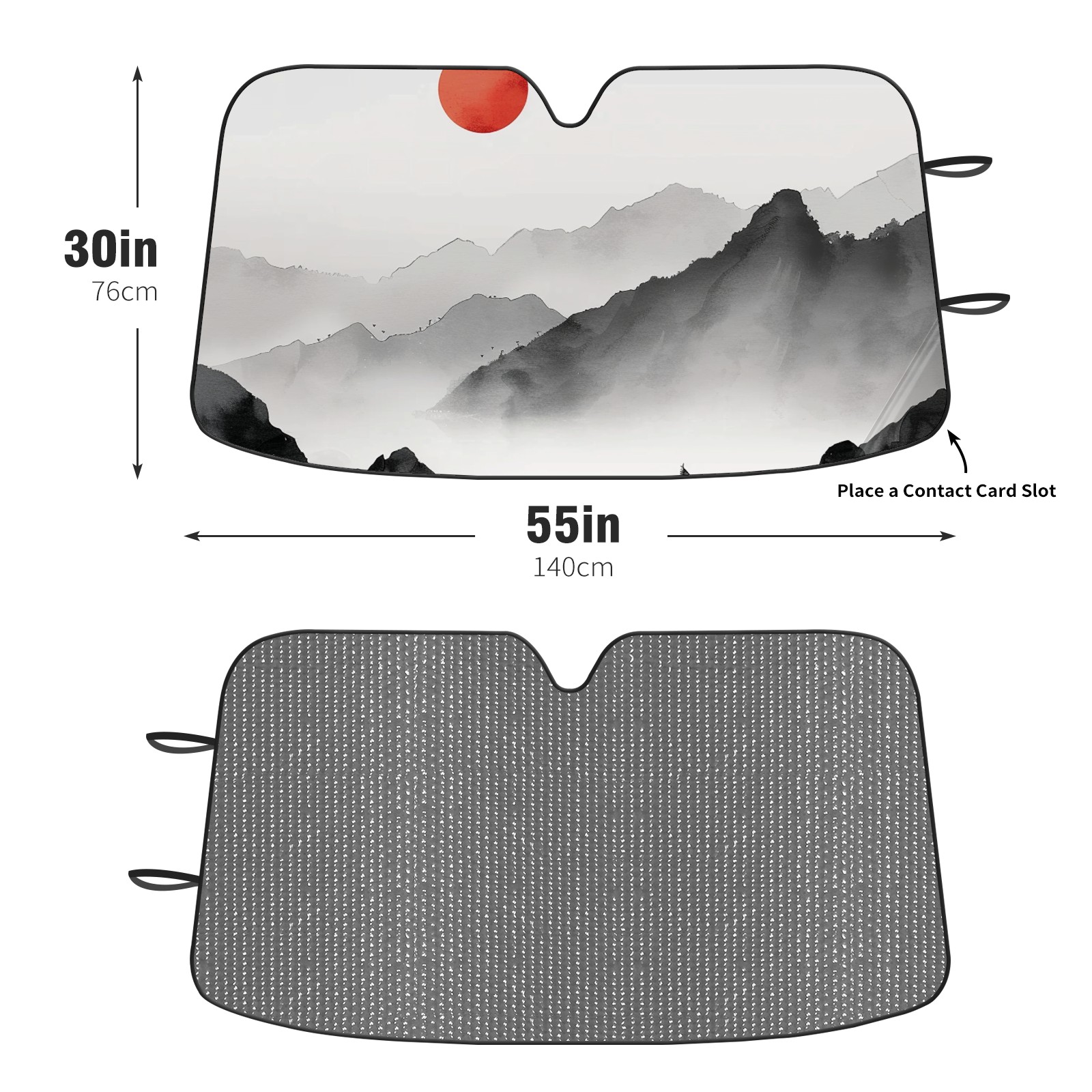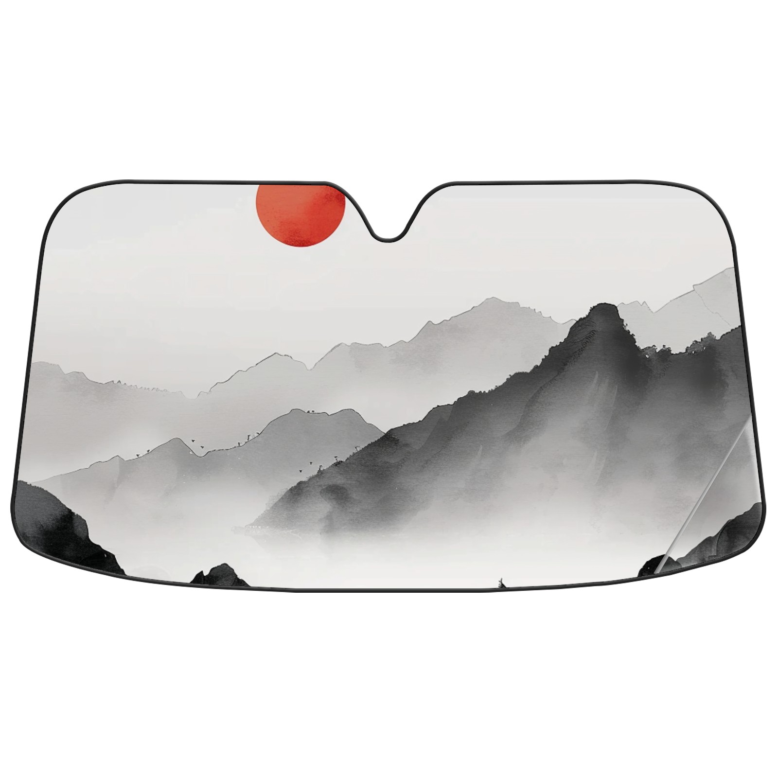 Car Windshield Sun Shade For Front Window Chinese Style Painting (3) Foldable Vehicle Windshield Car Sun Visor Covers Automotive Window Protector Car Camping Privacy Sun Blocker